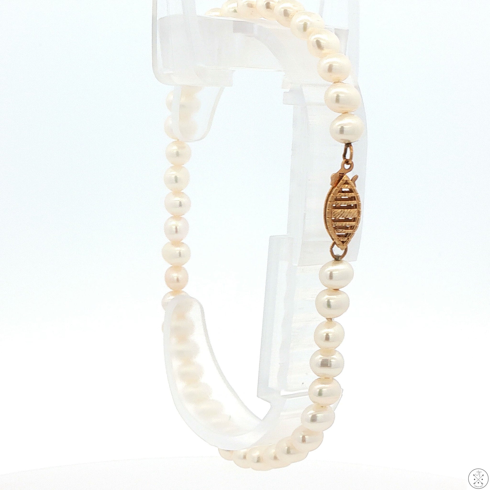 Vintage 10k Yellow Gold 7.75 Inch 5.5 mm Oval Pearl Bracelet