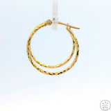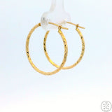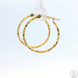 These stunning 10k Yellow Gold lightweight hoop earrings are the epitome of elegance and sophistication. Crafted with precision, their sleek design and shimmering finish make them a perfect accessory for any occasion. Whether you're dressing up for a night out or adding a touch of glamour to your everyday look, these earrings are sure to make a statement. The diamond cut bar for these .8 inch hoops is approximately 1.53 mm in diameter. We have multiple pairs of these new earrings in stock; each pair weighs approximately .7 grams.