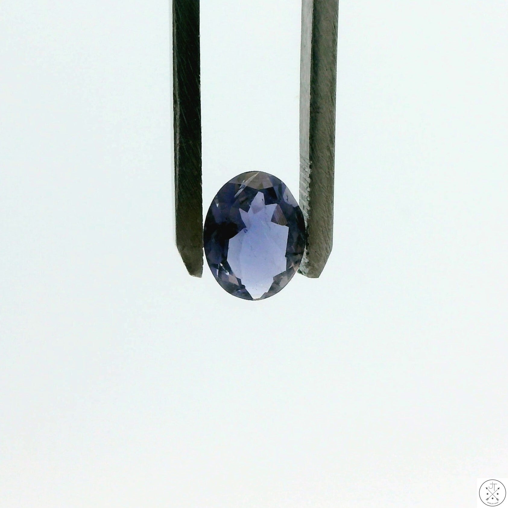 Gorgeous oval-faceted natural Iolite gemstone, approximately 1.14 carats and 8.97 x 7.04 x 3.71 mm. This stunning, slightly included, bluish-purple gemstone with medium color saturation is new and ships in a gem jar.