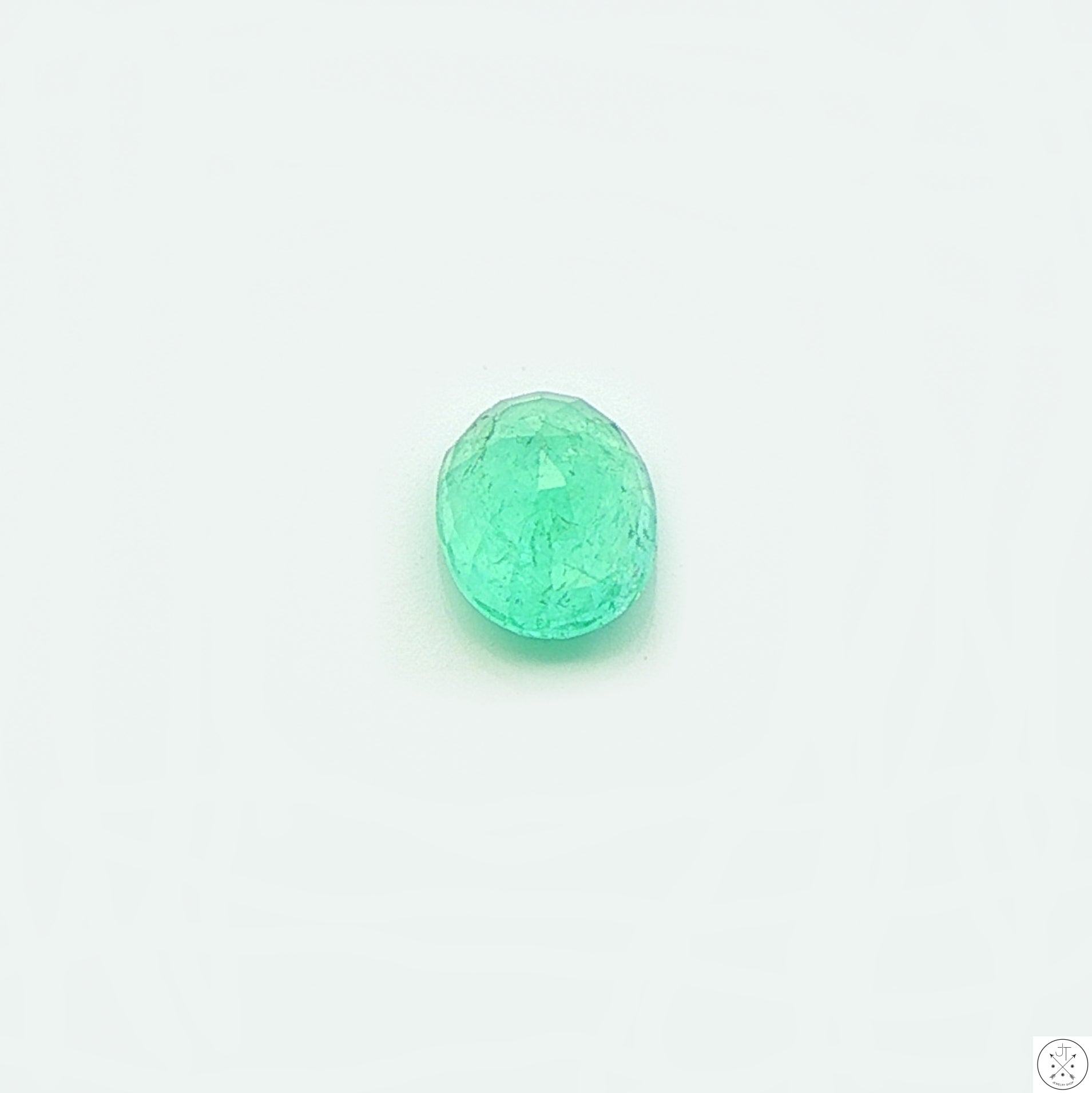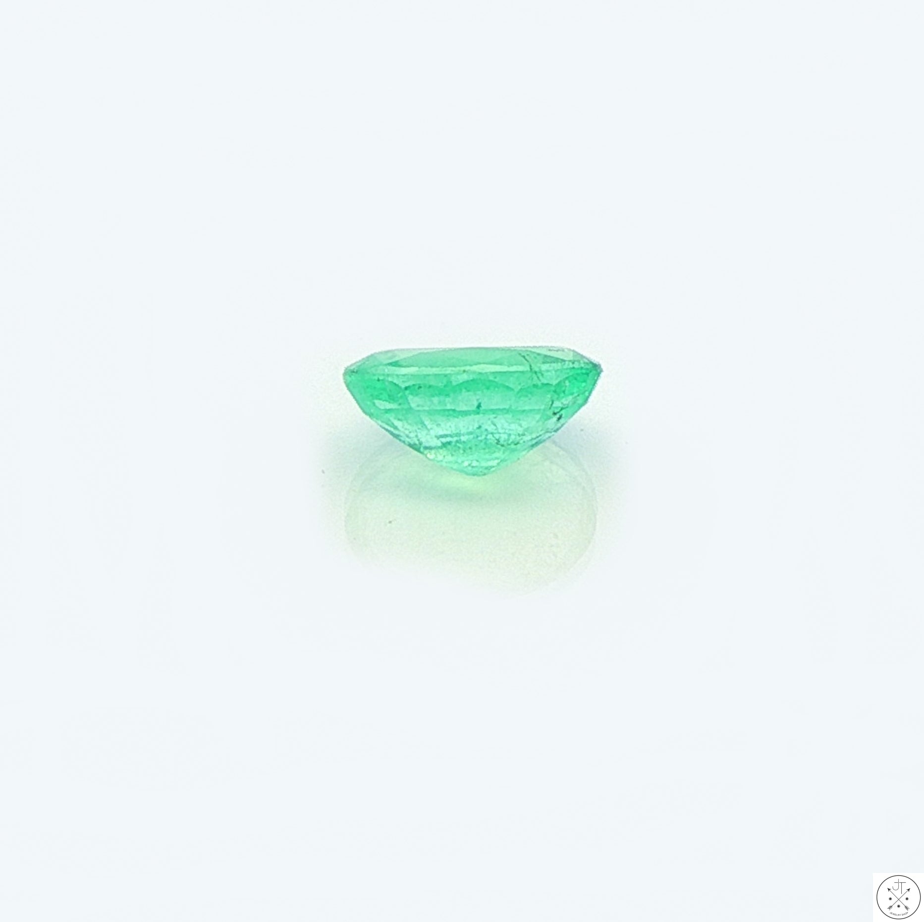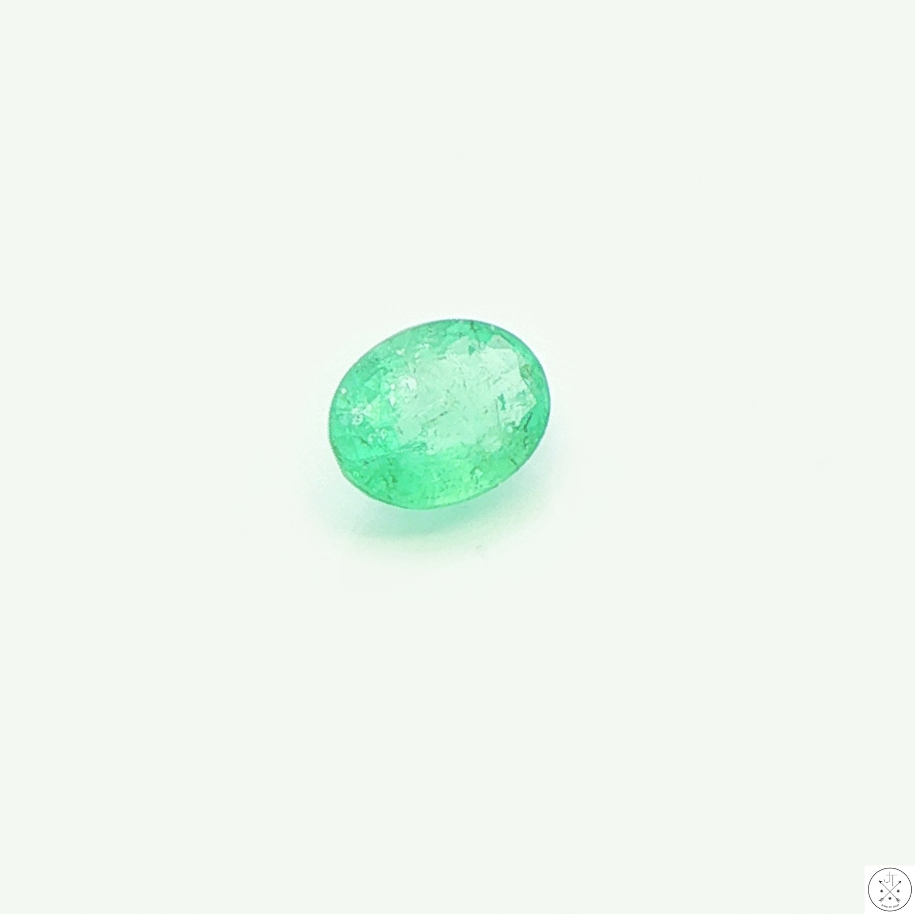 Gorgeous oval-faceted natural Emerald gemstone mined in Colombia, approximately 1.26 carats and 8.21 x 6.08 x 4.04 mm. This beautiful, light mint-green gemstone is moderately included. New and ships in a gem jar.