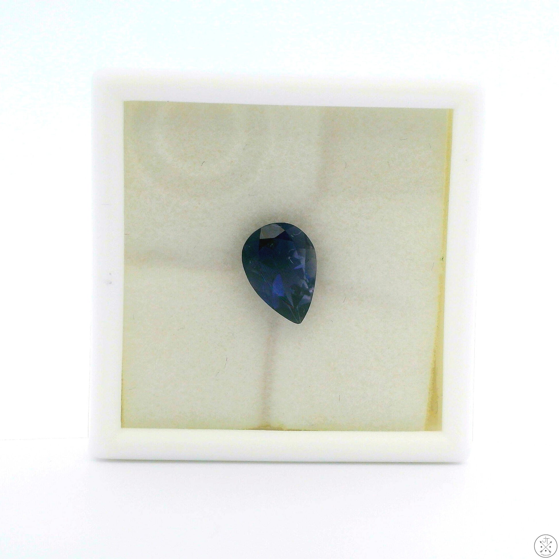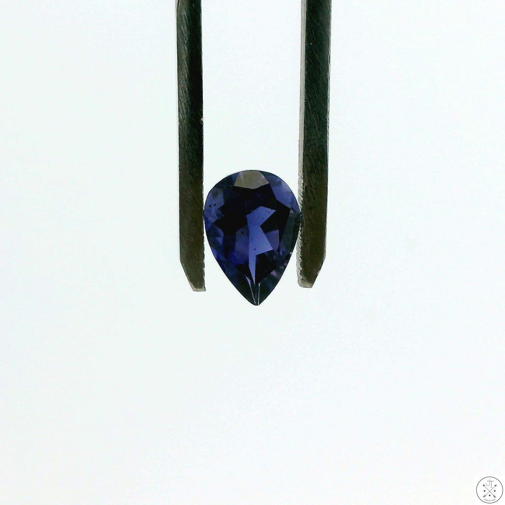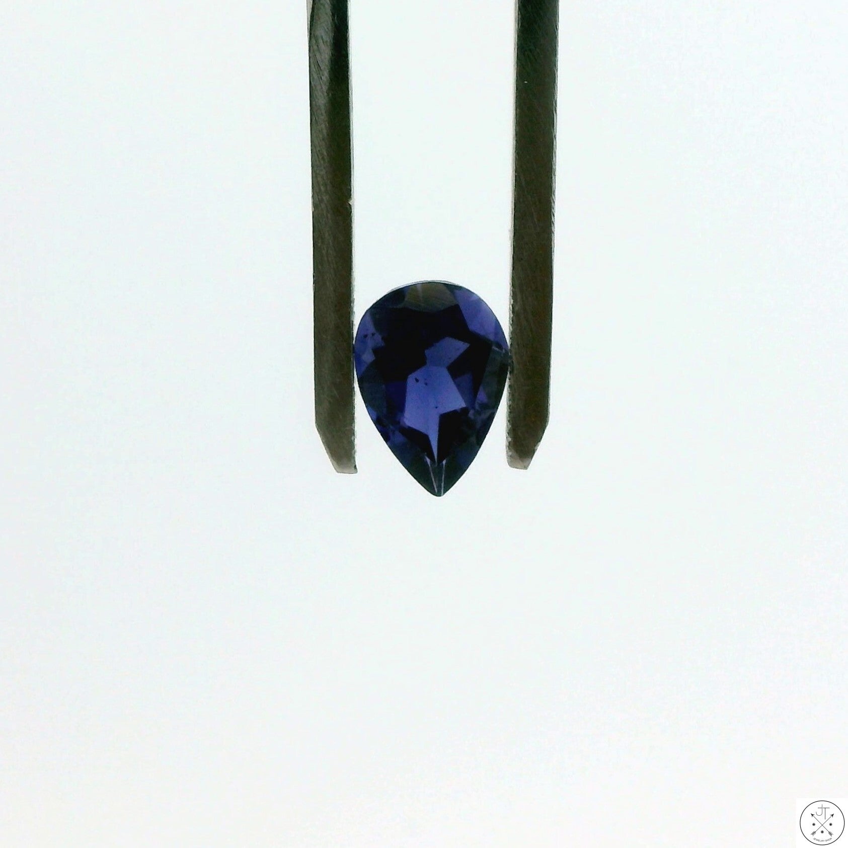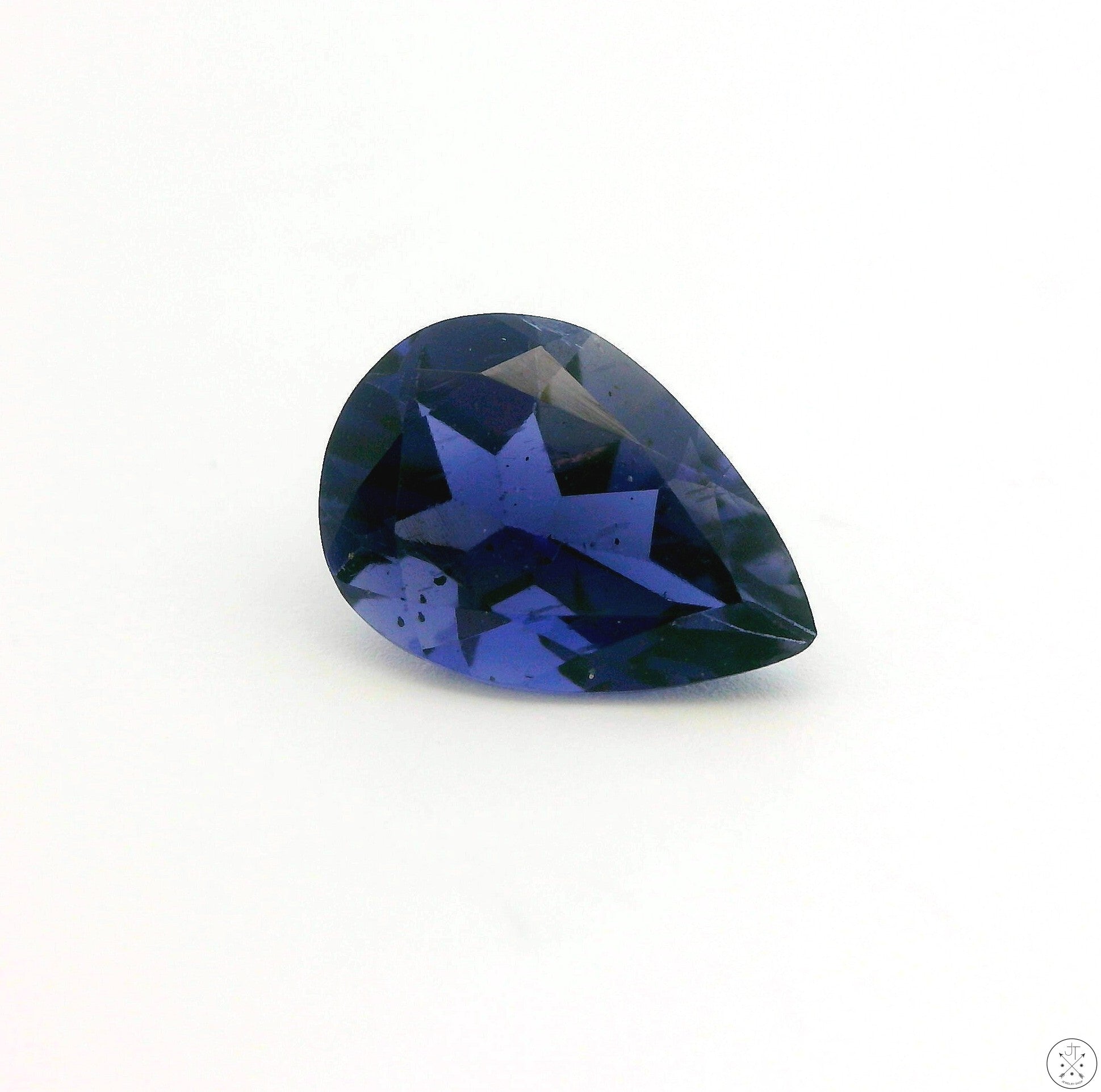 Gorgeous pear-faceted natural Iolite gemstone, approximately 1.58 carats and 9.88 x 6.93 x 4.90 mm. This stunning, slightly included, bluish-purple gemstone with slightly dark color saturation is new and ships in a gem jar.