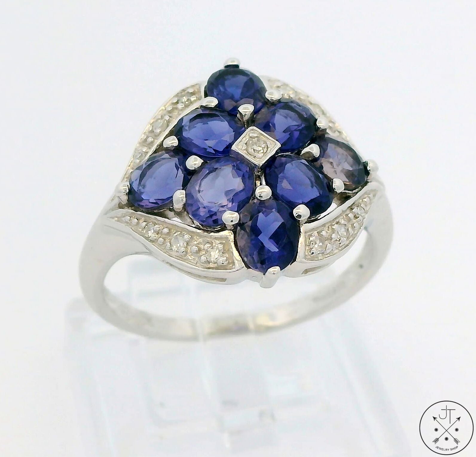 New 10k White Gold Ring with Tanzanite and Diamond Size 7.75