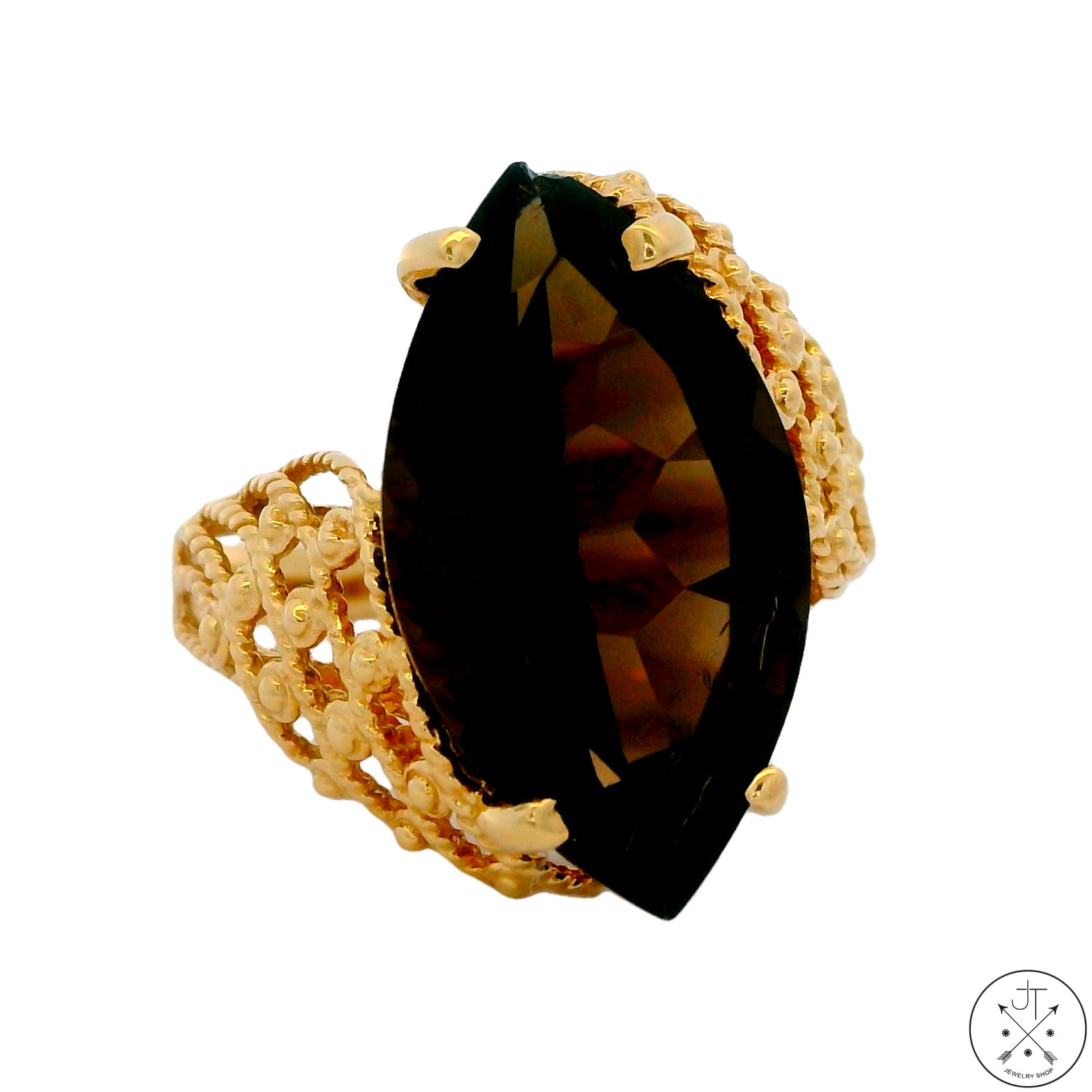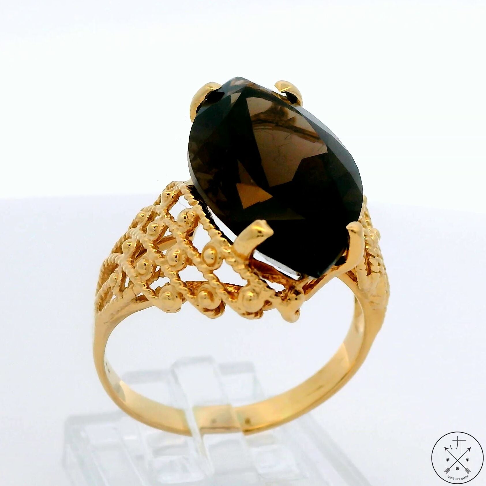 10k Yellow Gold Ring with Large Smoky Quartz Size 10.25 Marquise