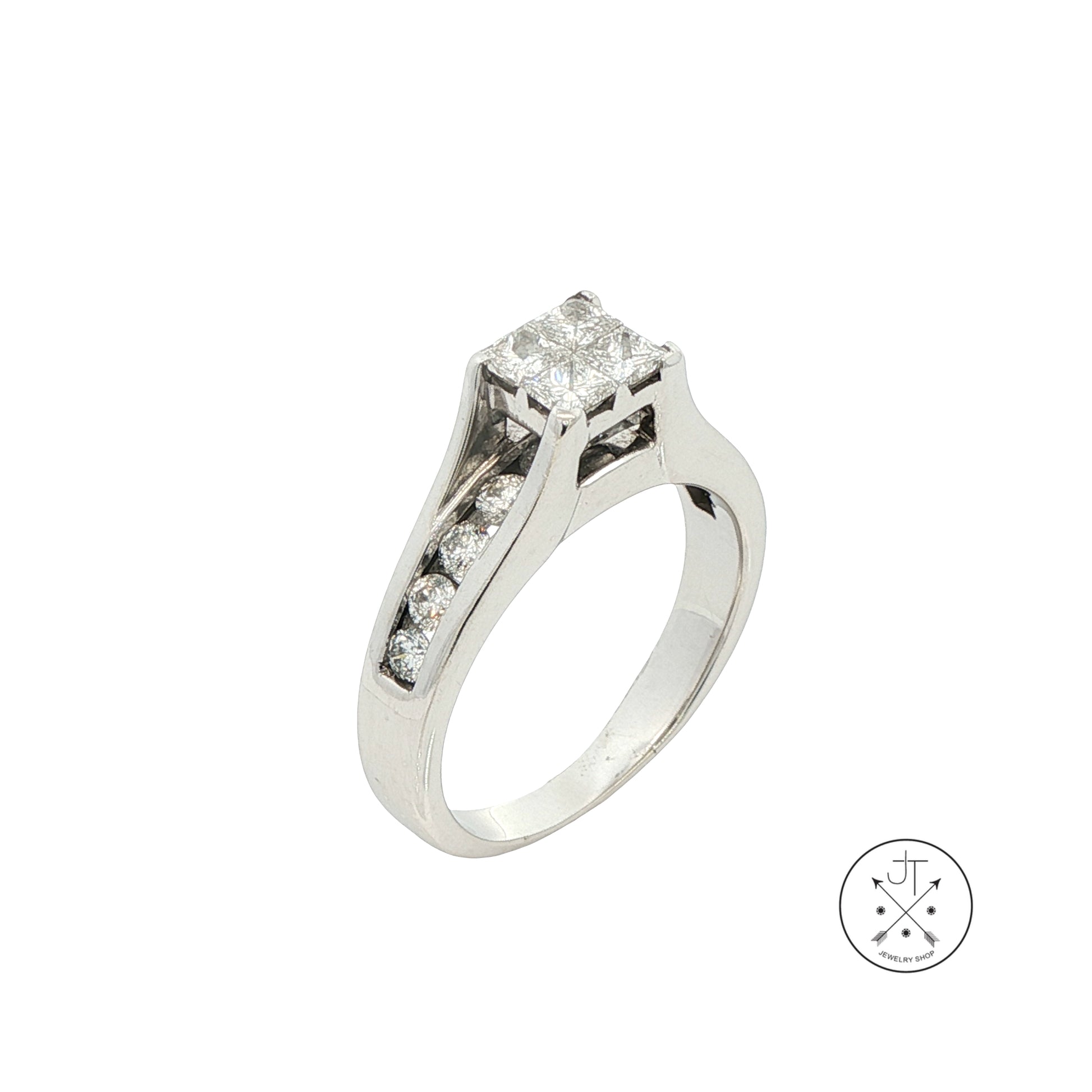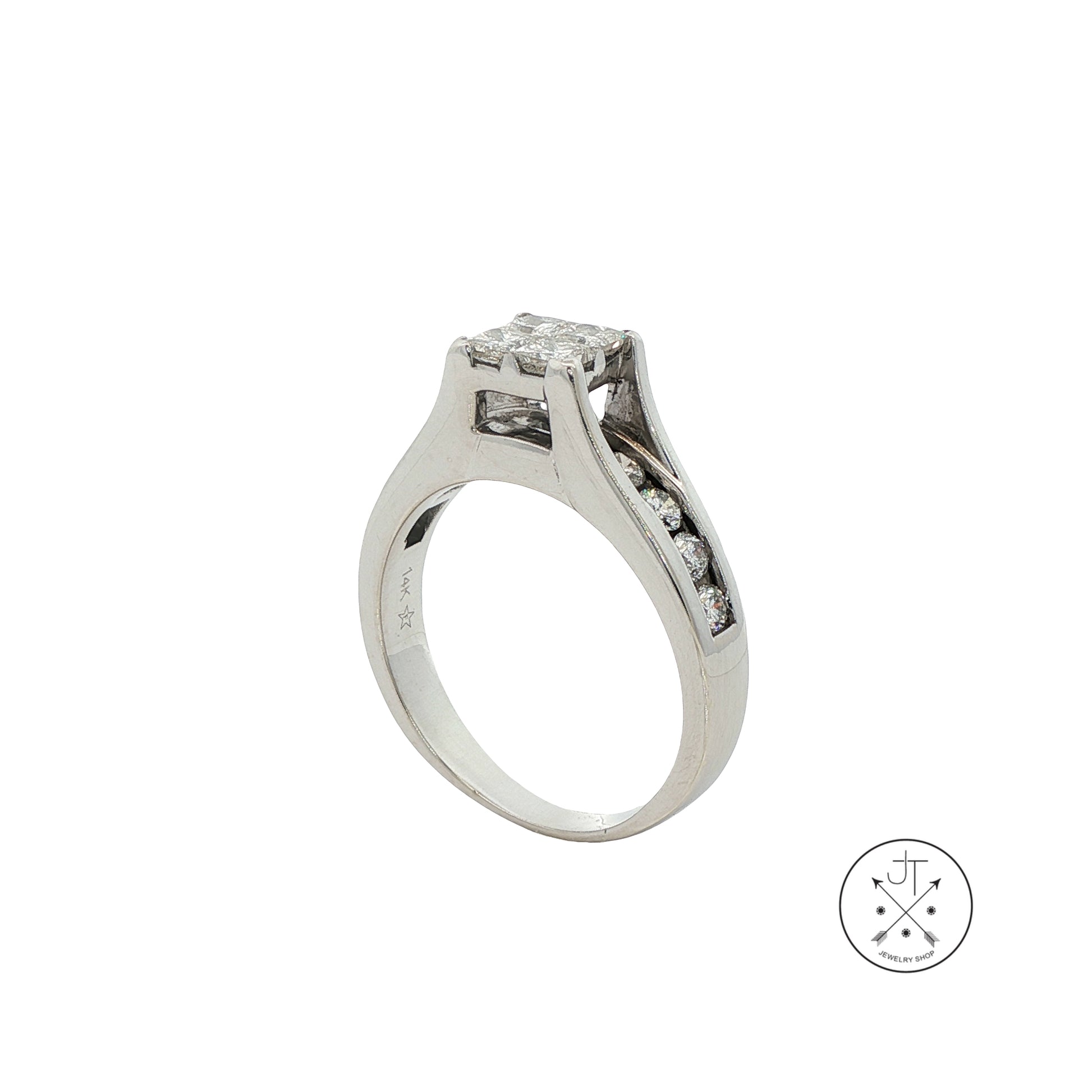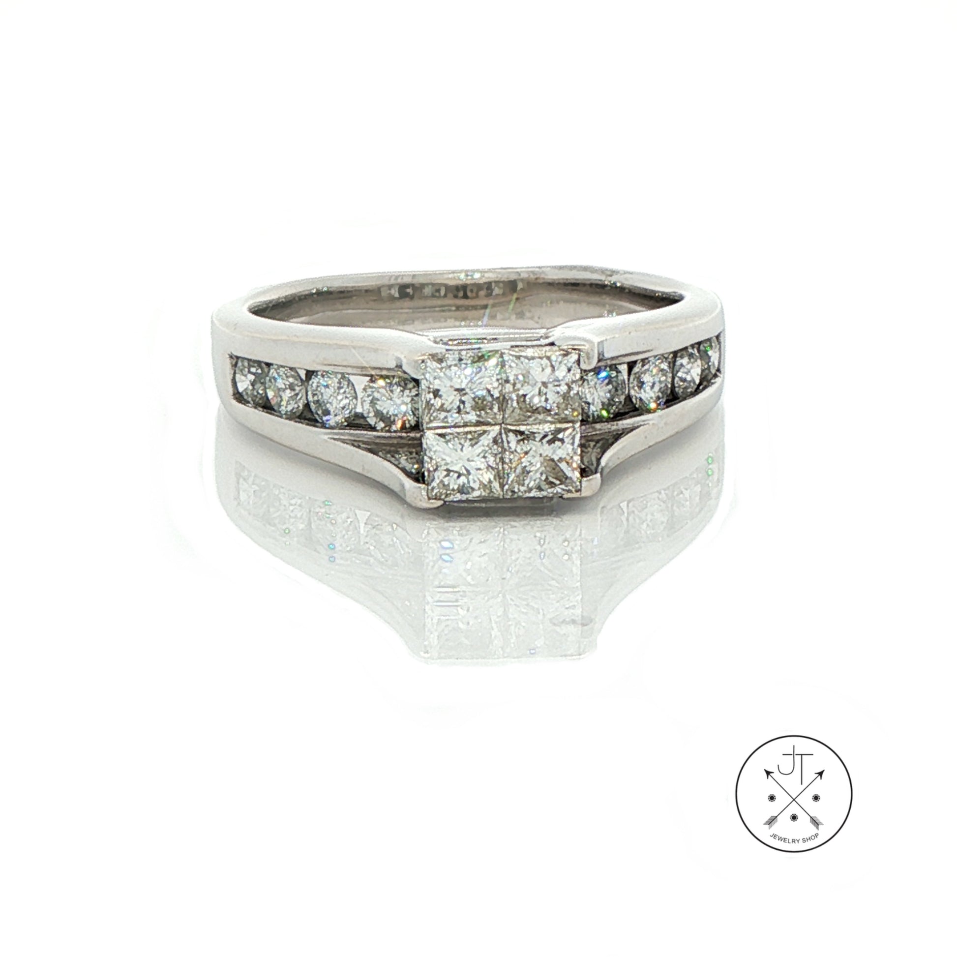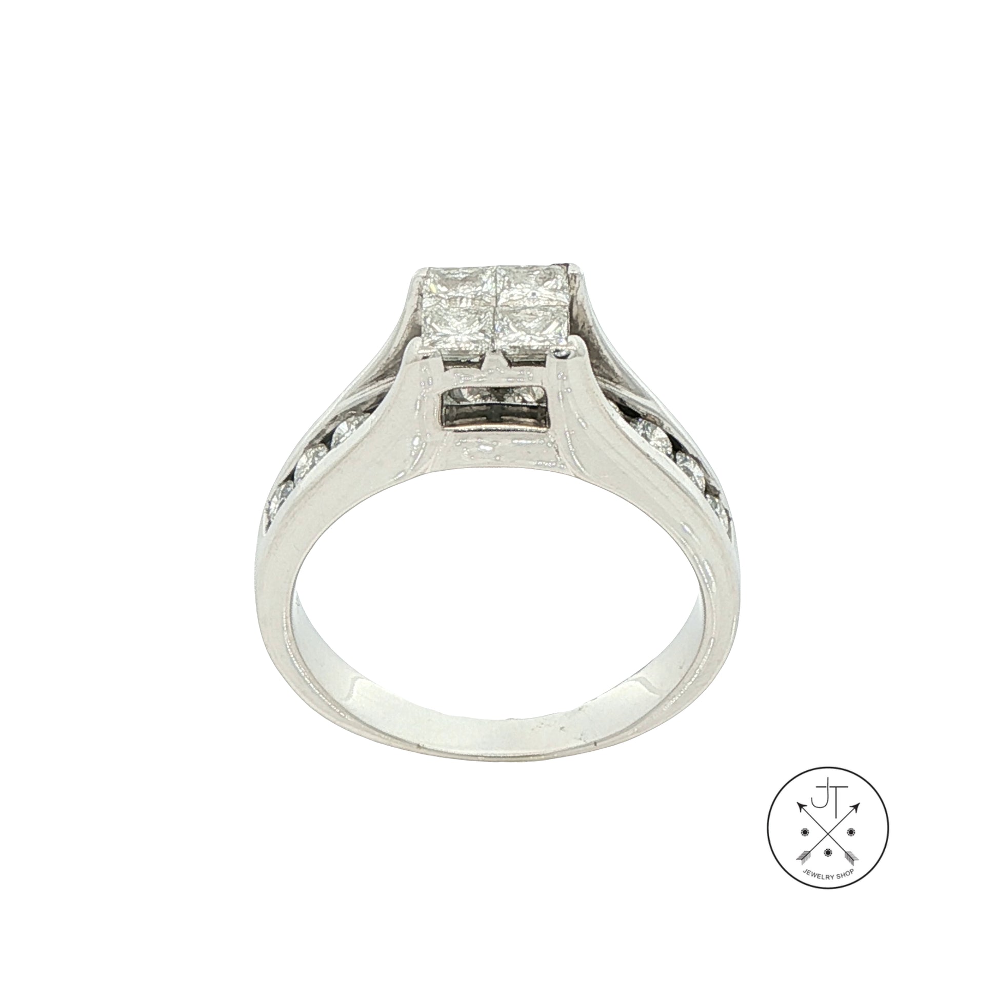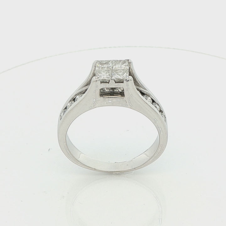 14k White Gold Engagement Ring with 1.4 ctw Diamonds Size 8 Invisible Set