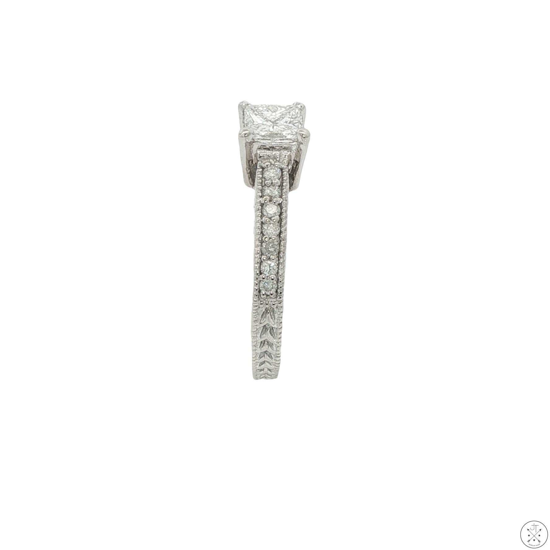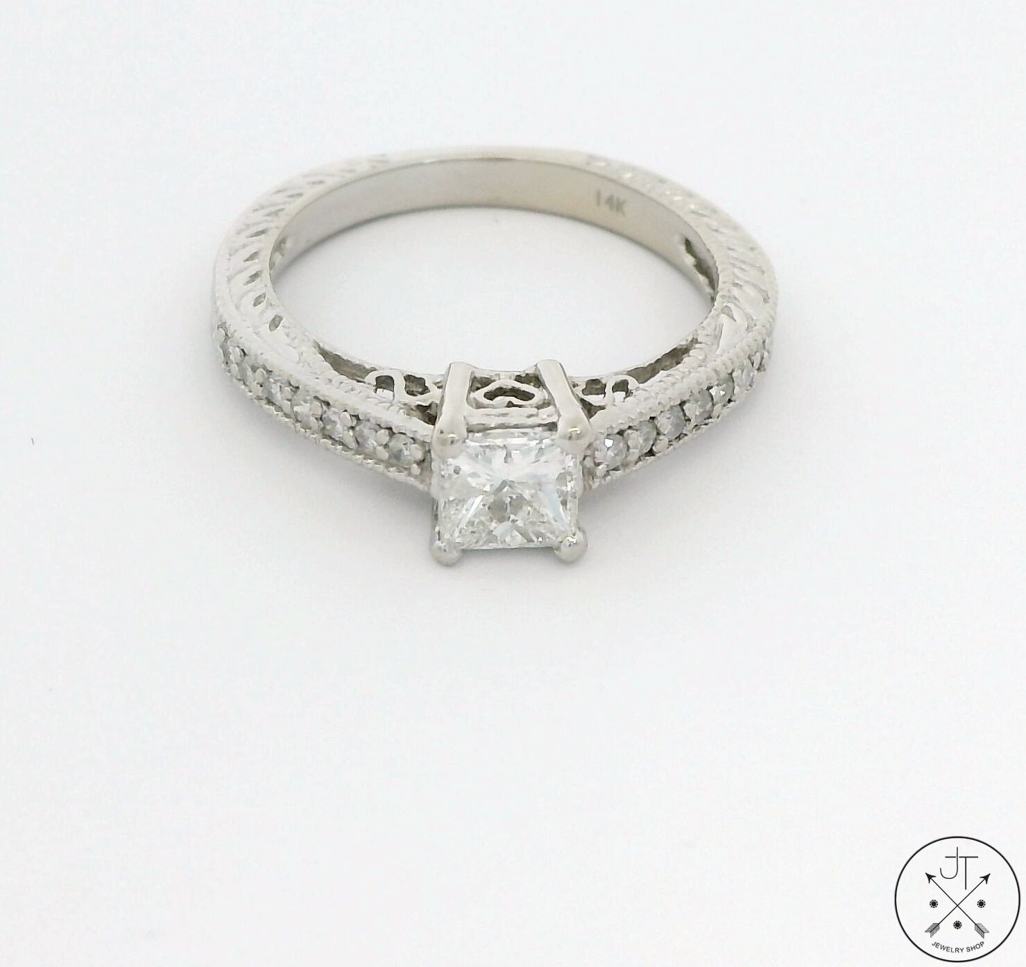 14k White Gold Engagement Ring with 2/3 ctw Diamonds Size 6.25 Princess Vintage Style