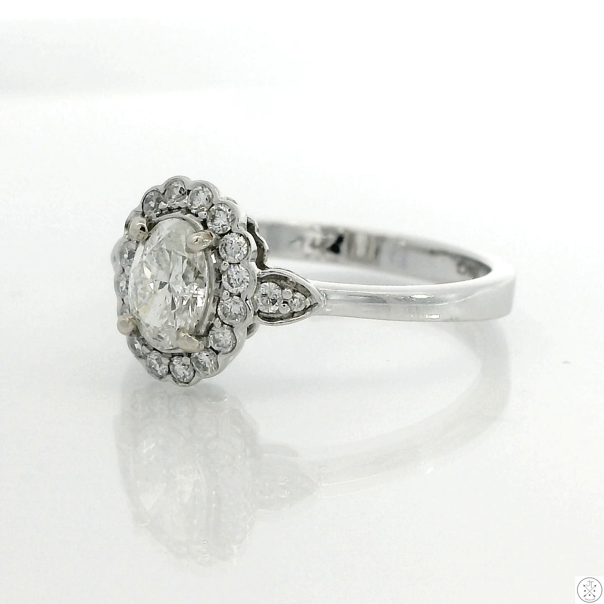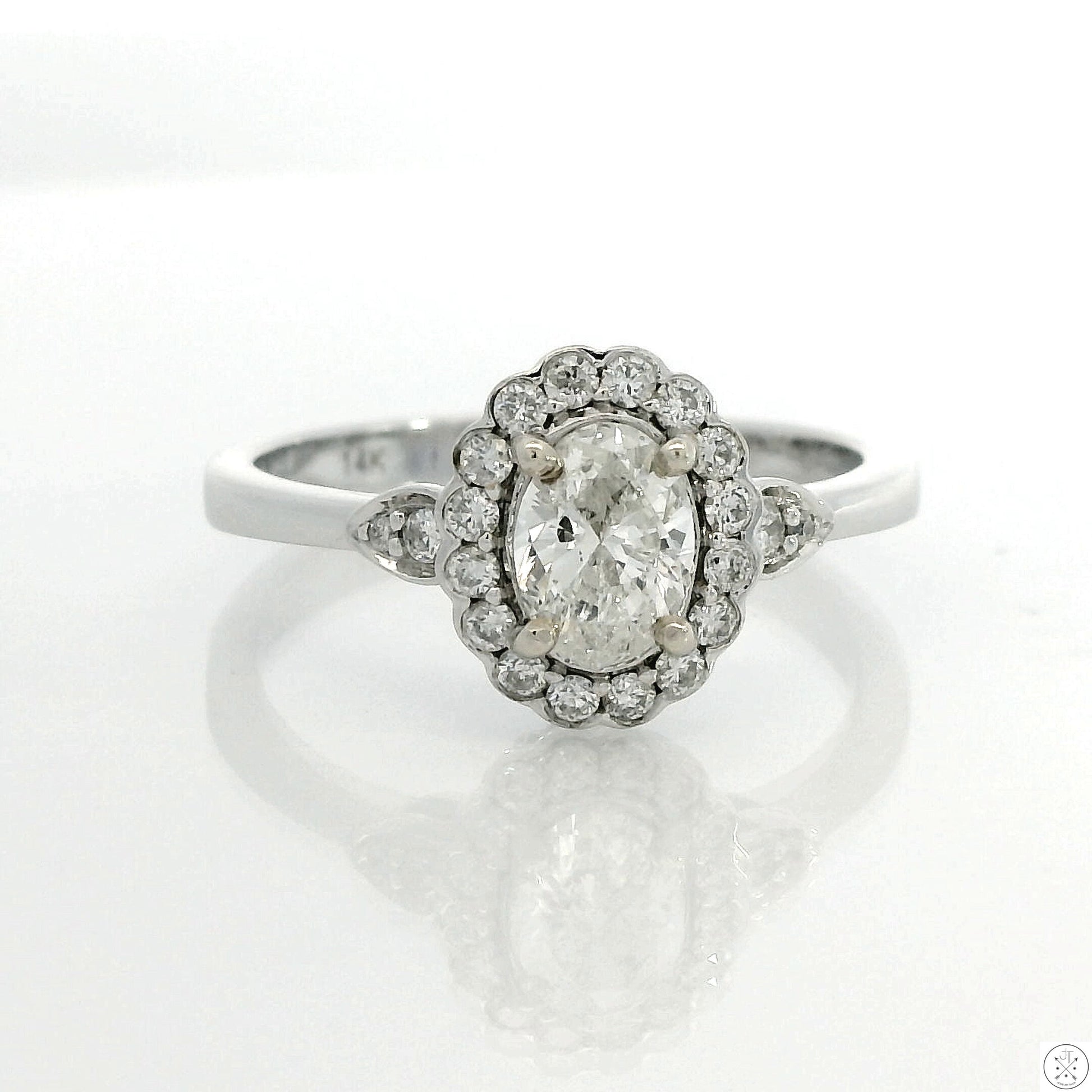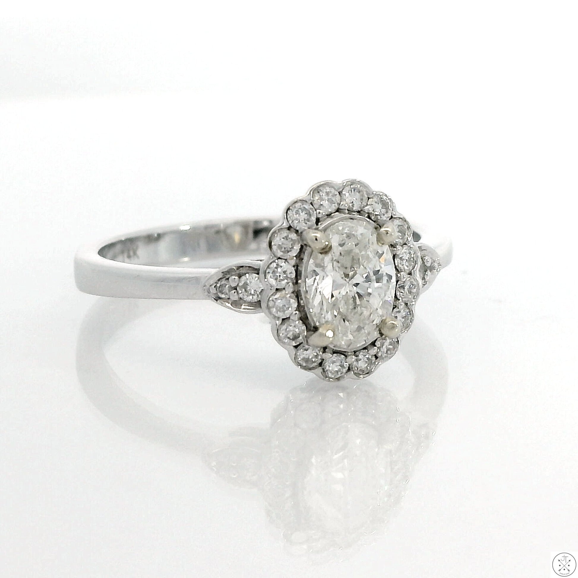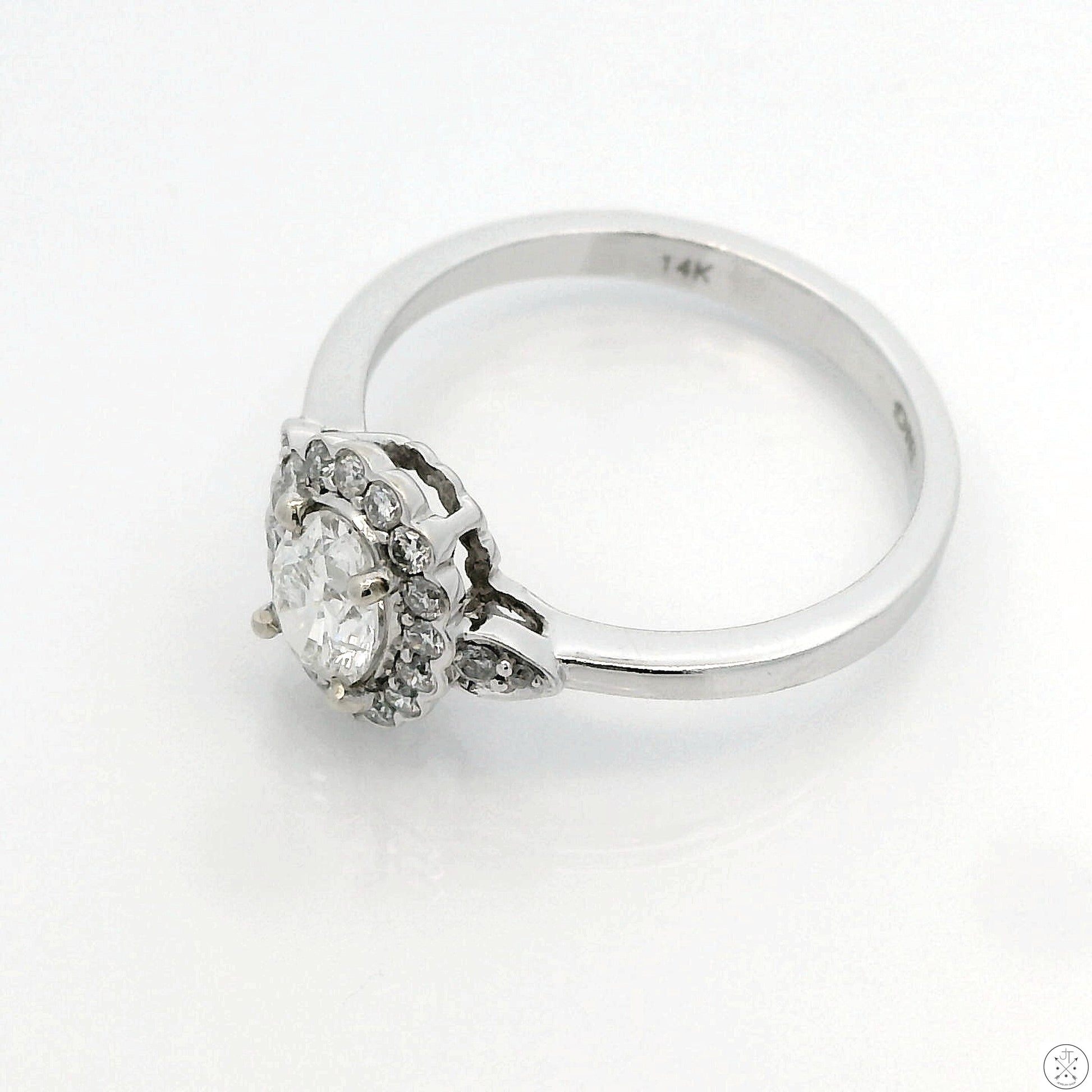 14k White Gold Halo Ring with .70 ctw Natural Diamonds Size 6.75 Oval