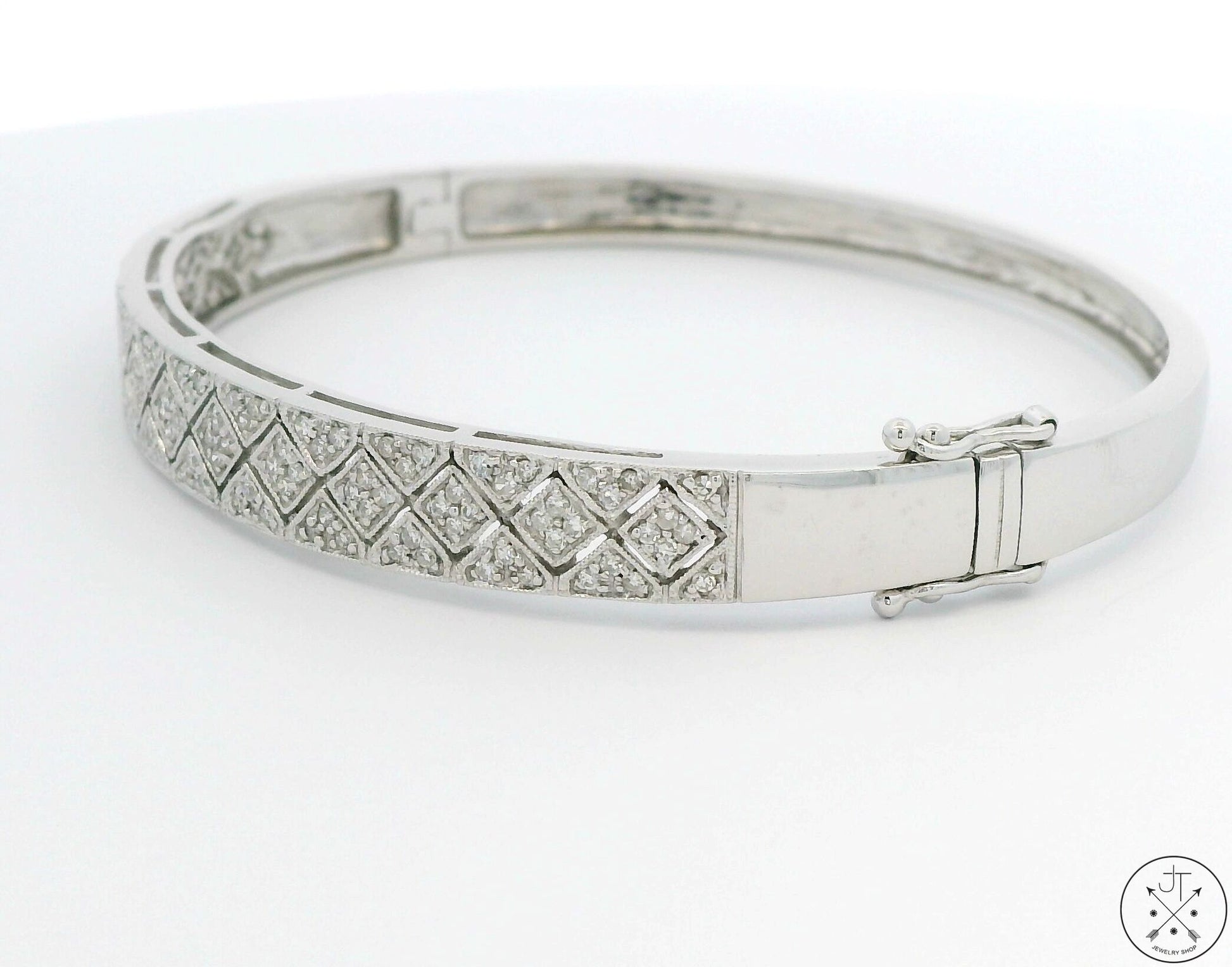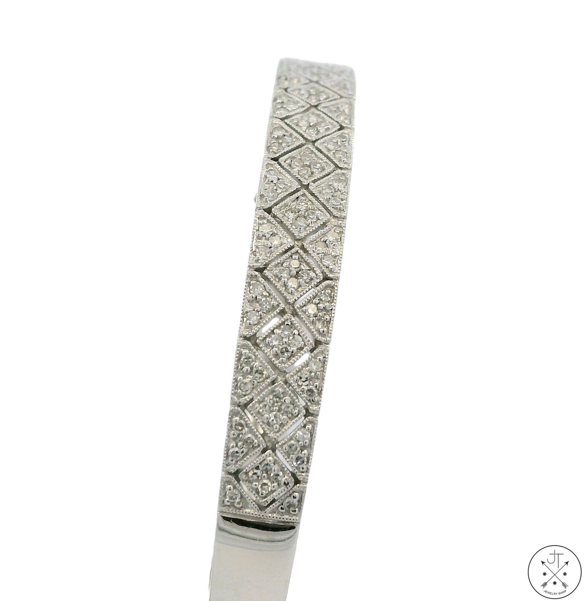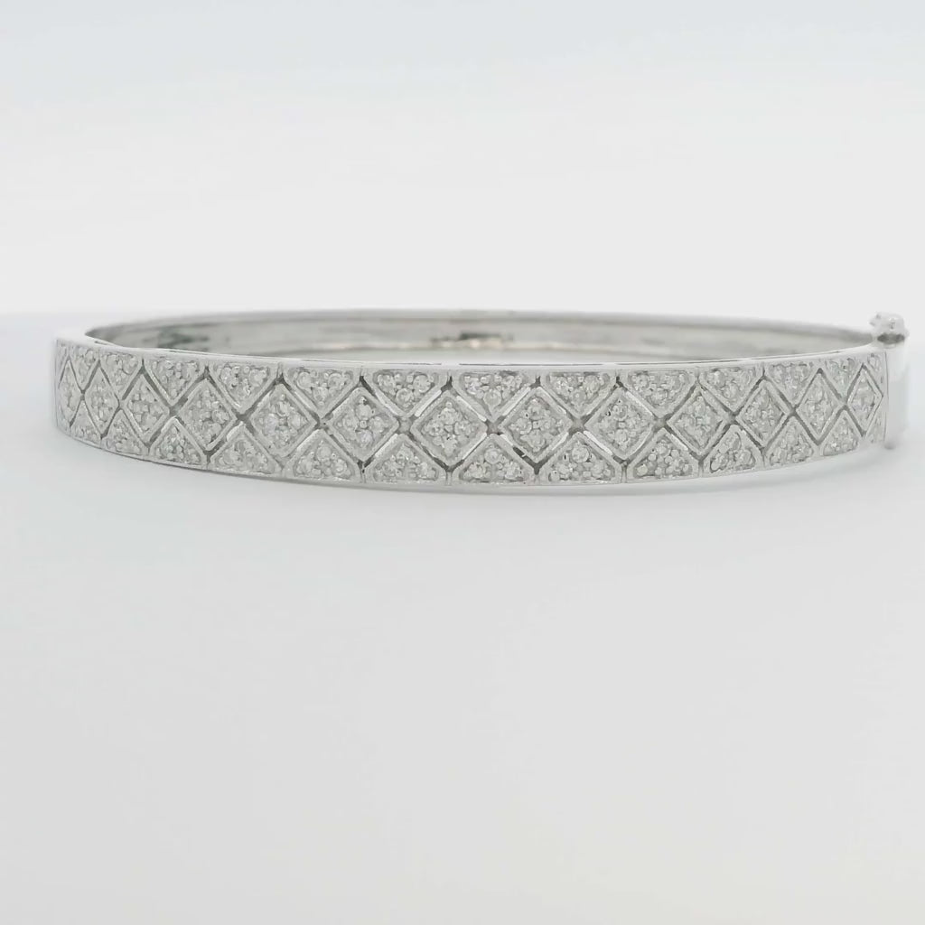 14k White Gold Hinged Bracelet 1 ctw GVS2 Natural Diamonds 7 in Size L/XL