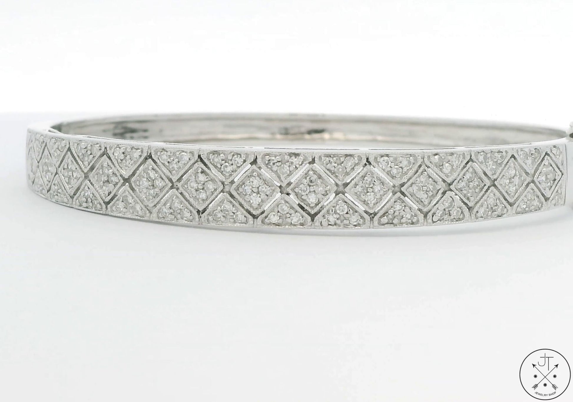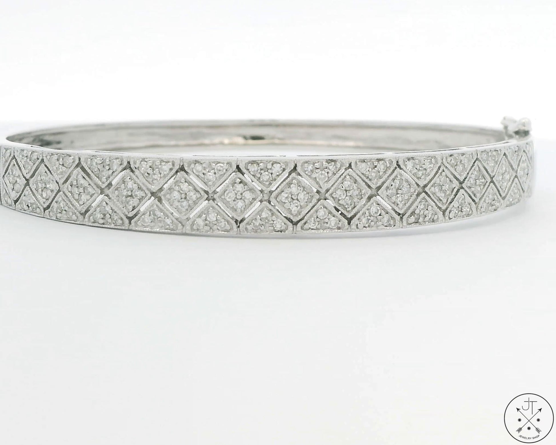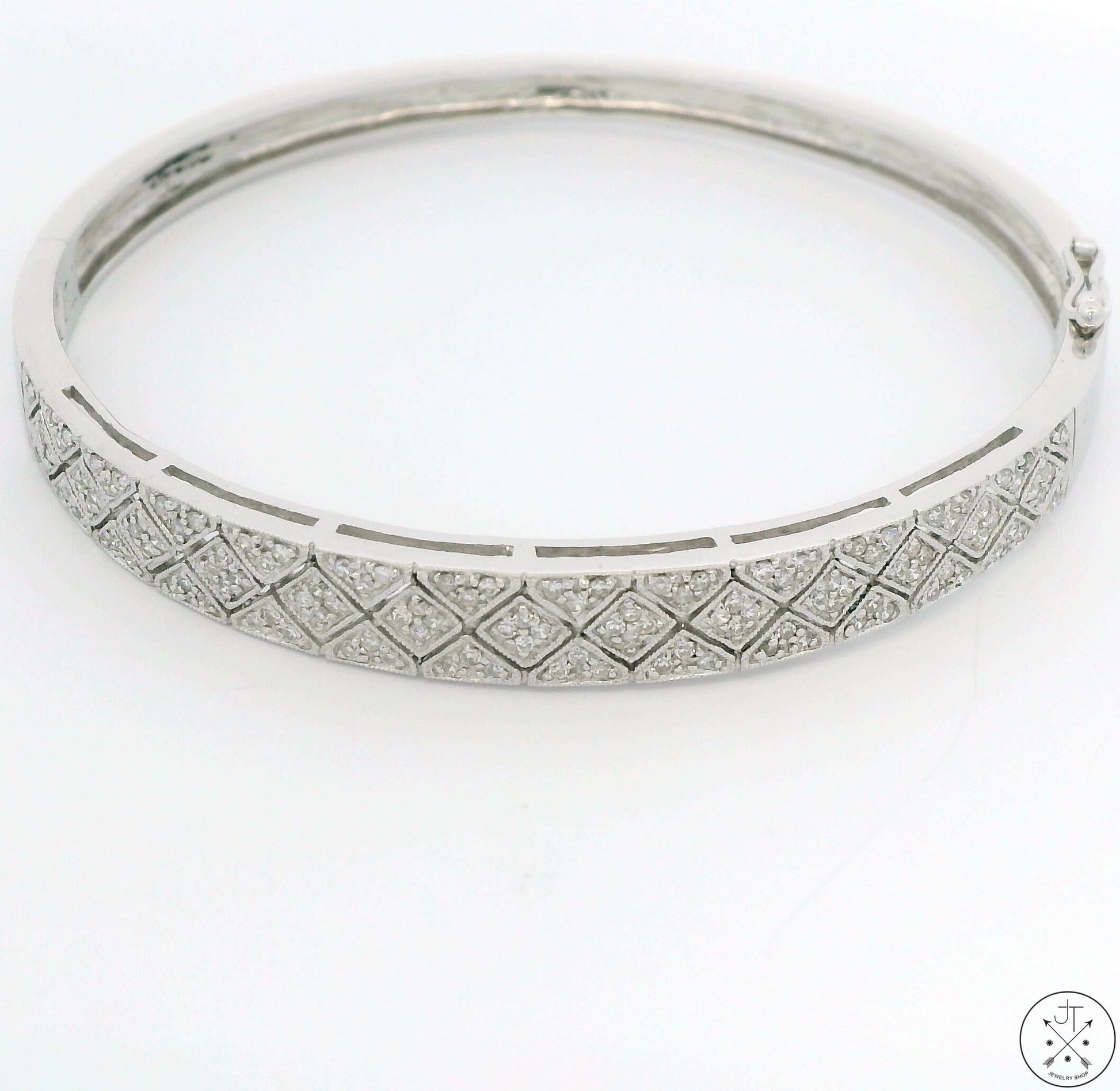 14k White Gold Hinged Bracelet 1 ctw GVS2 Natural Diamonds 7 in Size L/XL