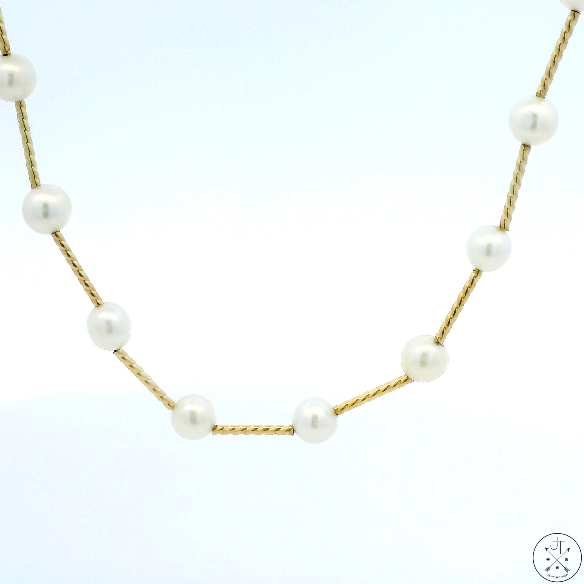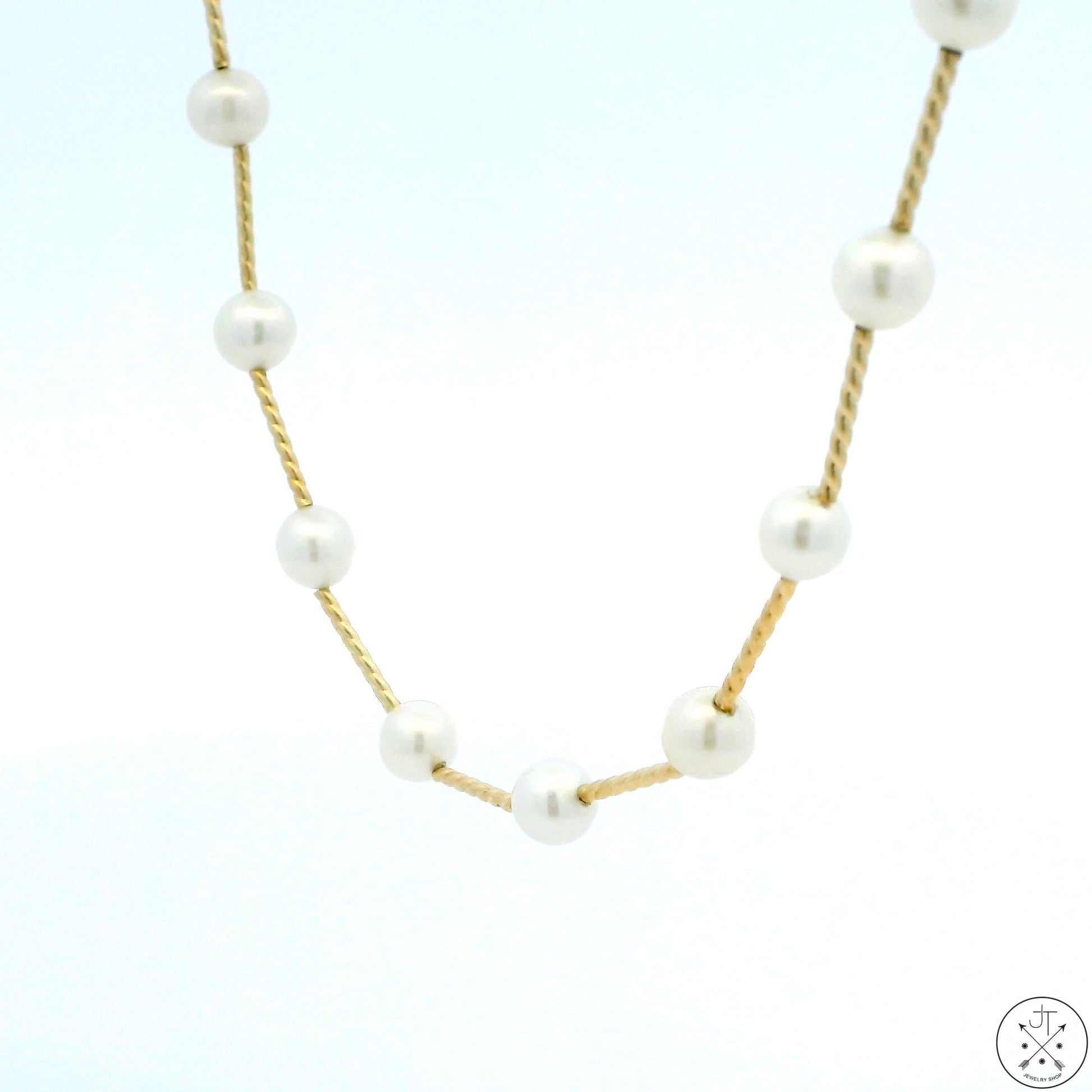 14k Yellow Gold 18 Inch Pearl Station Necklace