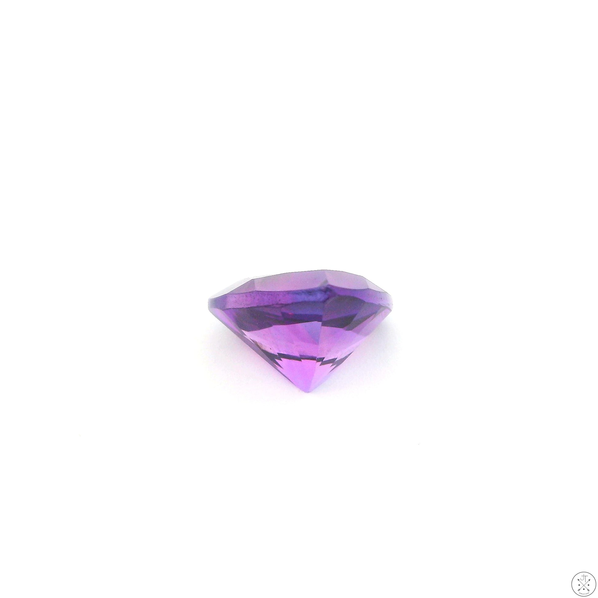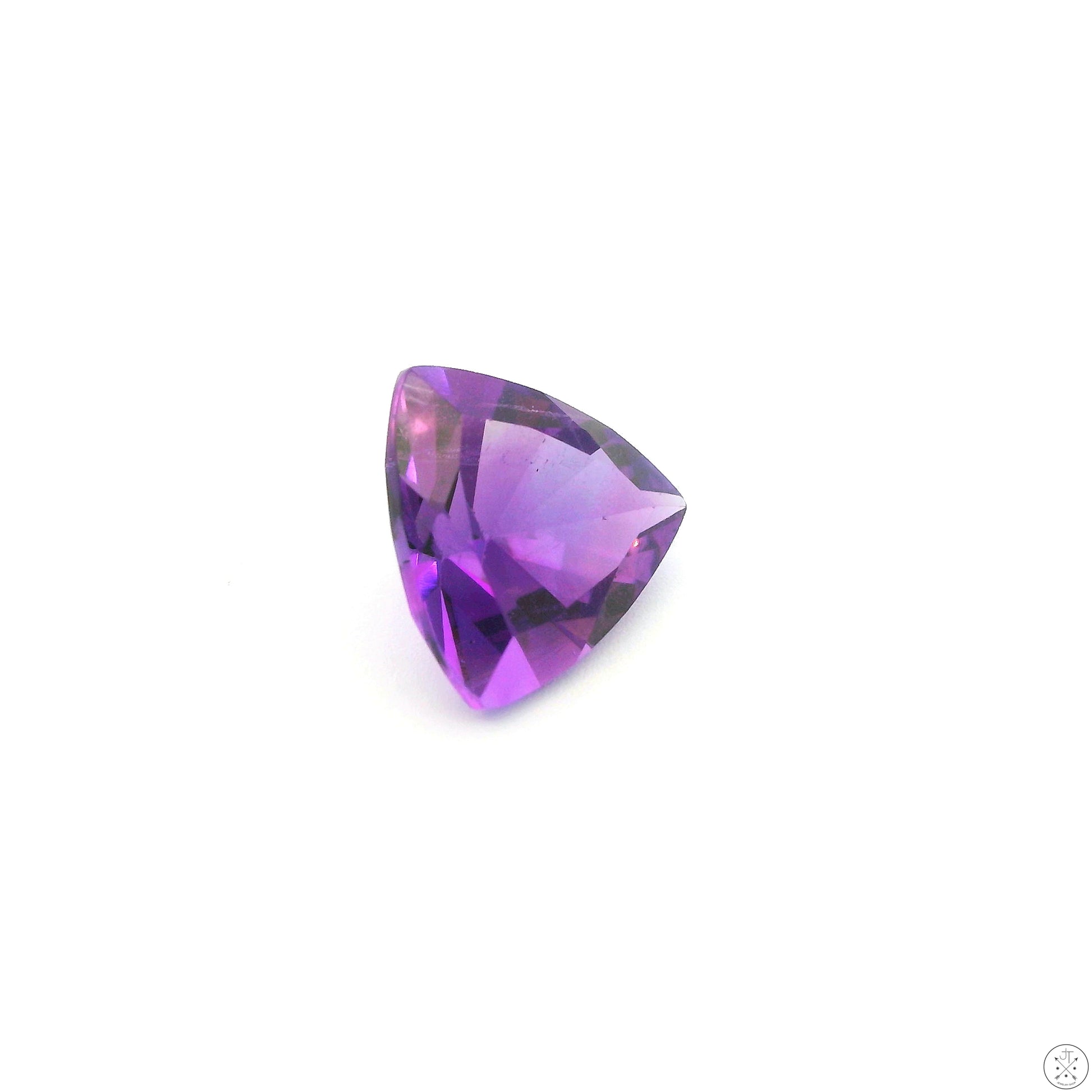 Gorgeous faceted triangular natural Amethyst gemstone, approximately 2.10 carats and 9.06 x 8.99 x 5.60 mm. This beautiful gemstone has medium purple color saturation with minor color zoning and is loupe clean. This is a triangular cut with 25 facets to show off the stones' color - trillion cuts typically have at least 31 facets for enhanced sparkle. New and ships in a gem jar.