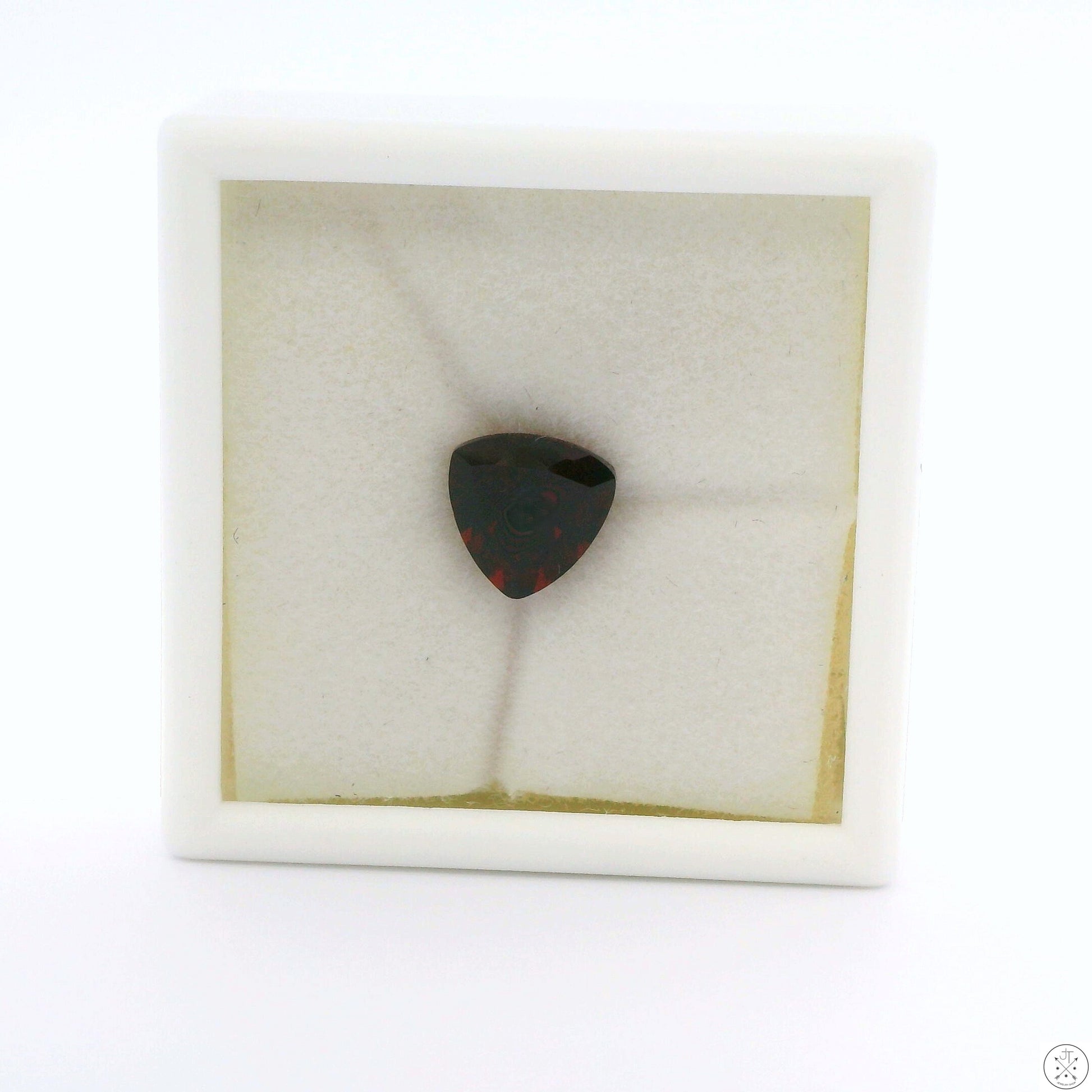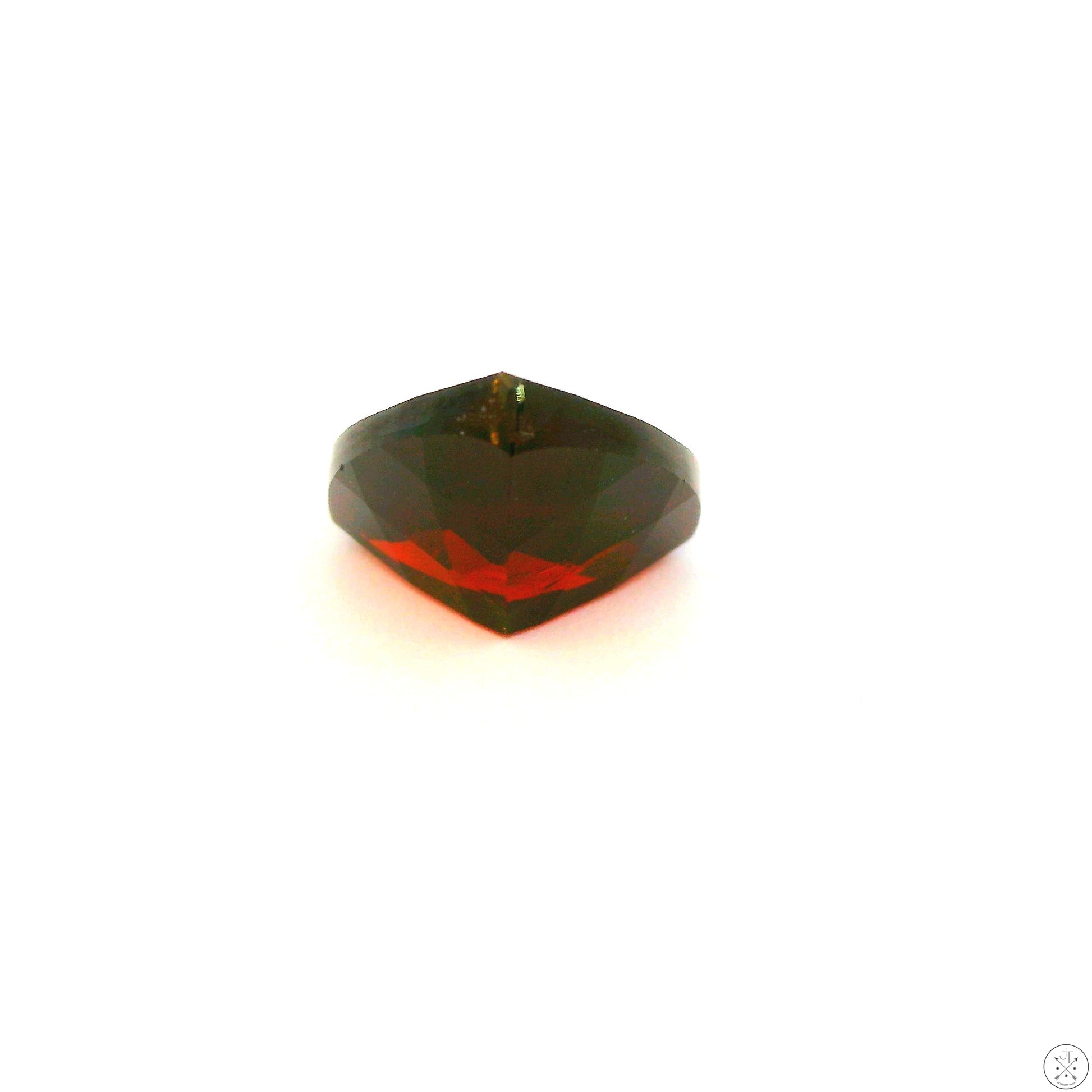 Gorgeous trillion-faceted natural Almandine (Almandite) Garnet mined in Mozambique, approximately 2.35 Carats and 8.14 x 8.12 x 4.70 mm. This beautiful brownish-red Garnet has medium-dark color saturation and is loupe-clean. New and ships in a gem jar.