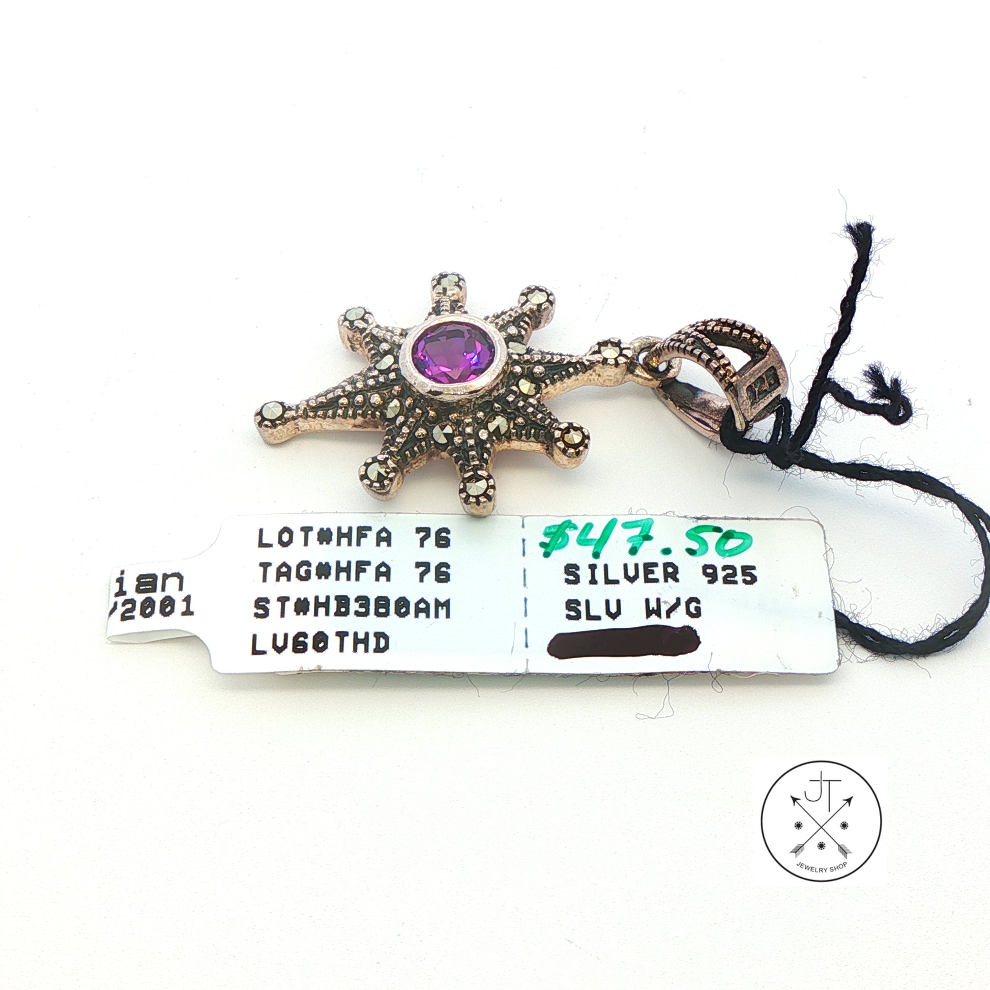 2001 LeVian Sterling Silver Pendant Natural Amethyst and Marcasite Grand Sample Star