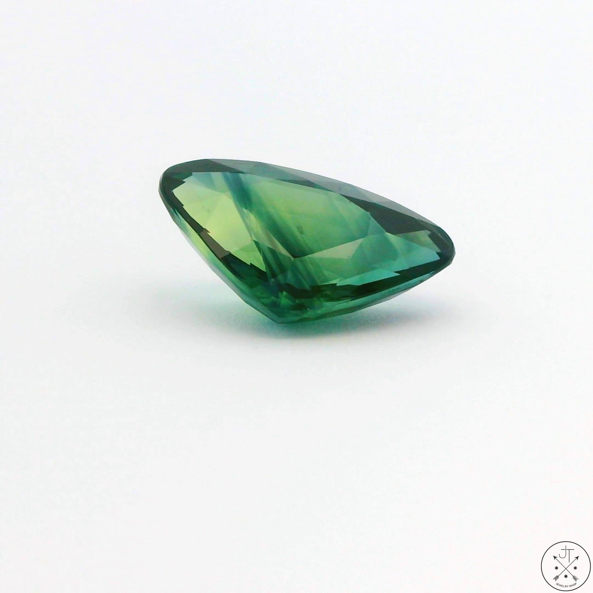 3.17 Carat Natural Bi-Color Sapphire 12 x 7.5 mm Triangular Faceted Gemstone Certified Blue Green