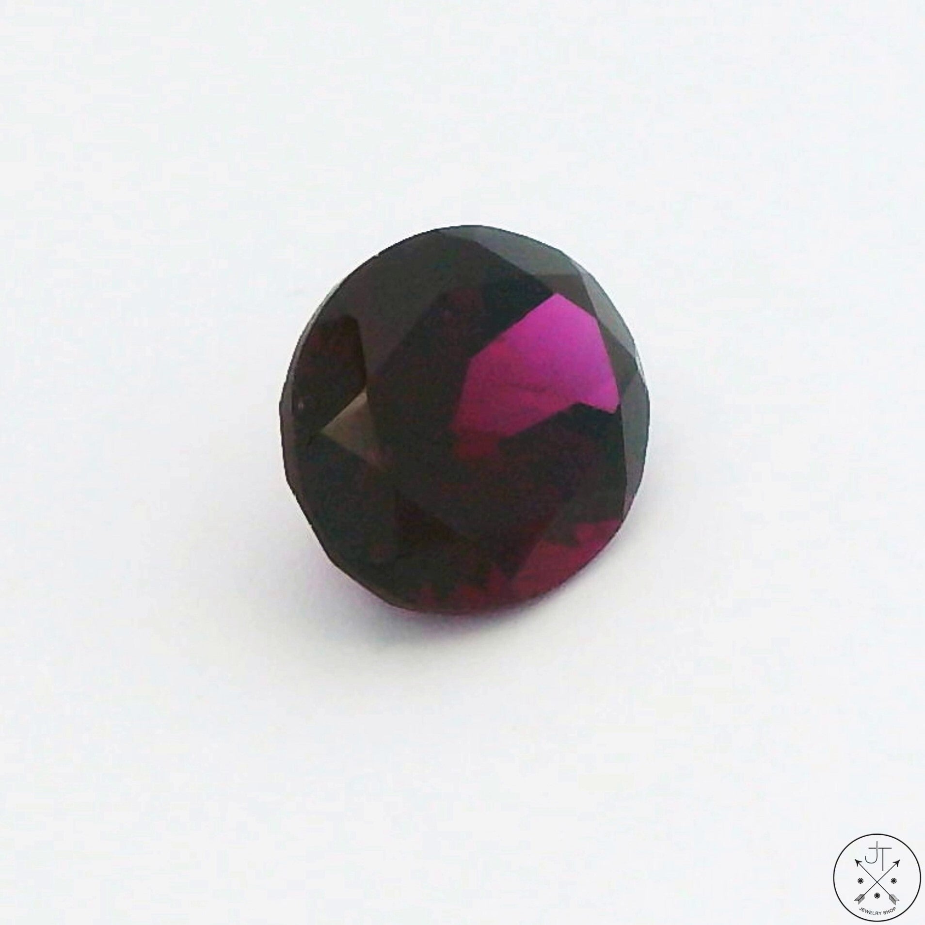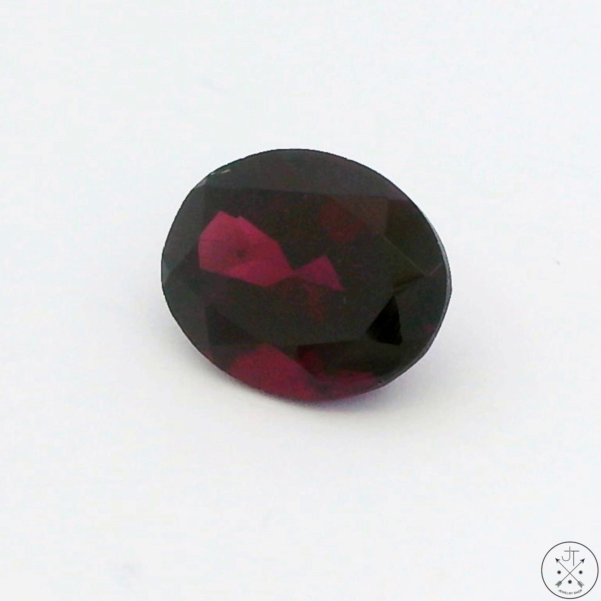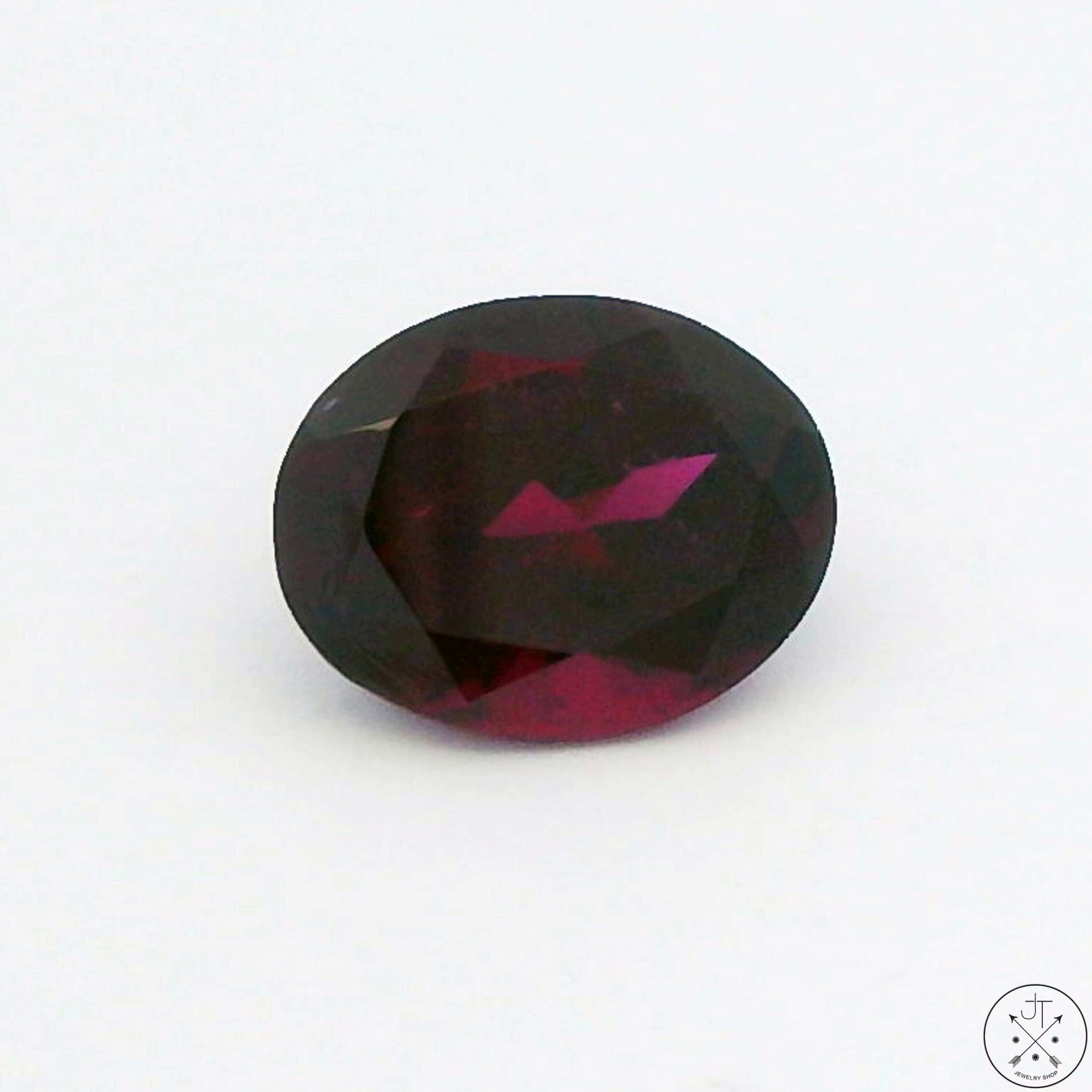 Gorgeous oval-faceted natural Rhodolite Garnet gemstone, approximately 3.23 Carats and 9.94 x 7.87 x 4.98 mm. This beautiful reddish-purple, eye-clean gemstone is new and ships in a gem jar.