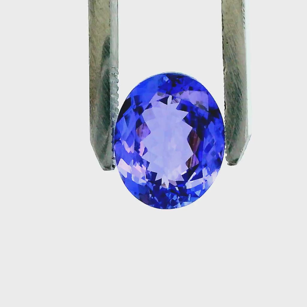 Gorgeous oval-faceted natural Tanzanite mined in Tanzania, approximately 3.81 Carats and 11.12 x 8.95 x 5.00 mm. This beautiful, slightly bluish-violet gemstone has a medium-light tone and very slightly greyish saturation, and is loupe-clean. New and ships in a gem jar.
