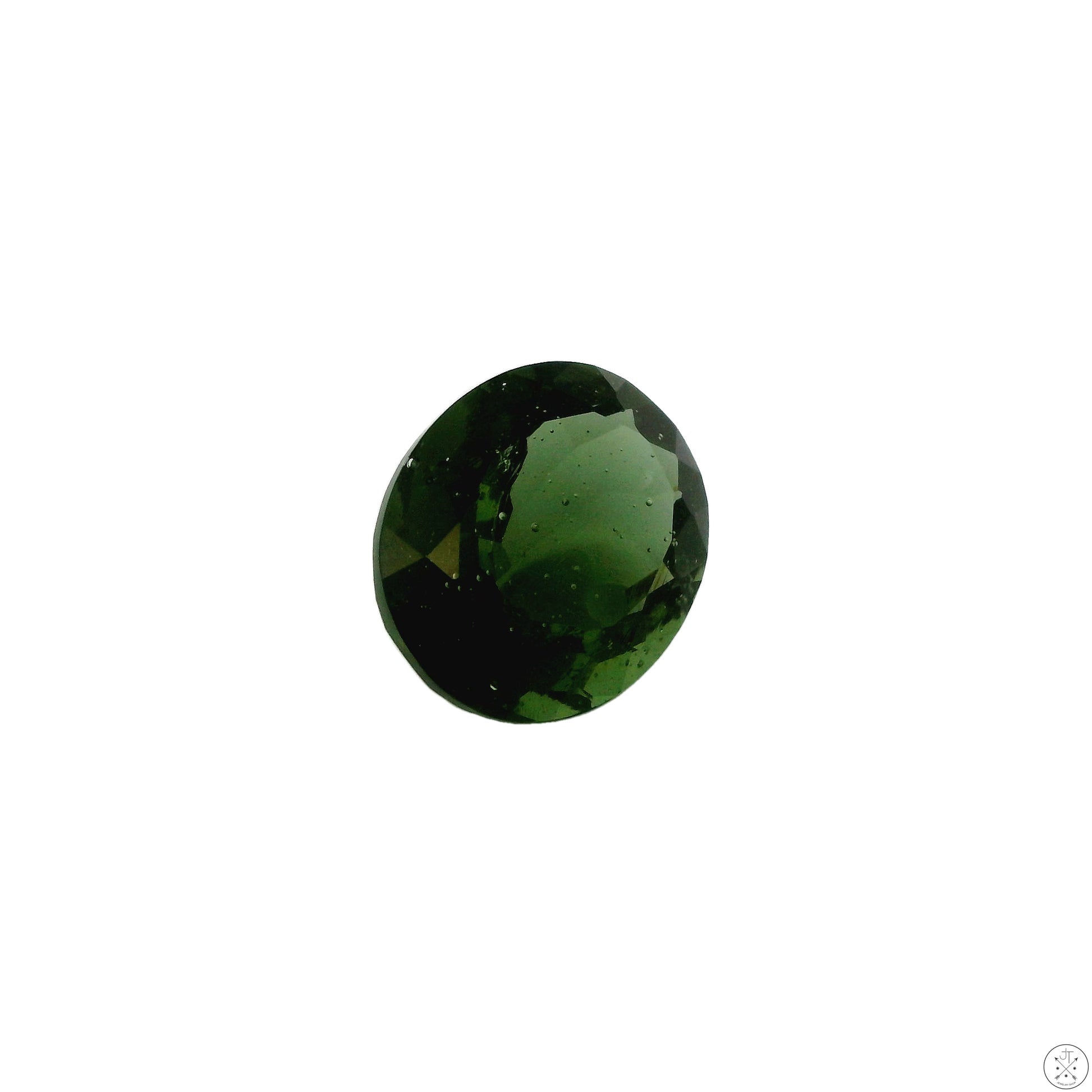 Gorgeous oval-faceted natural Moldavite gemstone, approximately 4.11 Carats and 12.08 x 10.04 x 6.49 mm. This beautiful, slightly olive-green gemstone is eye-clean. New and ships in a gem jar.