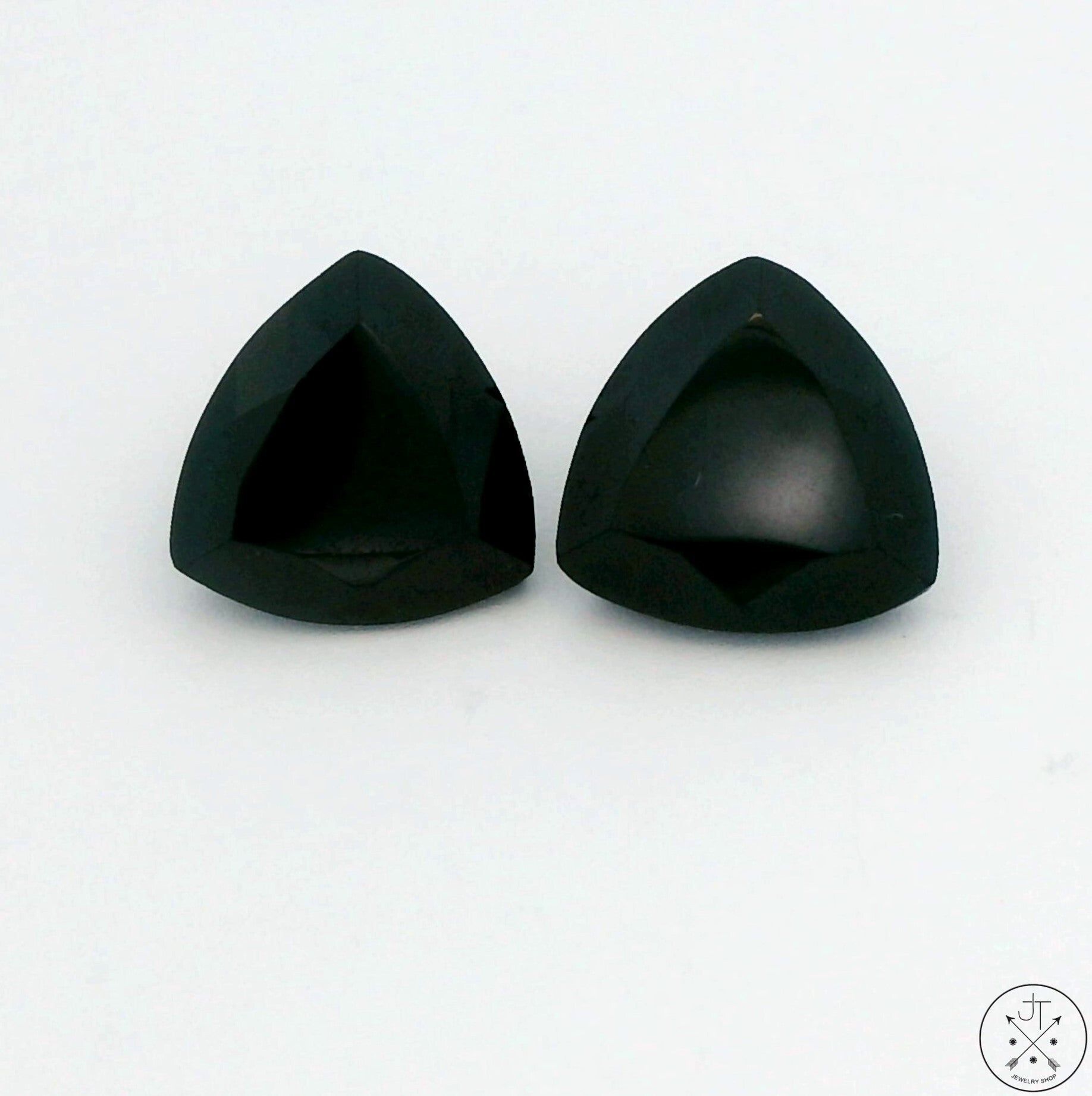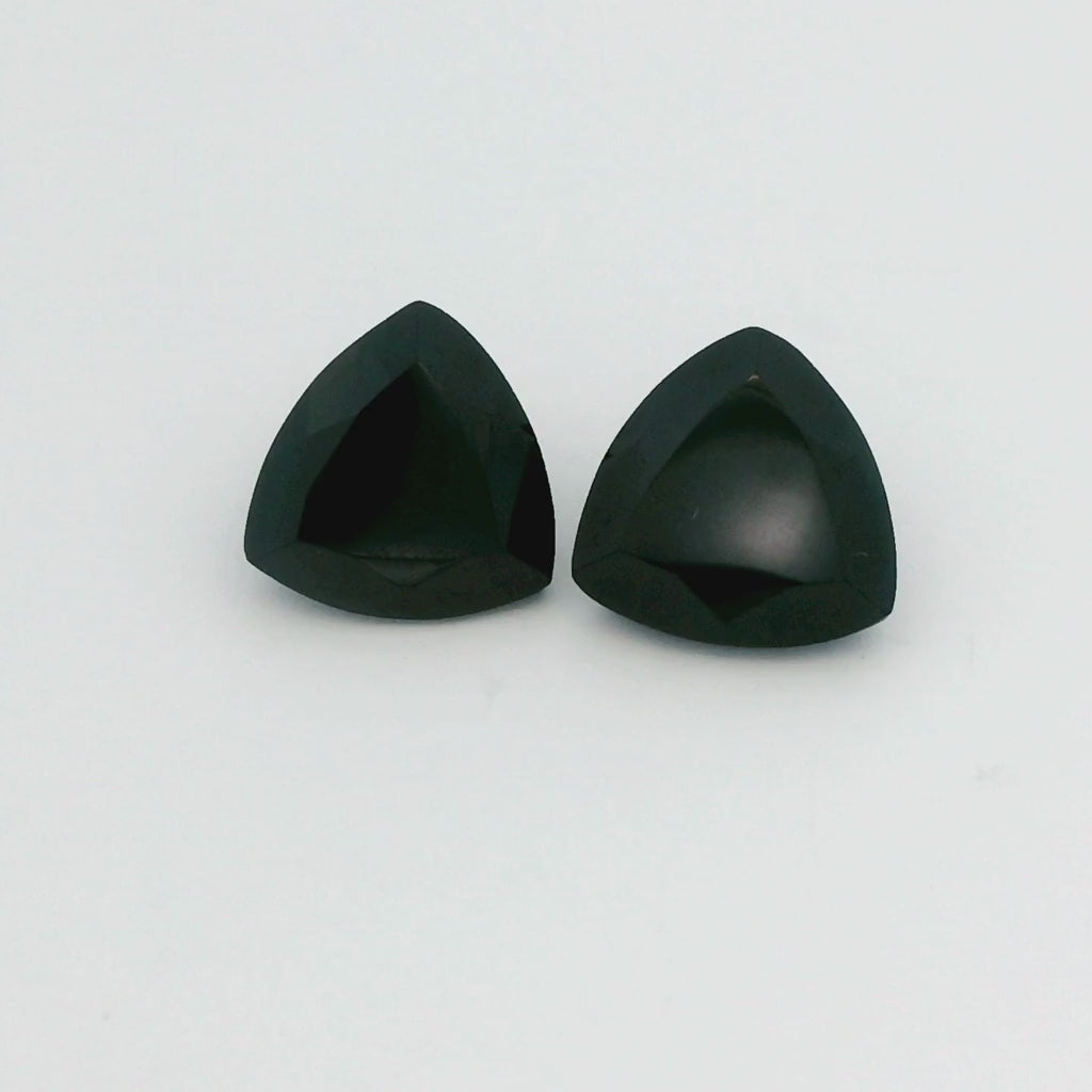 4.3 ctw Matched Pair Natural Black Spinel 8 mm Trillion Faceted Gemstones