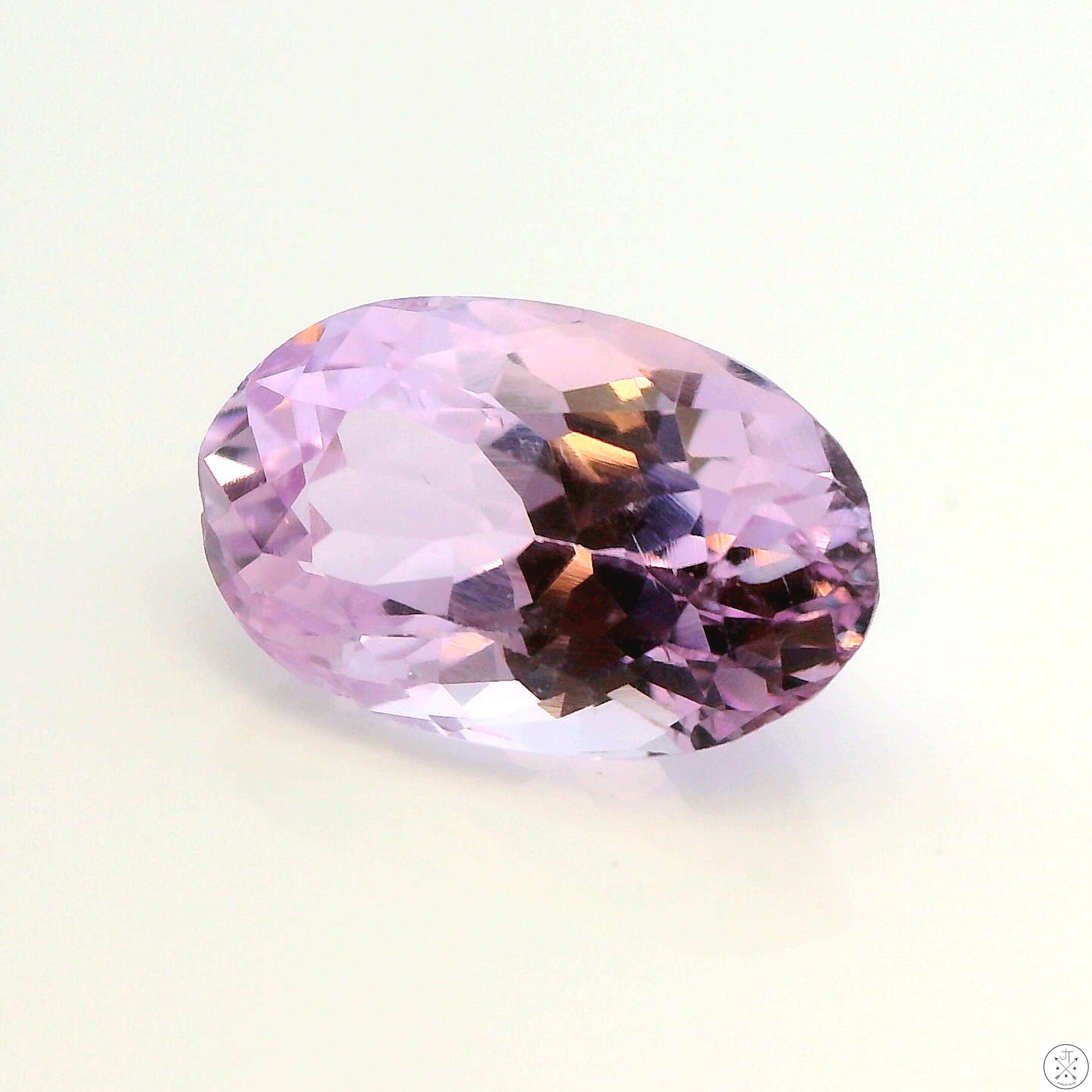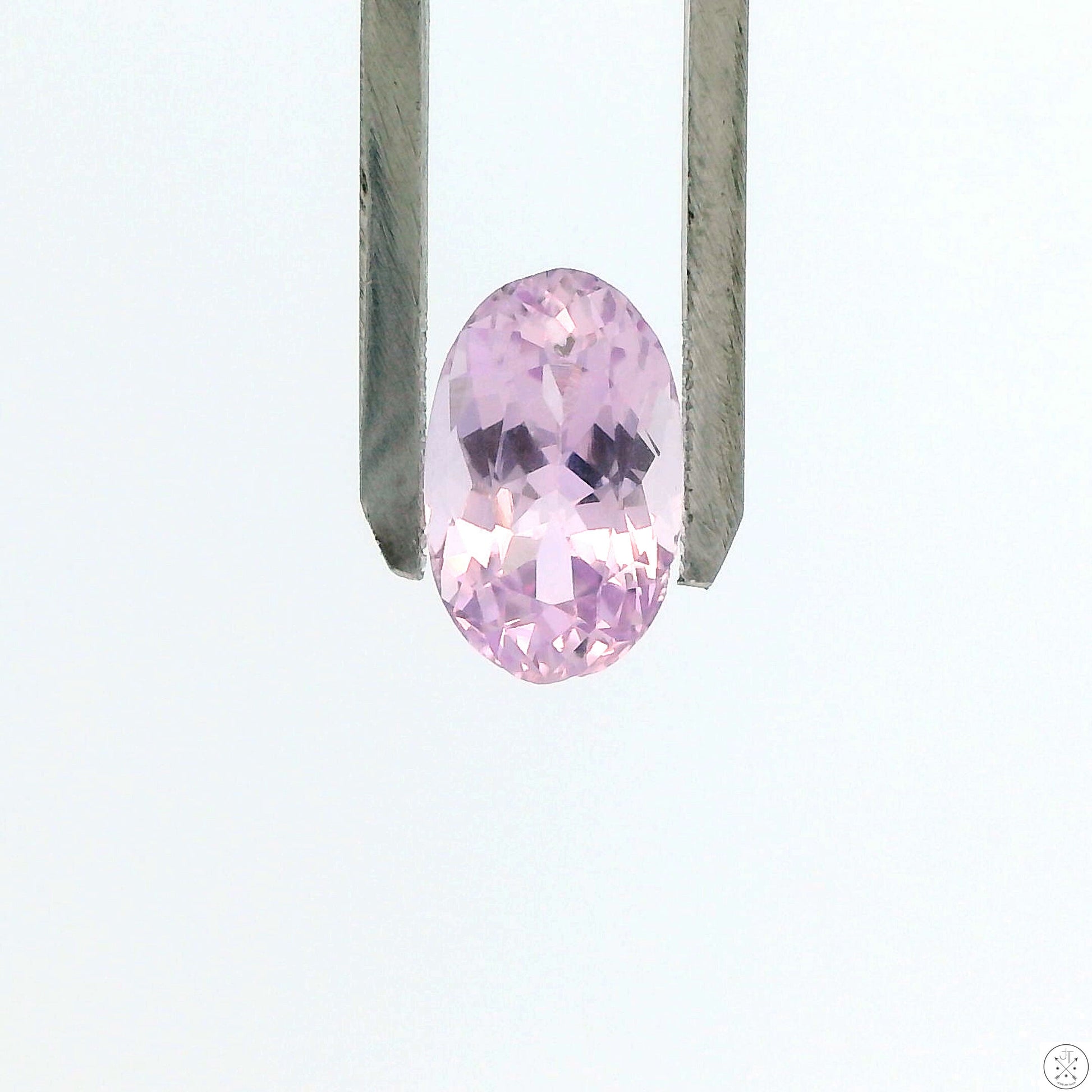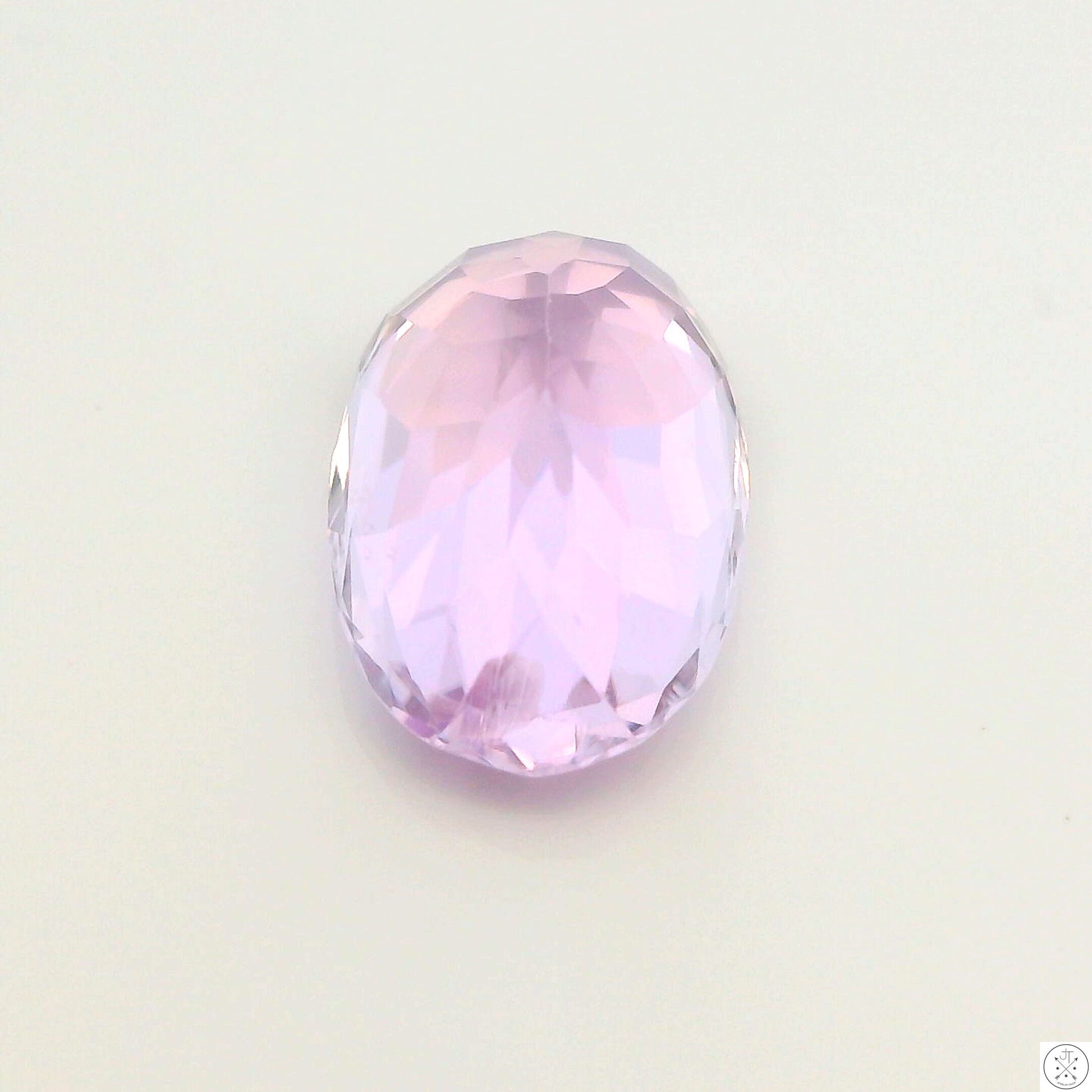 Gorgeous oval-faceted natural Kunzite gemstone, approximately 4.61 Carats and 13.03 x 8.12 x 6.58 mm. This stunning, eye-clean light pink gemstone is new and ships in a gem jar.