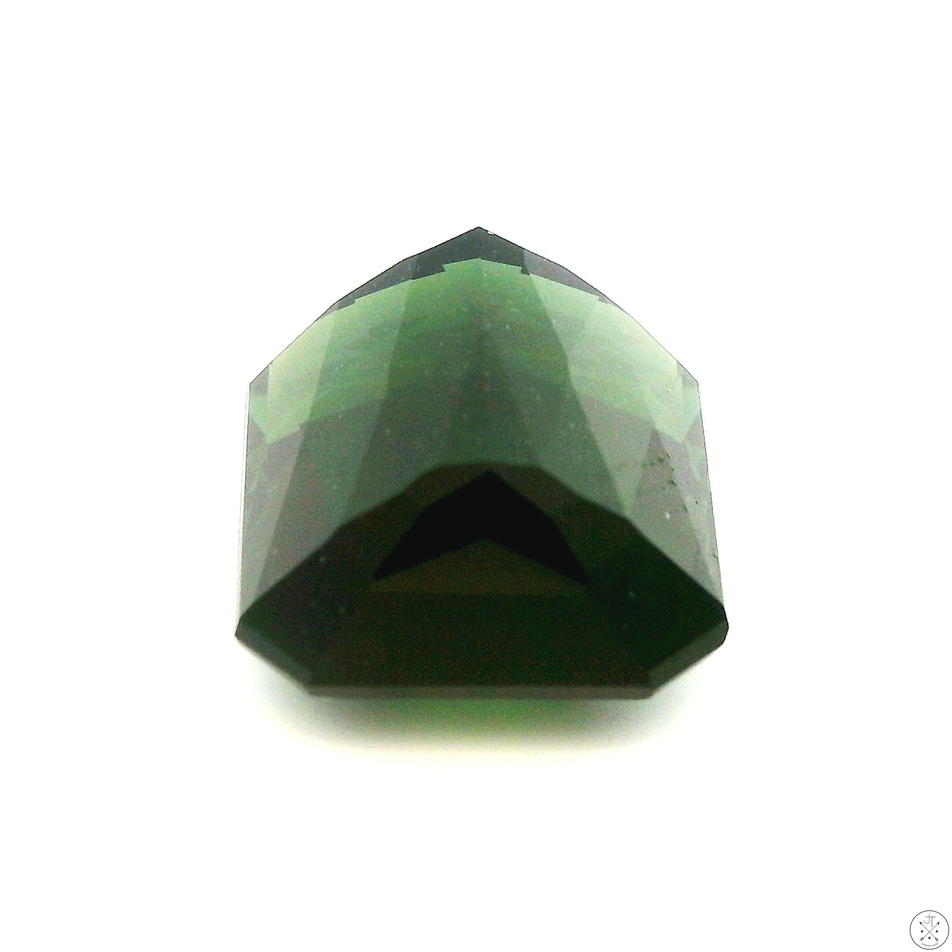 Gorgeous square emerald-faceted natural Green Tourmaline gemstone, approximately 6.05 carats and 10.17 x 9.80 x 6.92 mm. This beautiful gemstone displays slightly dark green and dark hunter green colors, with bluish flashes at certain angles, and is loupe-clean. This gemstone is new and ships in a gem jar, best suited as a display specimen or to be set in a ring or pendant.