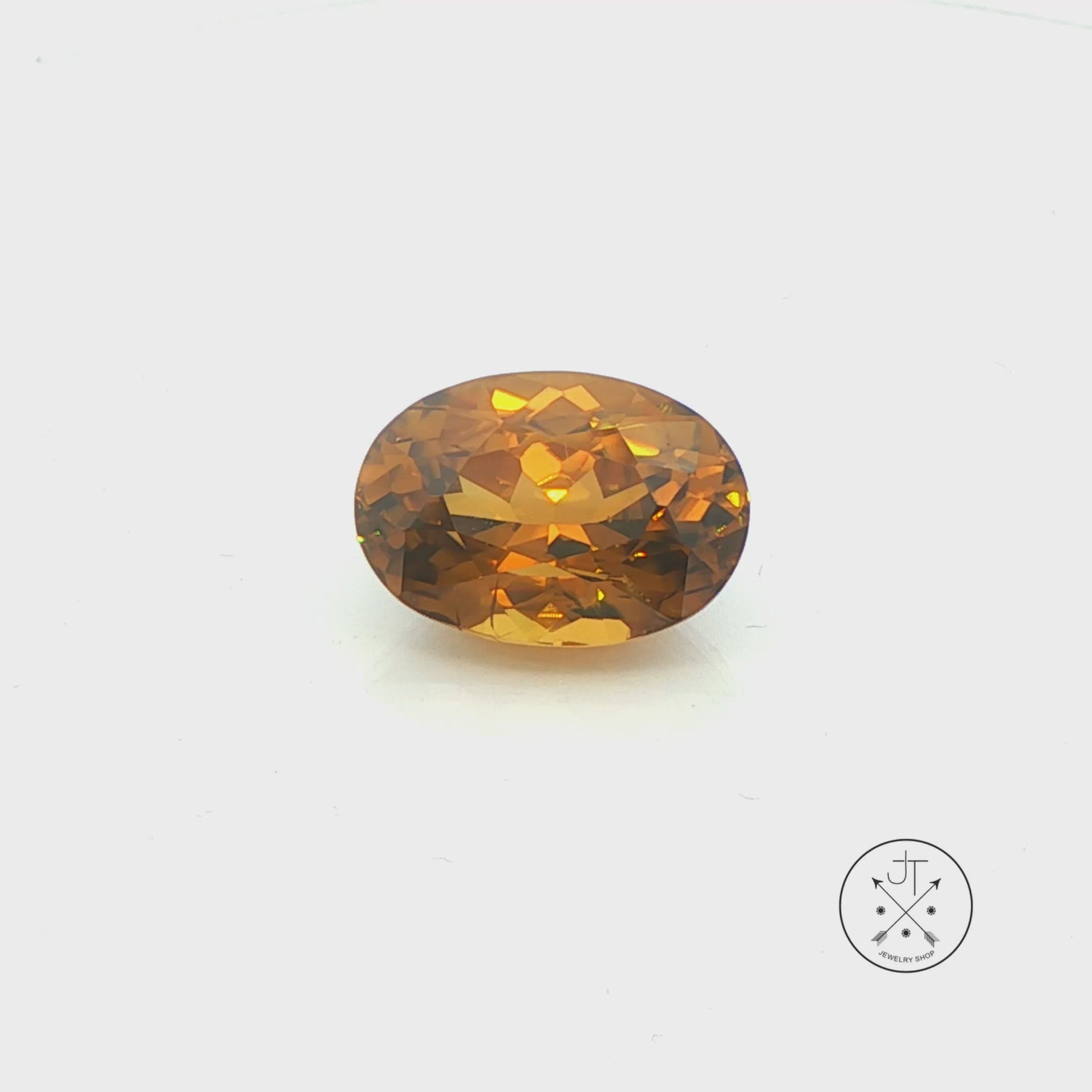 Beautiful 8.04 carat oval-faceted natural Yellow Zircon gemstone measuring 13.35 x 9.40 x 6.84 mm. This loupe-clean, slightly dark, slightly brownish, orangeish-yellow gemstone is best suited for display or set in a ring or pendant. This gemstone is new and ships in a gem jar.