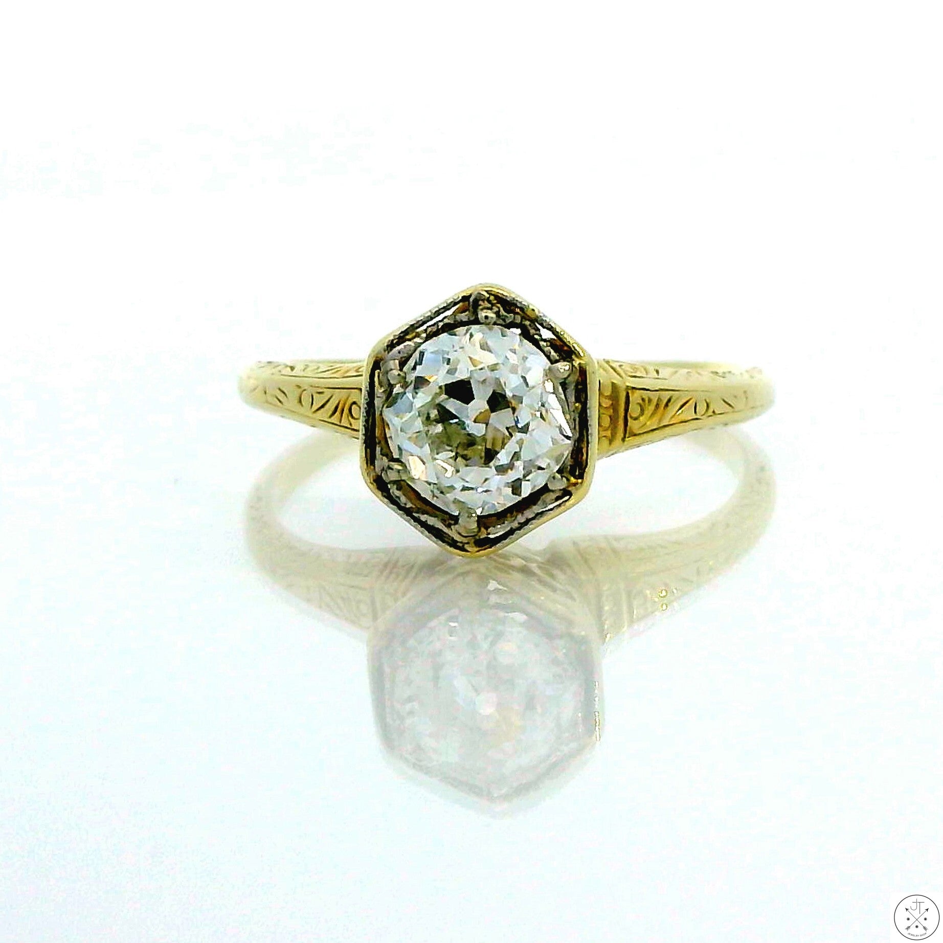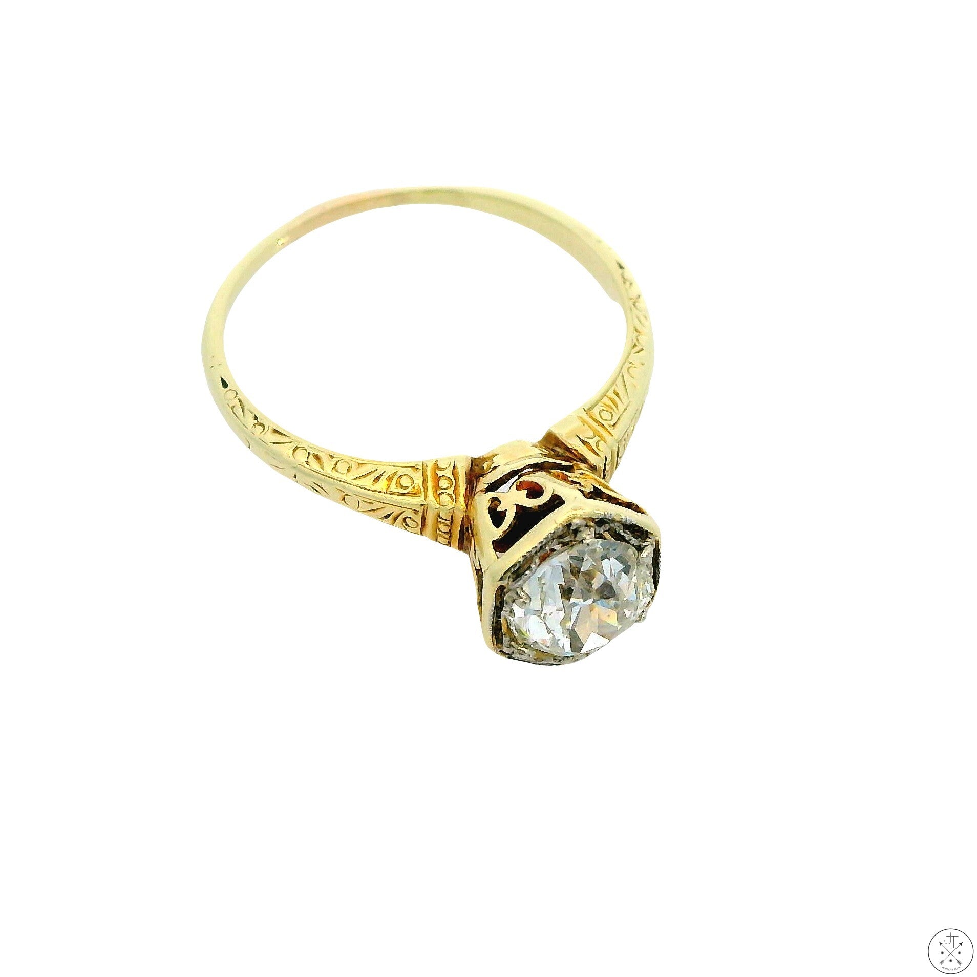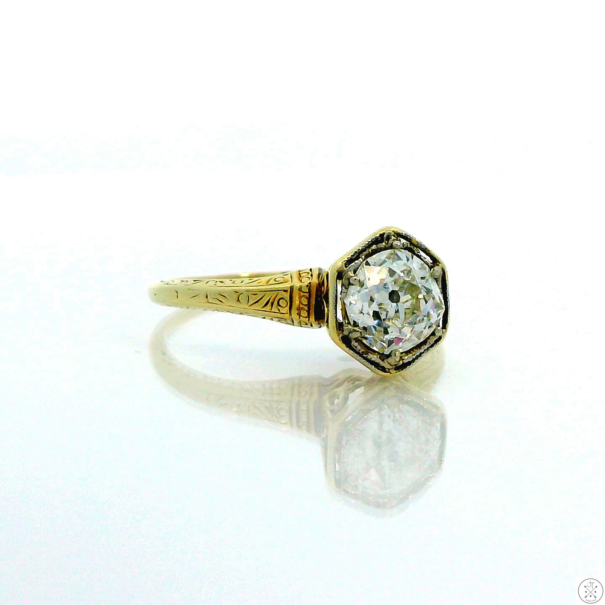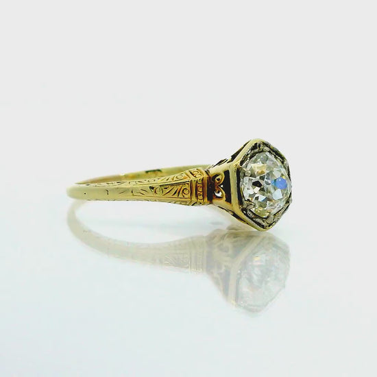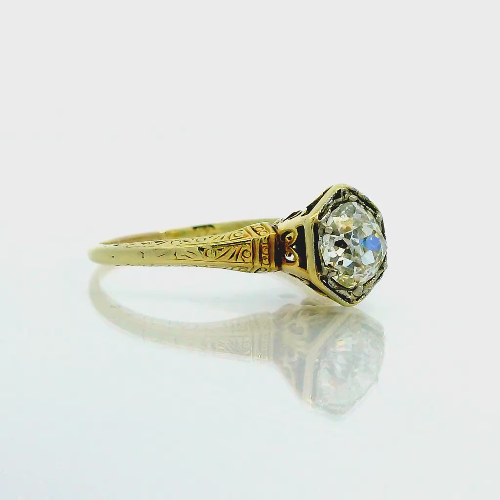Antique 14k Yellow Gold Solitaire Ring with .84 ct Euro Cut Natural Diamond Size 6