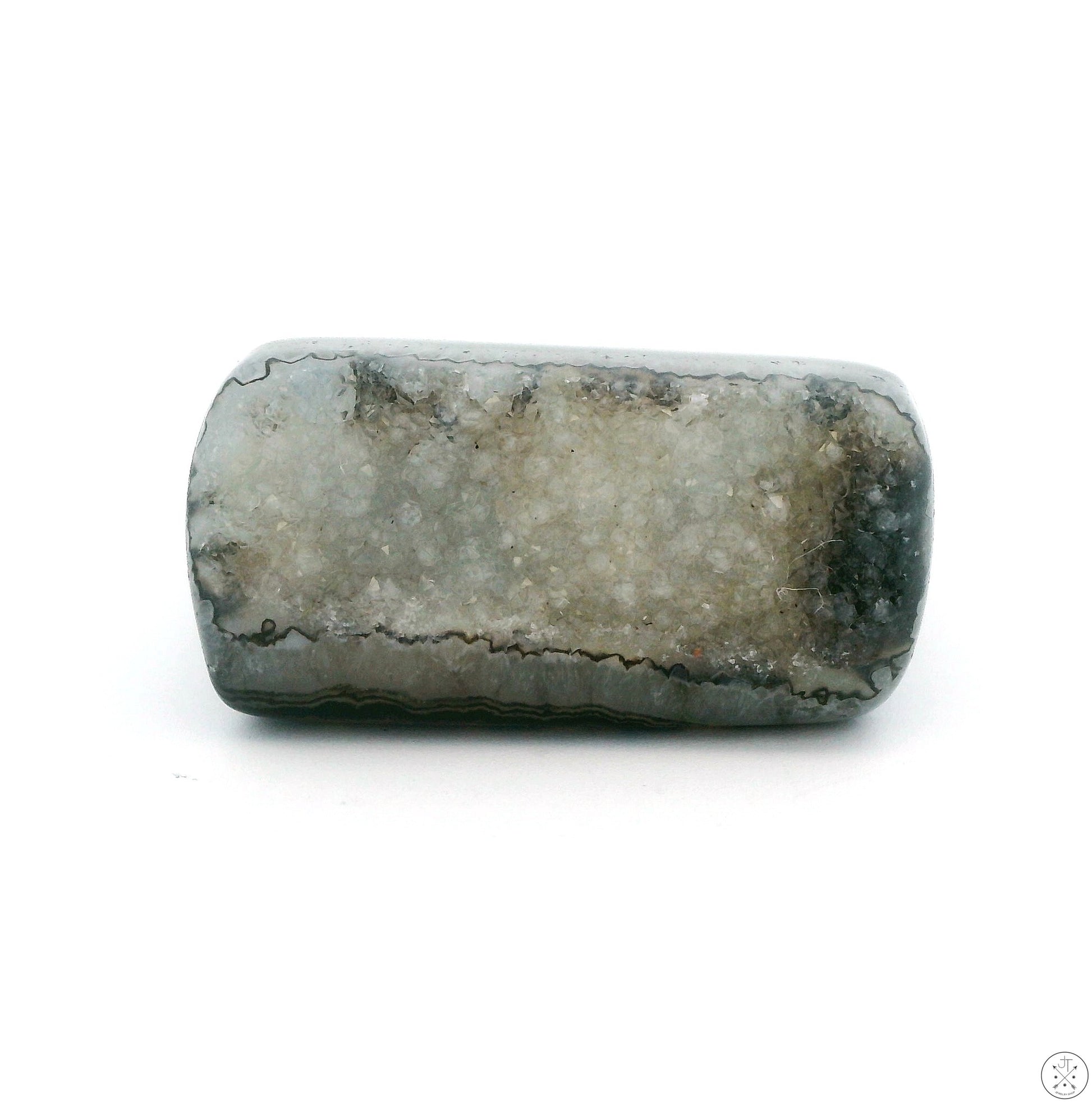 Drusy, also spelled druzy, is not a mineral in itself but rather a captivating coating of tiny, sparkling crystals that form on the surface of another mineral. Most commonly seen on quartz varieties like agate and amethyst, drusy presents a shimmering, sugar-like texture that catches the light beautifully. Its appeal lies in its natural, raw beauty and the myriad of colors it can exhibit, depending on the host mineral. Often used in jewelry for its unique sparkle and relatively affordable price point, each piece of drusy is truly one-of-a-kind, showcasing nature's artistry on a miniature scale.
