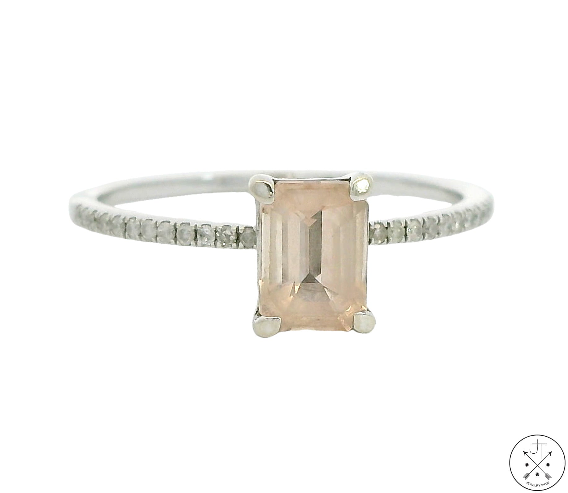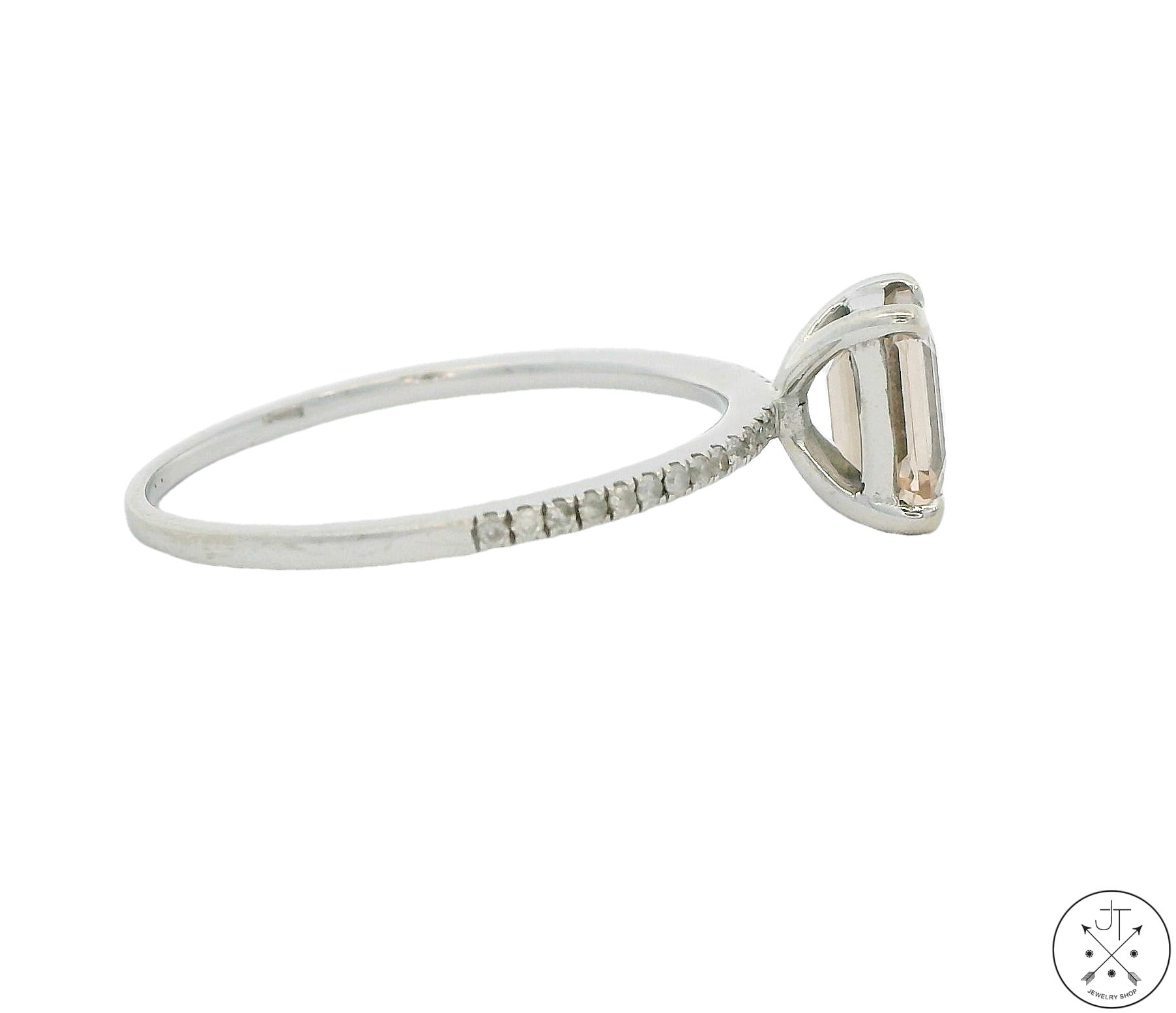 New 10k White Gold Engagement Ring with Morganite and Diamond Size 9