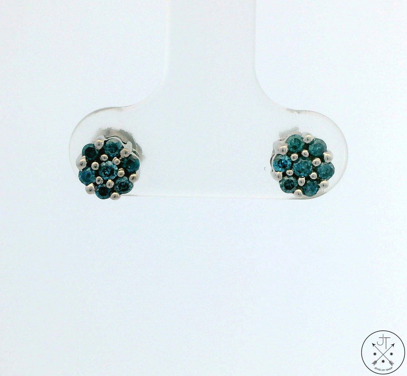 New 10k White Gold Stud Earrings with 1/4 ctw Blue Diamonds