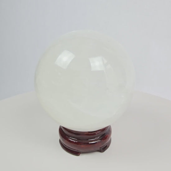 Discover the beauty of nature with this stunning natural Quartz crystal sphere. Featuring a beautiful shimmer from within, this sphere is approximately 3.6 inches in diameter and weighs approximately 1,150 grams. Includes the wood stand, as pictured.