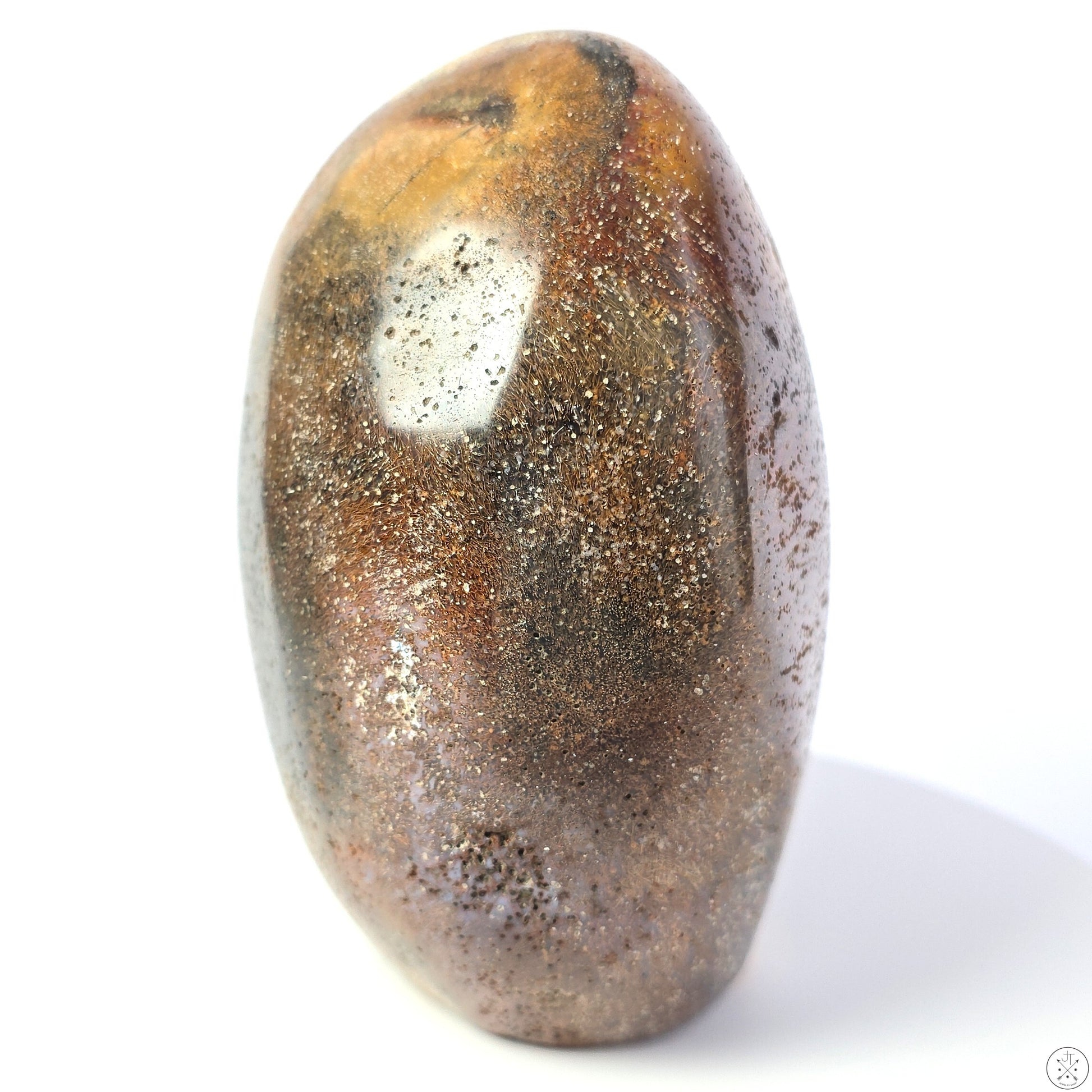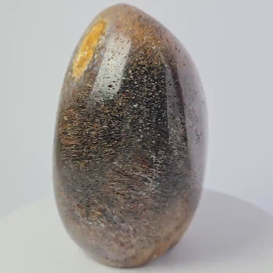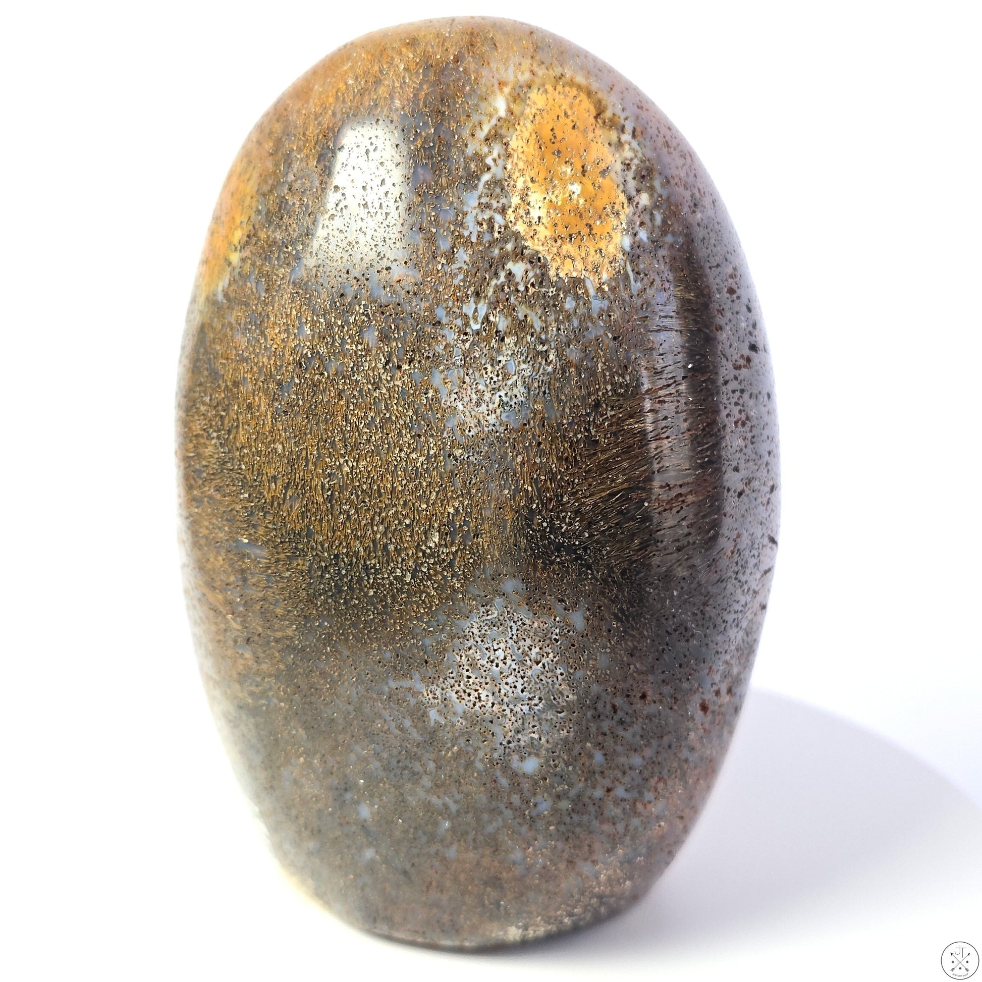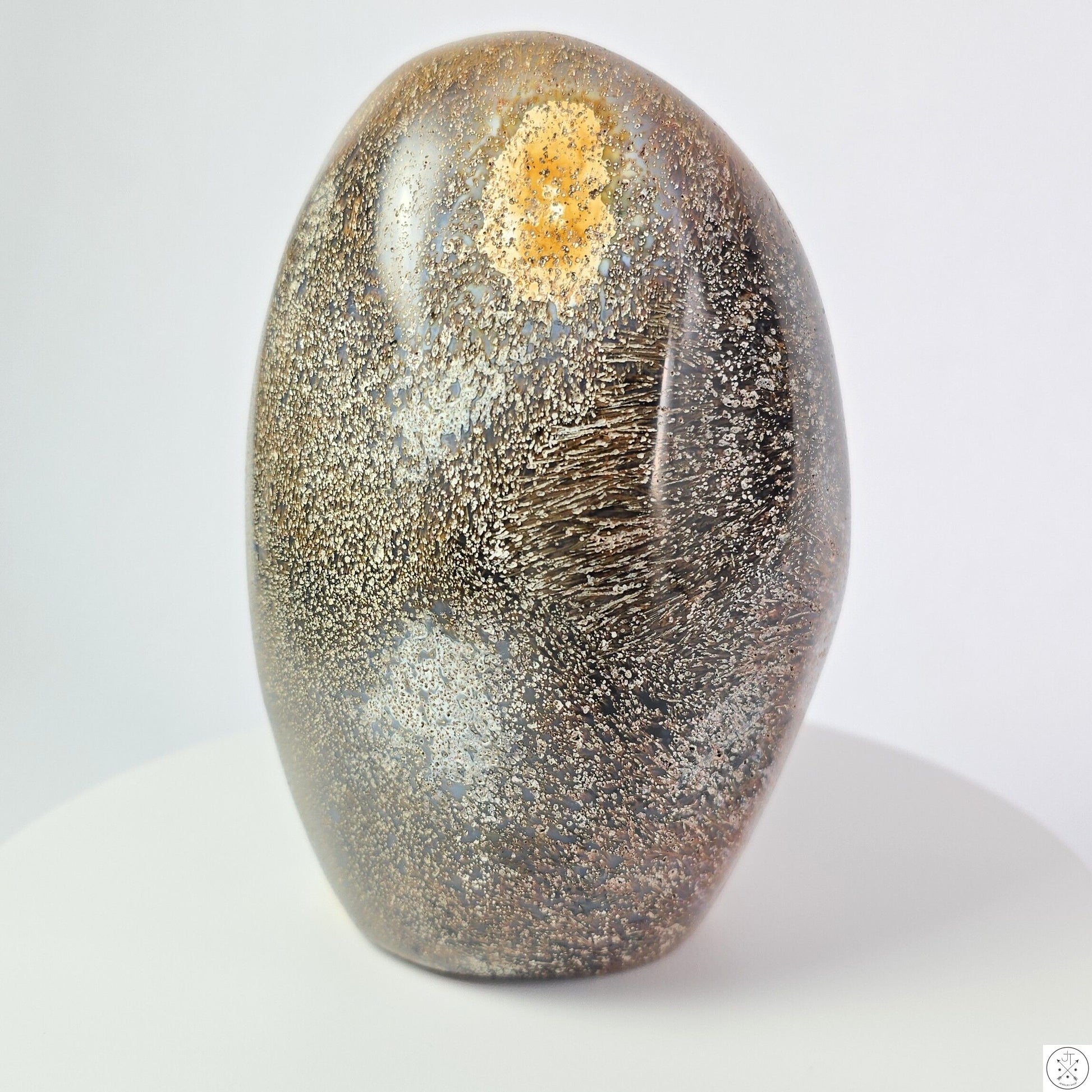 Discover the beauty of nature with this stunning natural Hair Agate freeform. This hand-shaped specimen measures approximately 4.9 x 3.8 x 3.1 inches when standing on its flat base, and weighs approximately 1,242 grams (2.74 pounds). These gemstones' naturally semi-porous make-up means they display white spotting at the ends of the 'hairs' when dry - a dab of moisture brings back clarity for spectacular inspection. We included 2 images of the specimen, completely dry for months before photographing.