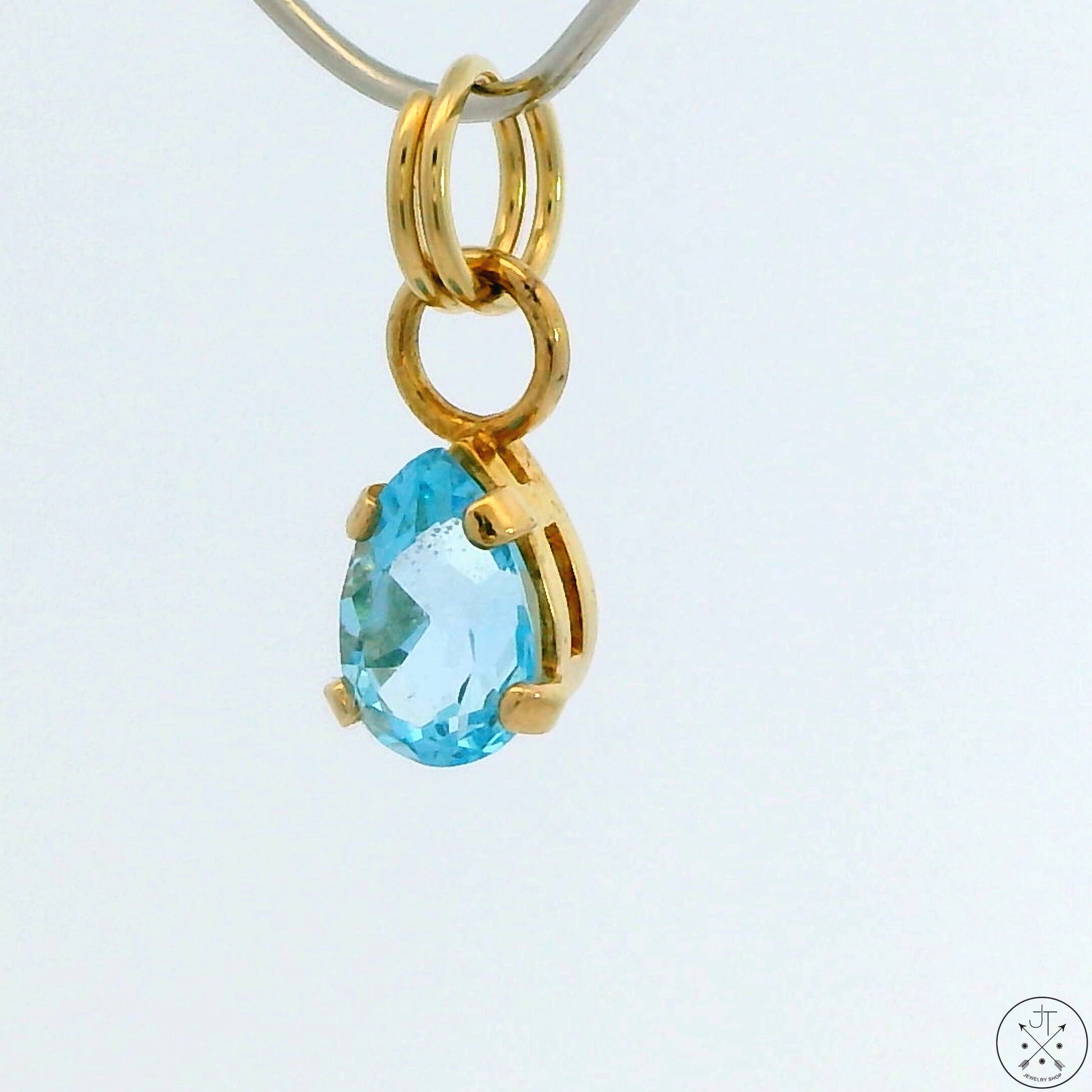 New 14k Yellow Gold Drop Pendant with Topaz Charm Keyring Split Ring