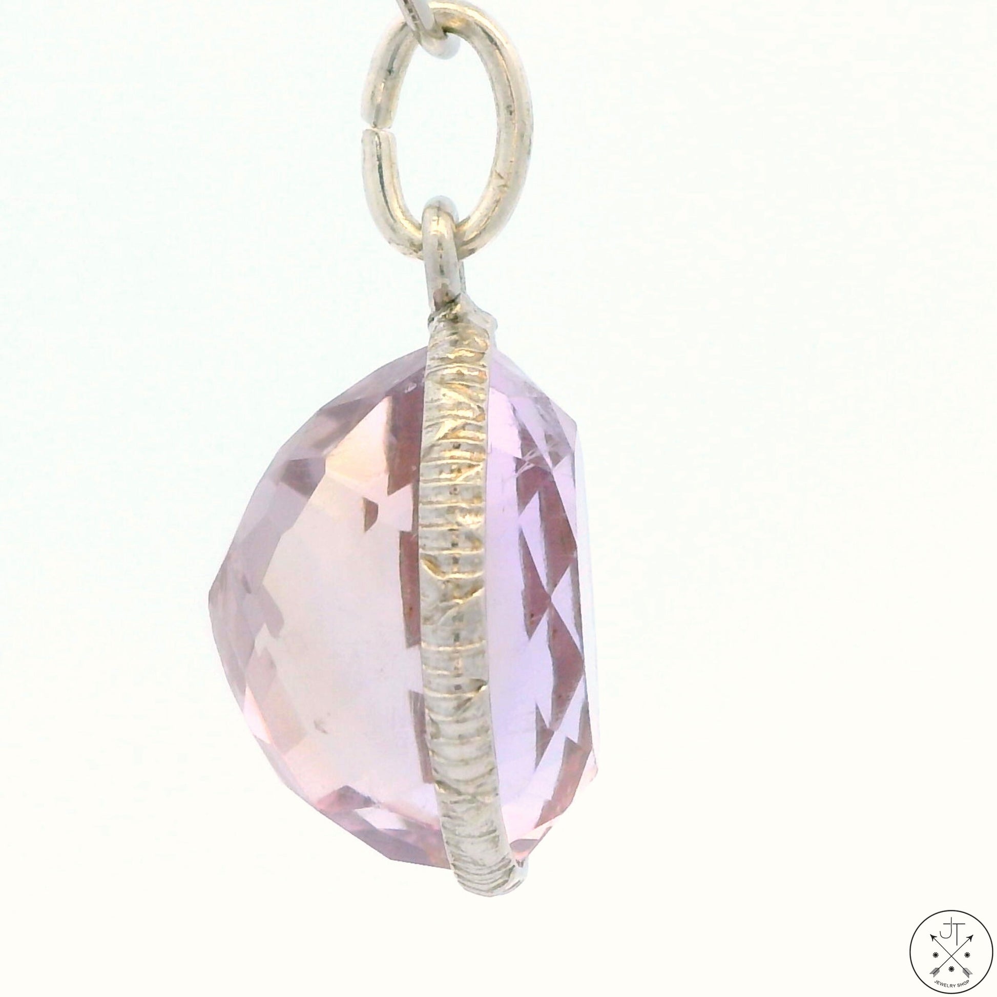 Elevate your jewelry collection with this exquisite Sterling Silver bezel set natural Ametrine pendant. The intricate design and sparkling facets create a captivating visual appeal, making it a standout piece. Ideal for layering or wearing alone, this pendant adds a touch of luxury to any outfit, ensuring you shine bright wherever you go. This pendant measures approximately 24 mm x 12 mm, including the bale, and weighs 2.46 grams. These wonderful Gemstone pendants were made for our stores' 2023 Fall Colors collection and are unworn but may have storage wear.