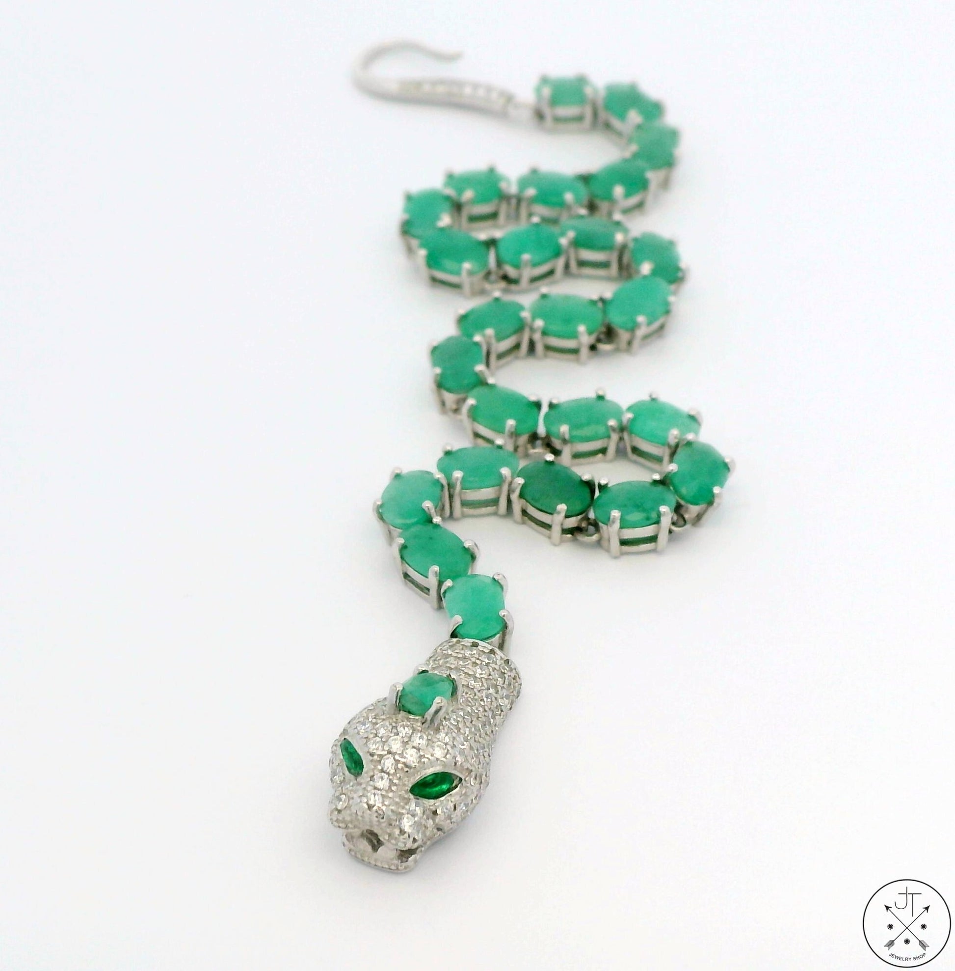 New Sterling Silver Tennis Bracelet 7.75 Inch with Natural Emerald Cobra Snake