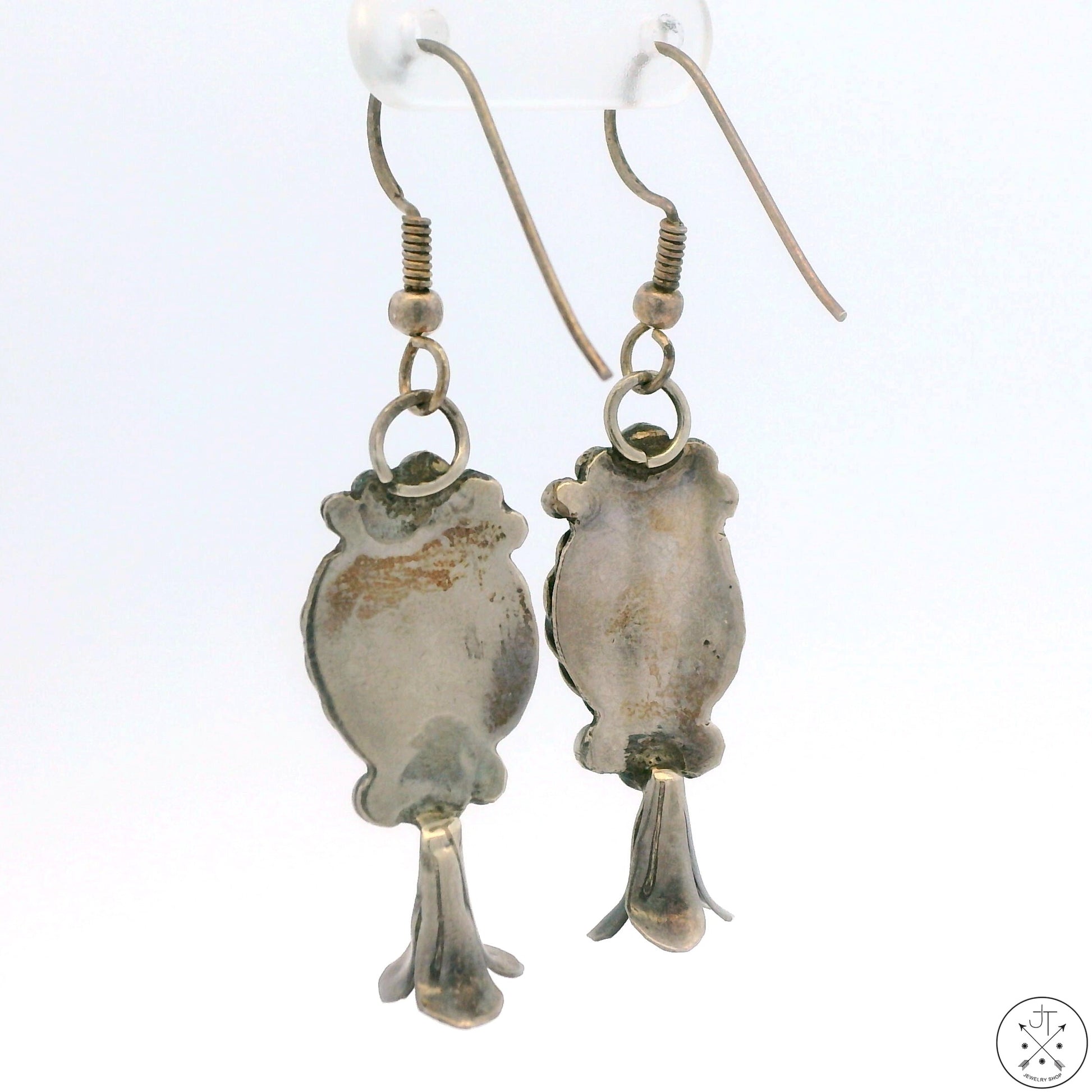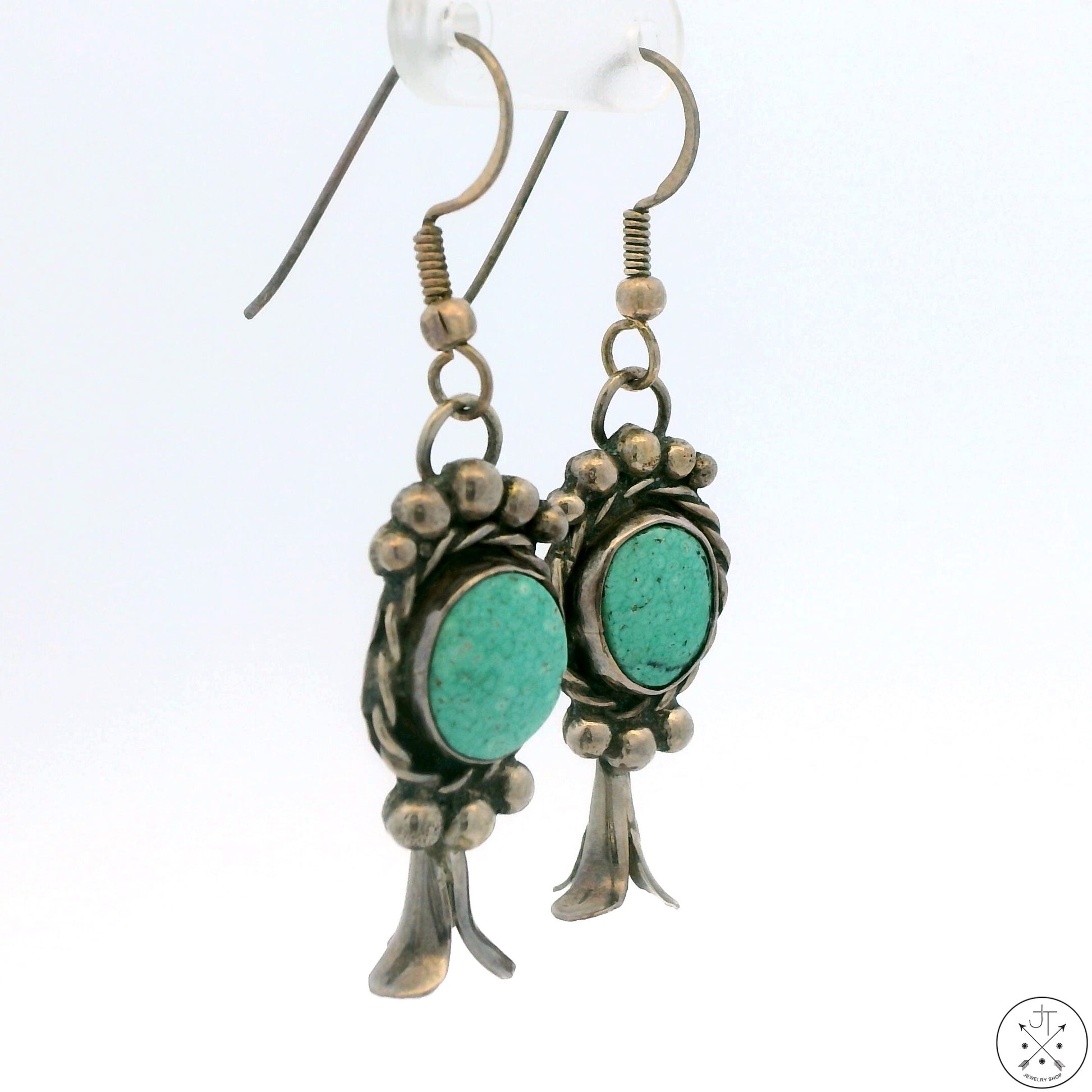 Sterling Silver Squash Blossom Dangle Earrings Turquoise