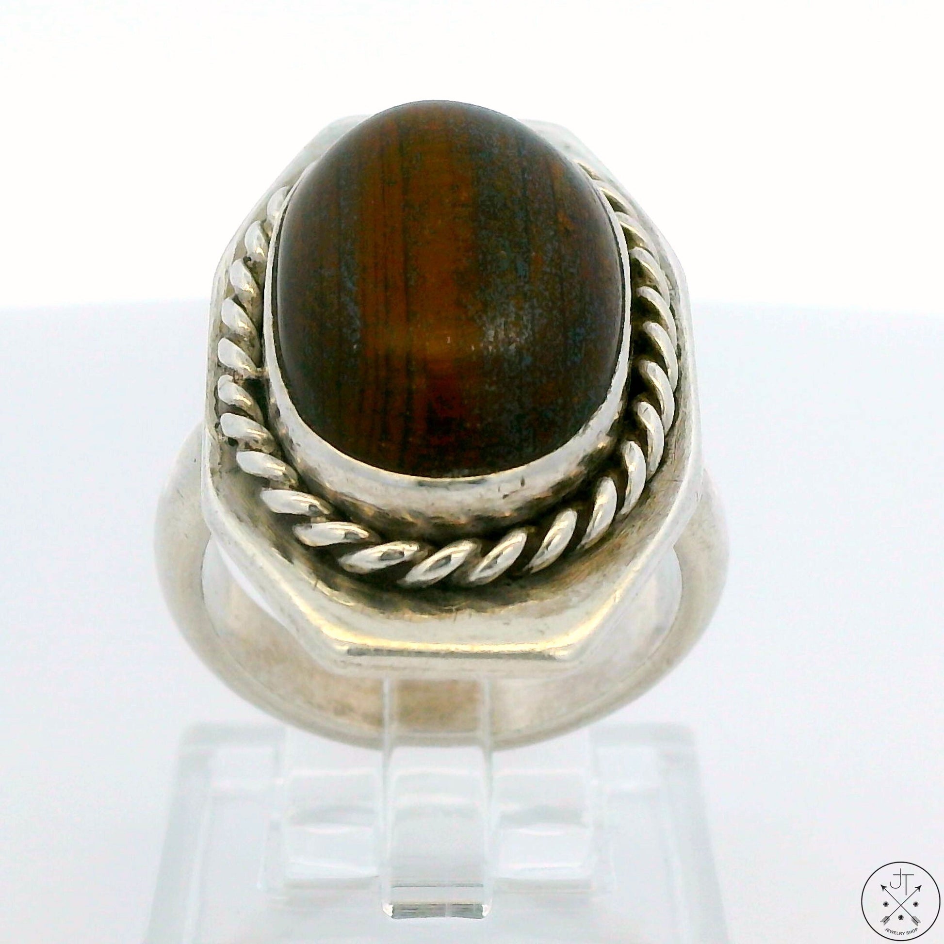 Unique 2006 Zuni Sterling Silver Ring with Hardwood Cabochon Size 6.75 Chavez