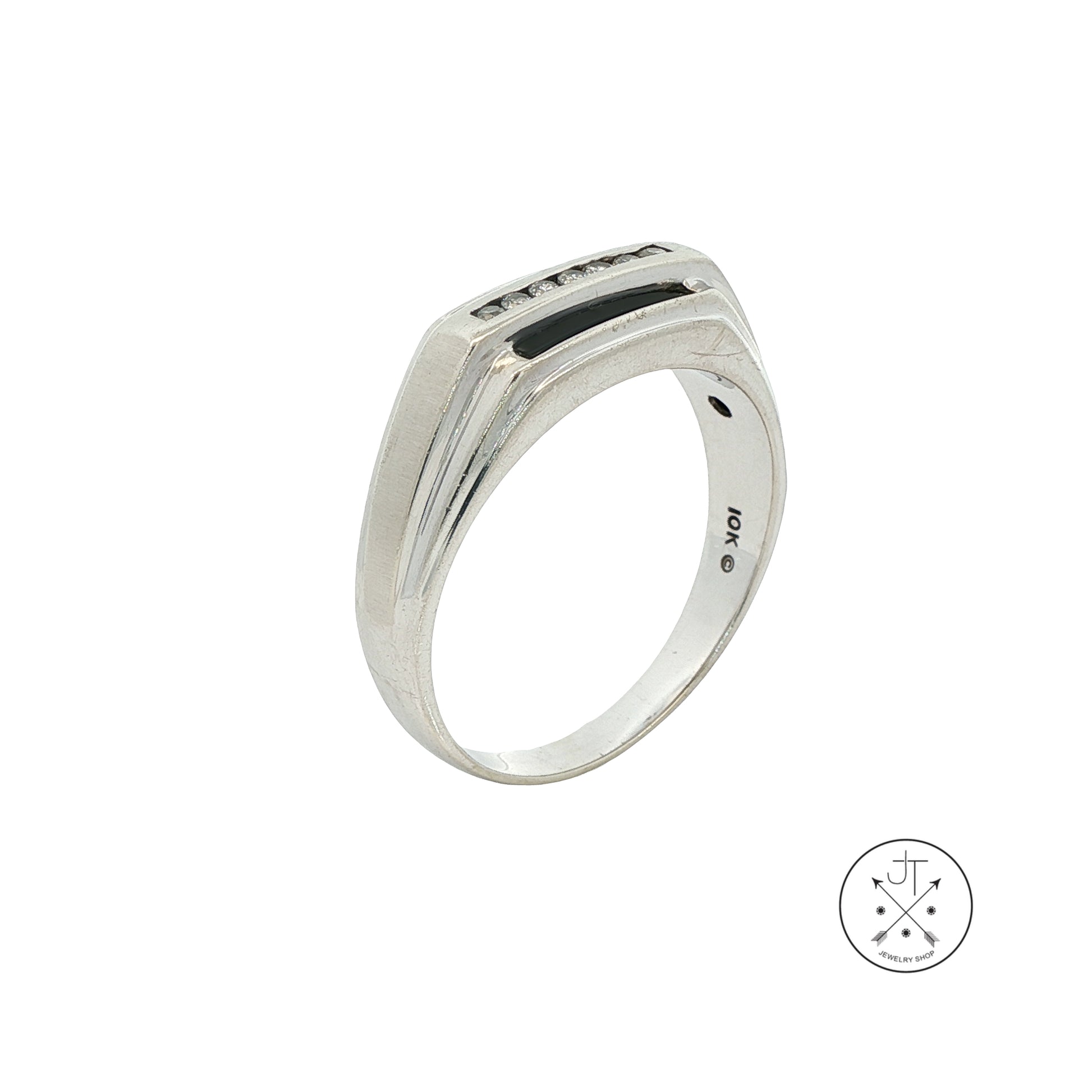 Vintage 10k White Gold Mens Ring with Onyx and Natural Diamonds Size 13.5