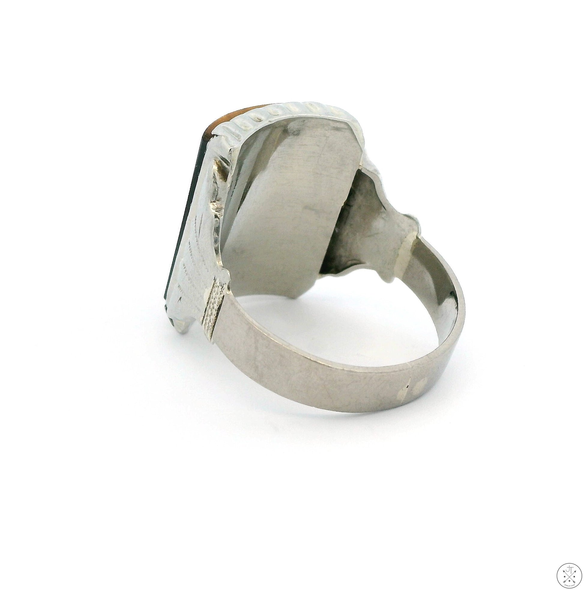 Vintage 10k White Gold Mens Ring with Tigers Eye Size 10.5 Letter E