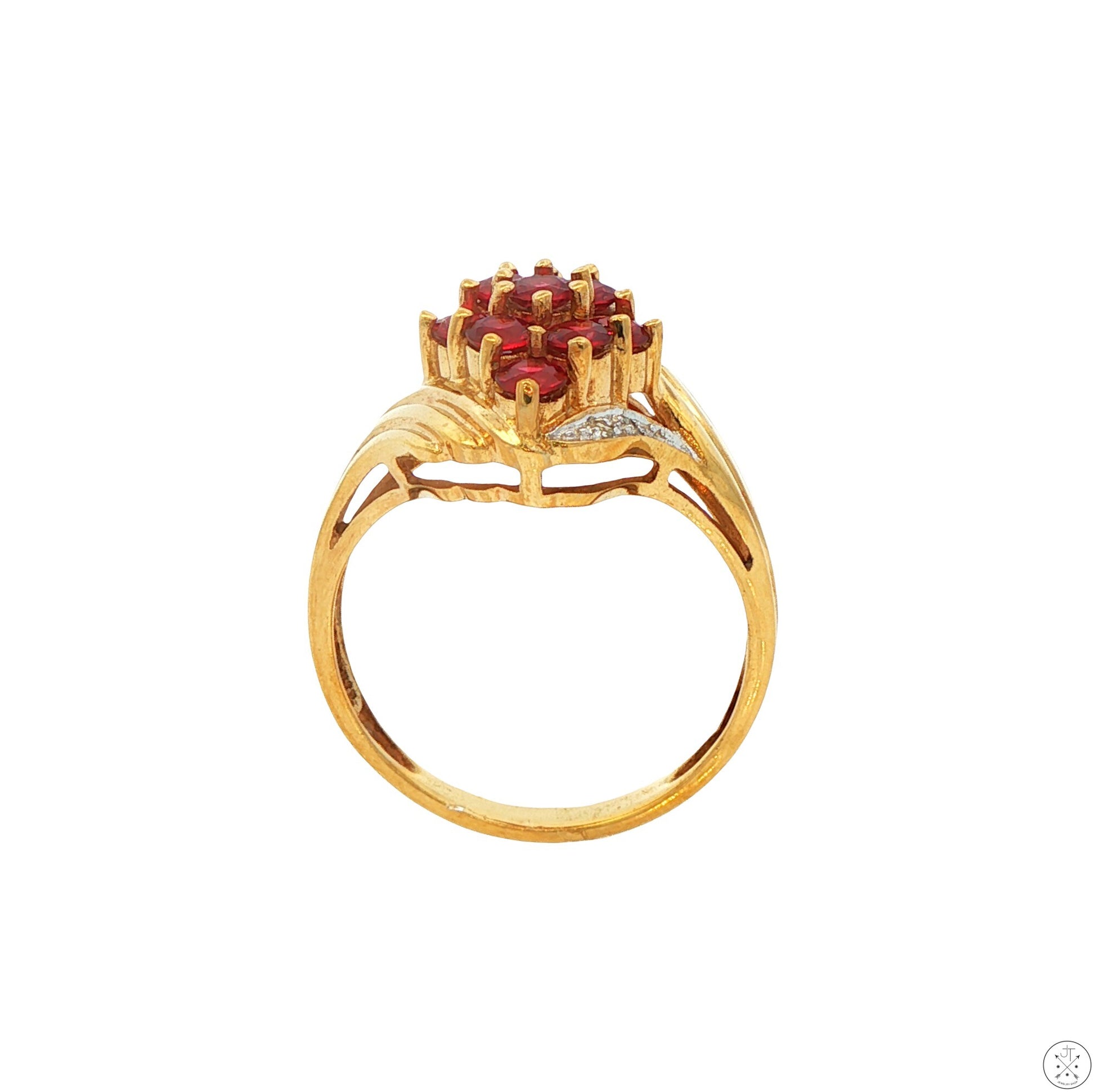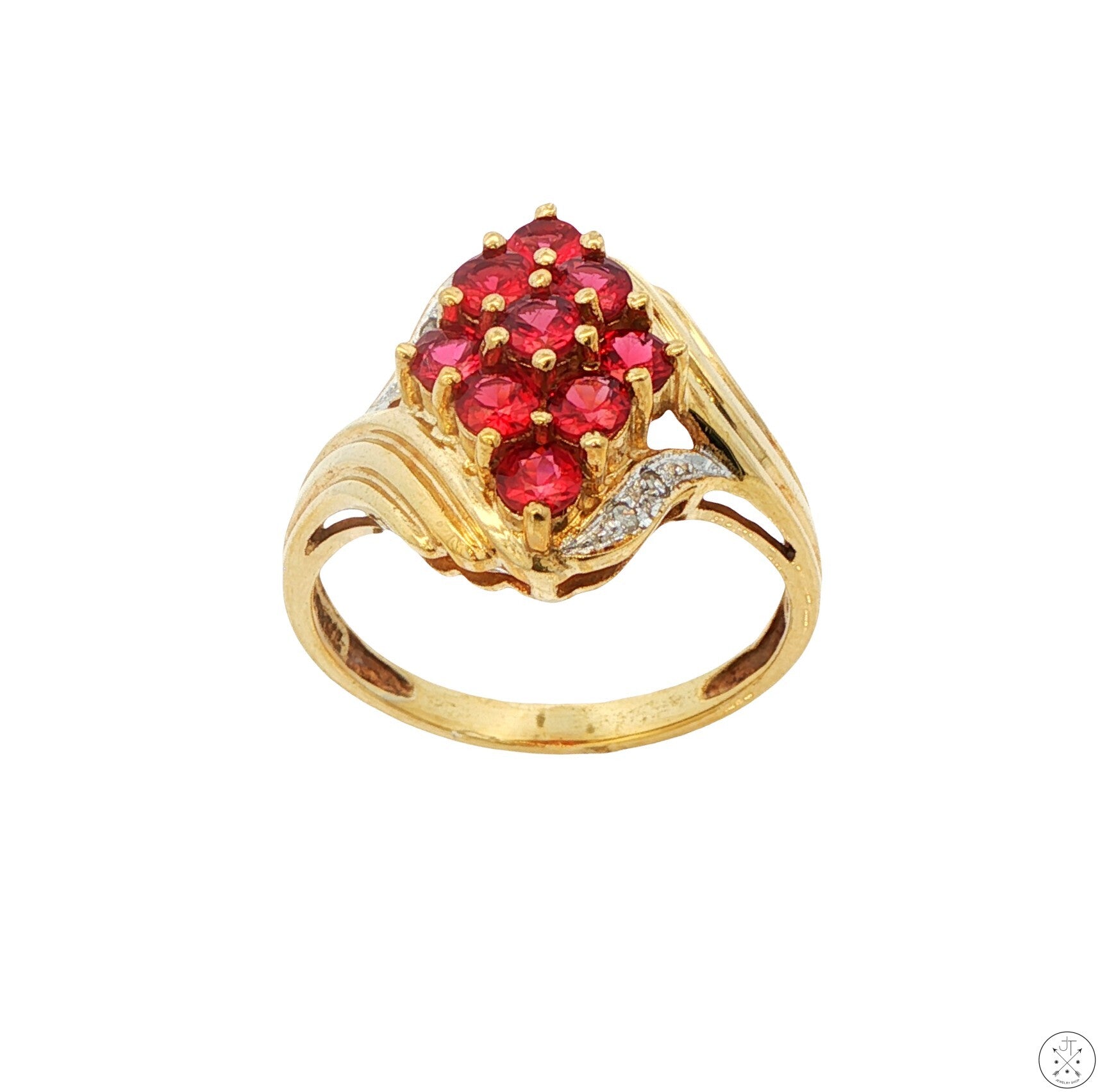 Vintage 10k Yellow Gold Ring with Garnet and Diamond Size 8