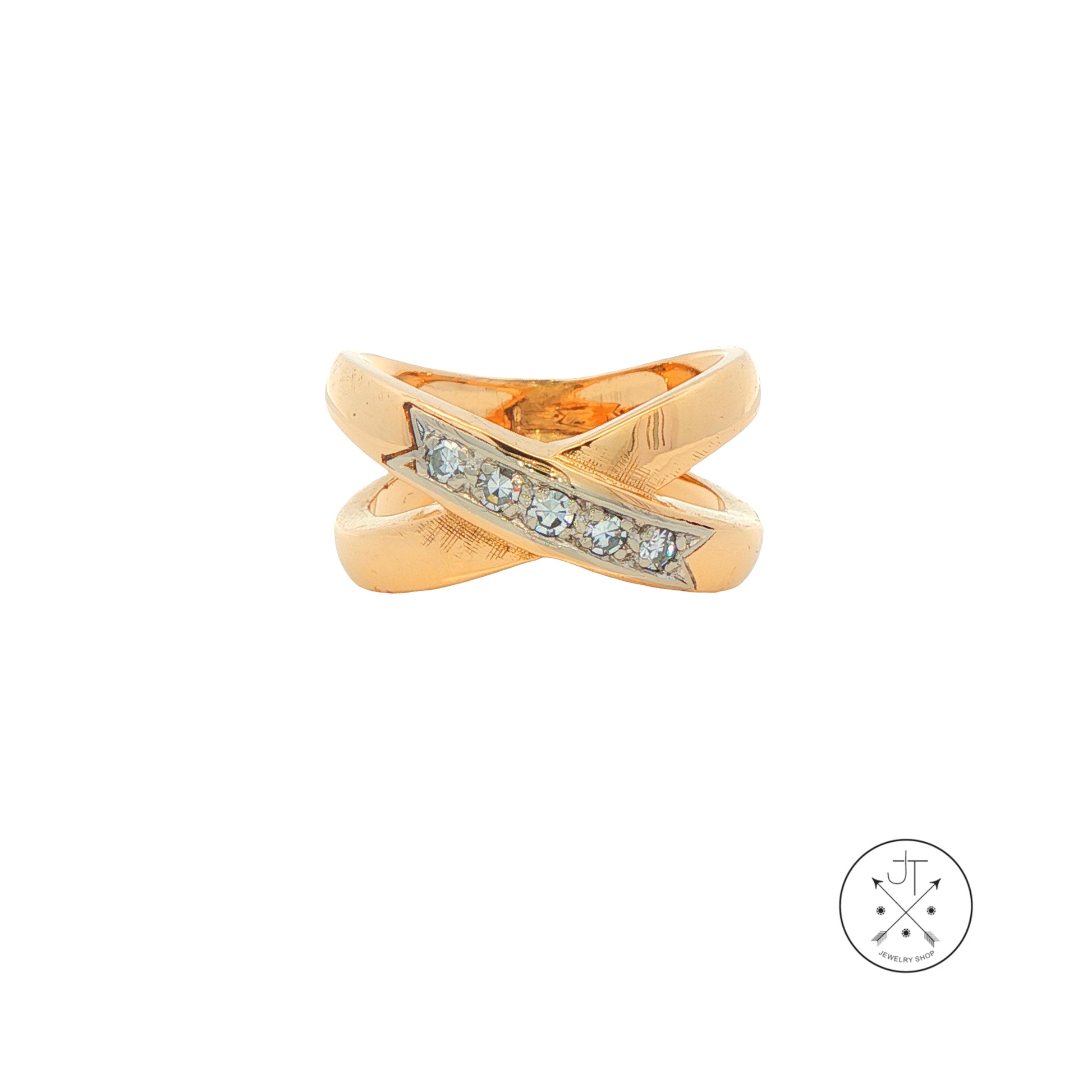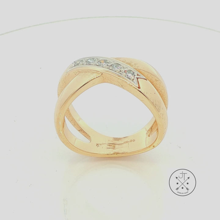Vintage 14k Yellow Gold Criss Cross X Ring with .15 ctw natural Diamonds Size 6