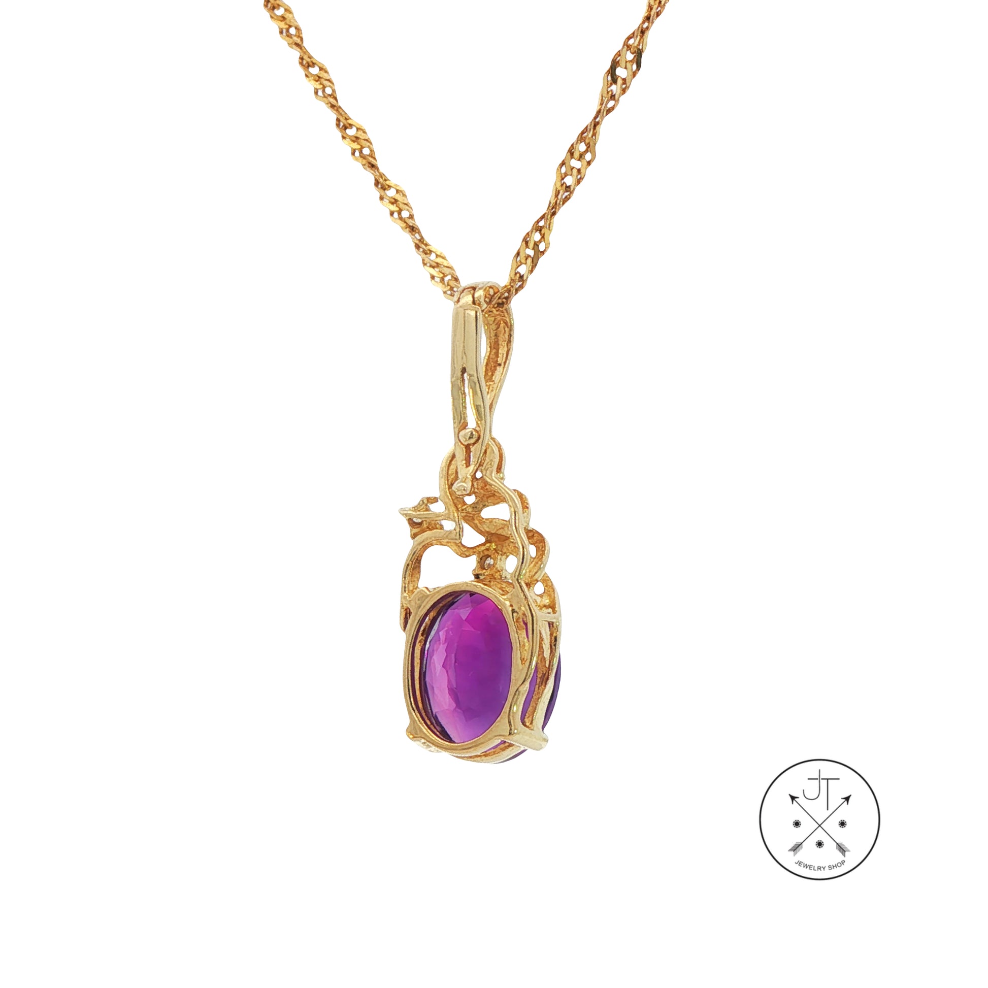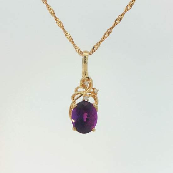 Vintage 14k Yellow Gold Pendant Necklace with Amethyst and Diamonds 16 inch