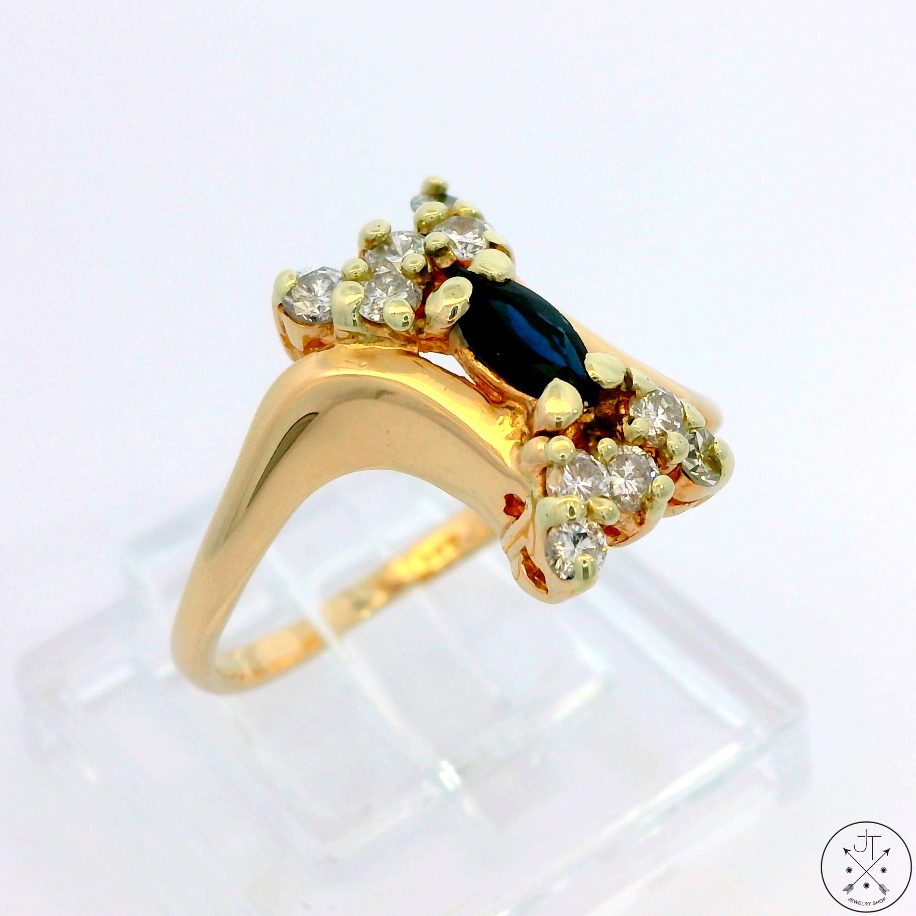 Vintage 14k Yellow Gold Ring with Sapphire and Diamond Size 5.5