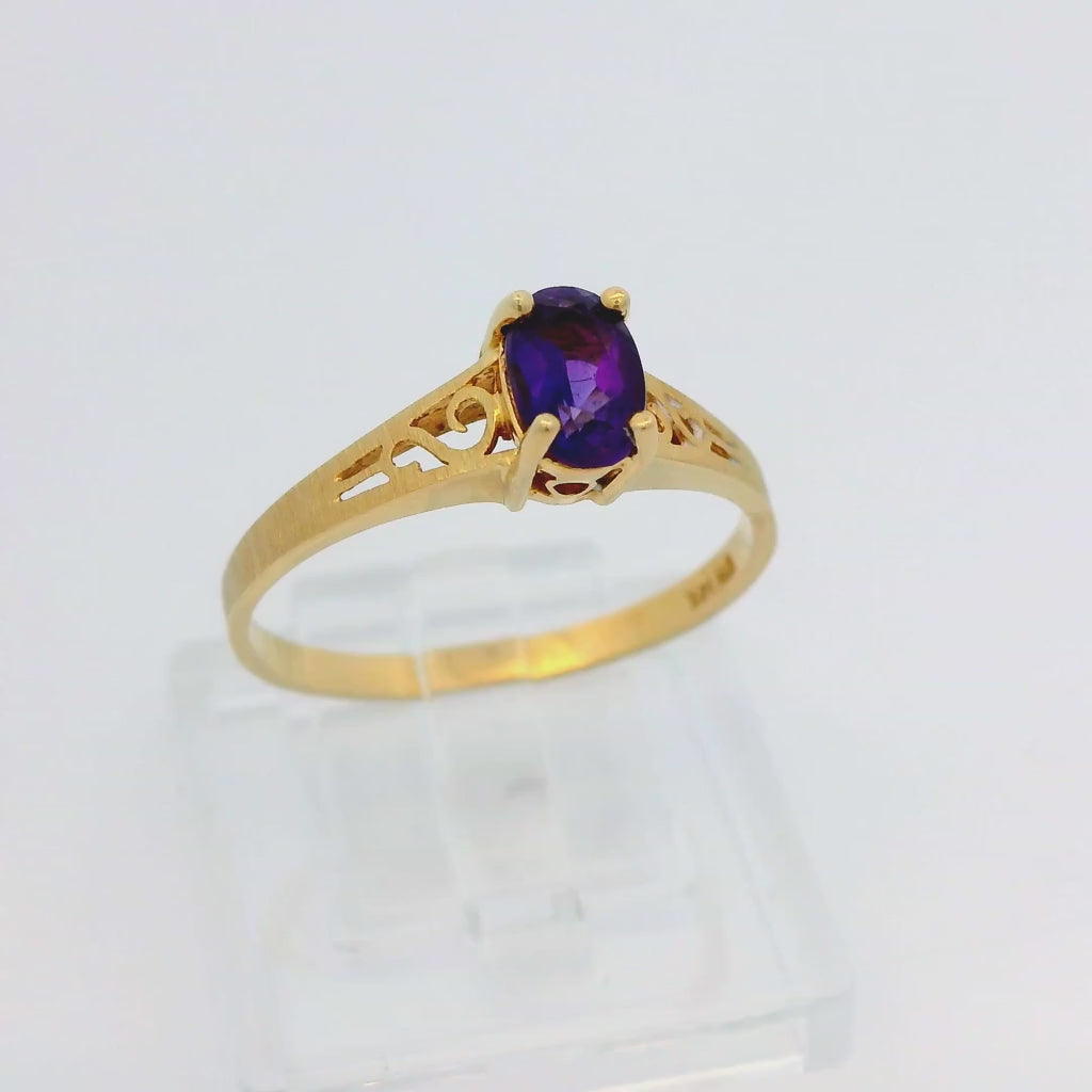 Vintage 14k Yellow Gold Solitaire Ring with Amethyst Size 6.5