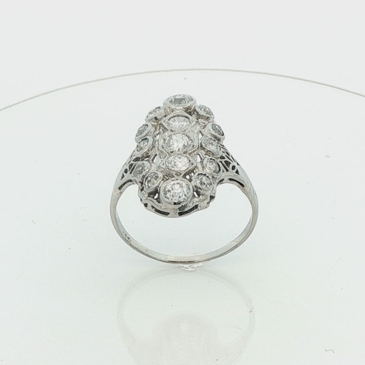 Vintage 18k White Gold Antique Reproduction Ring 1.30 ctw Natural Diamonds Size 7.5