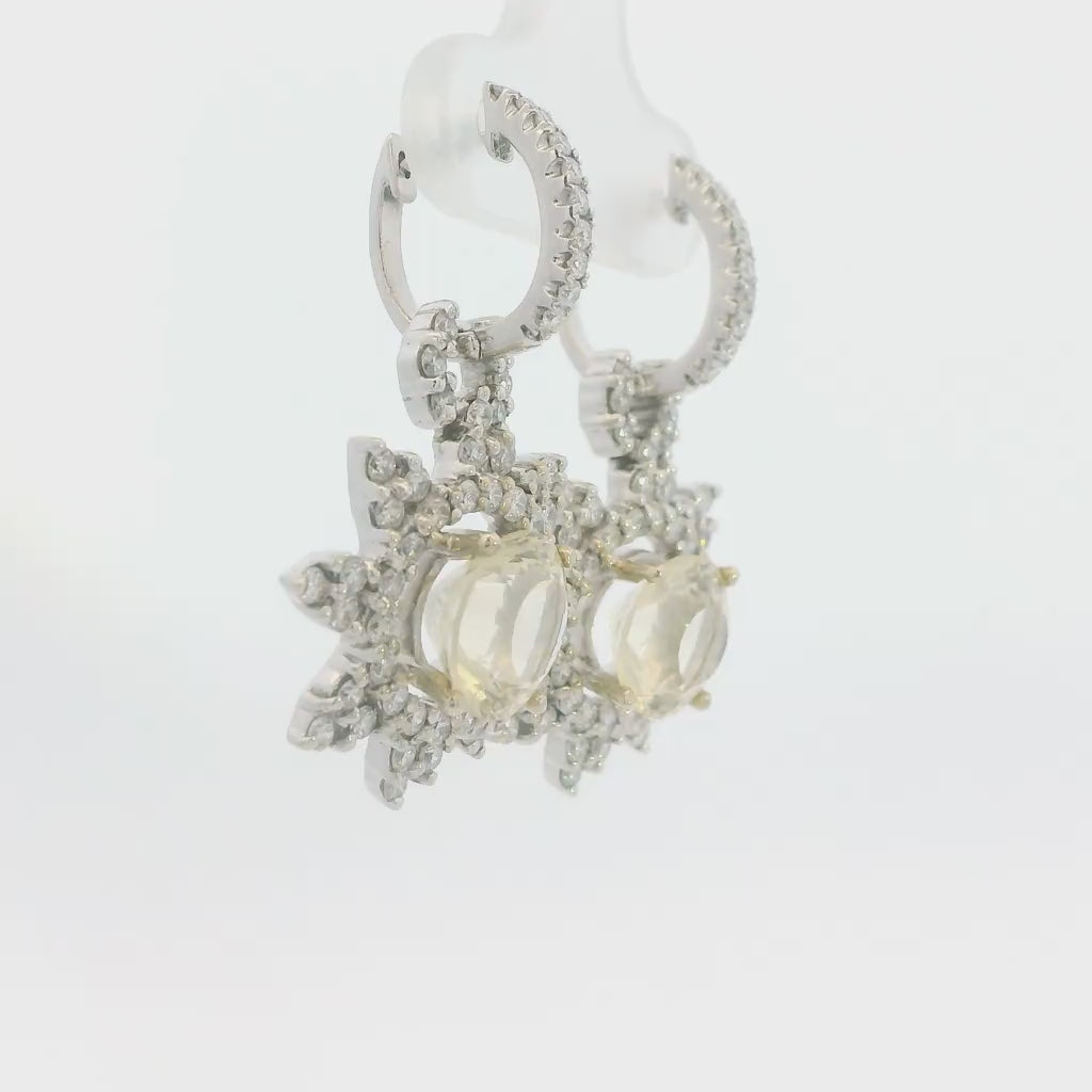 Vintage 18k White Gold Earrings Natural Bytownite and Diamond Convertible Dangle Hoop