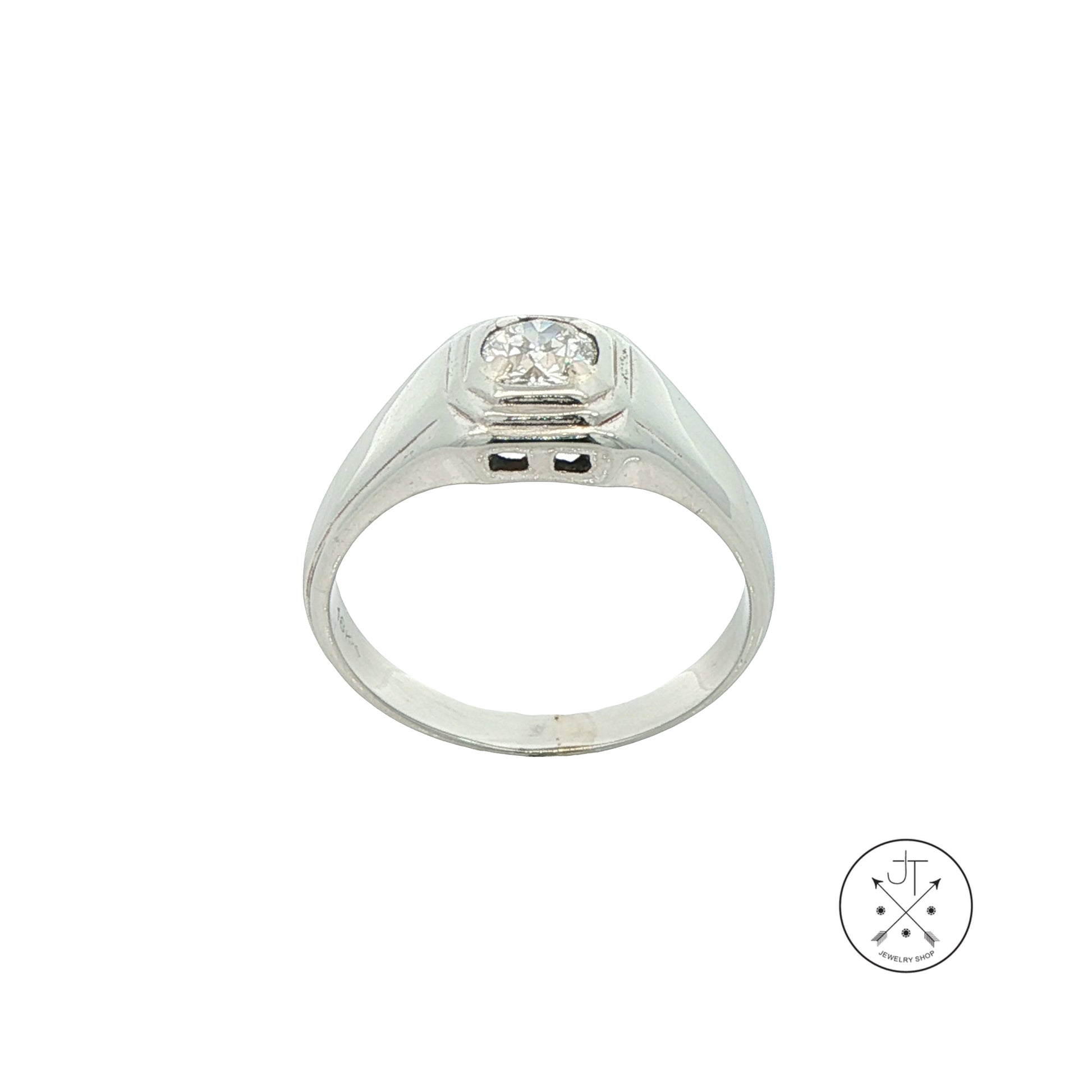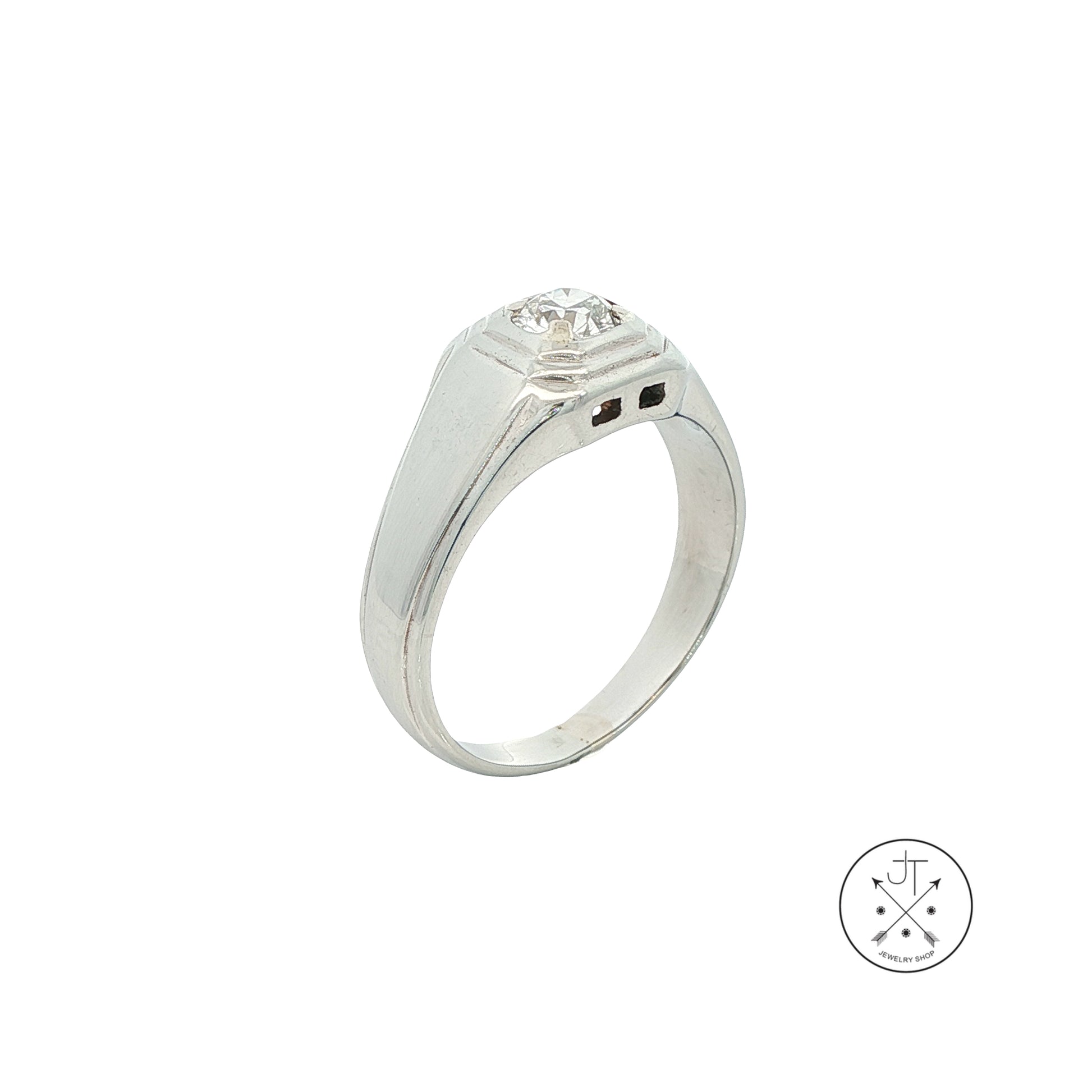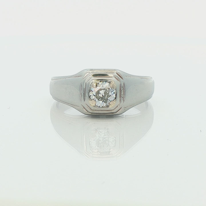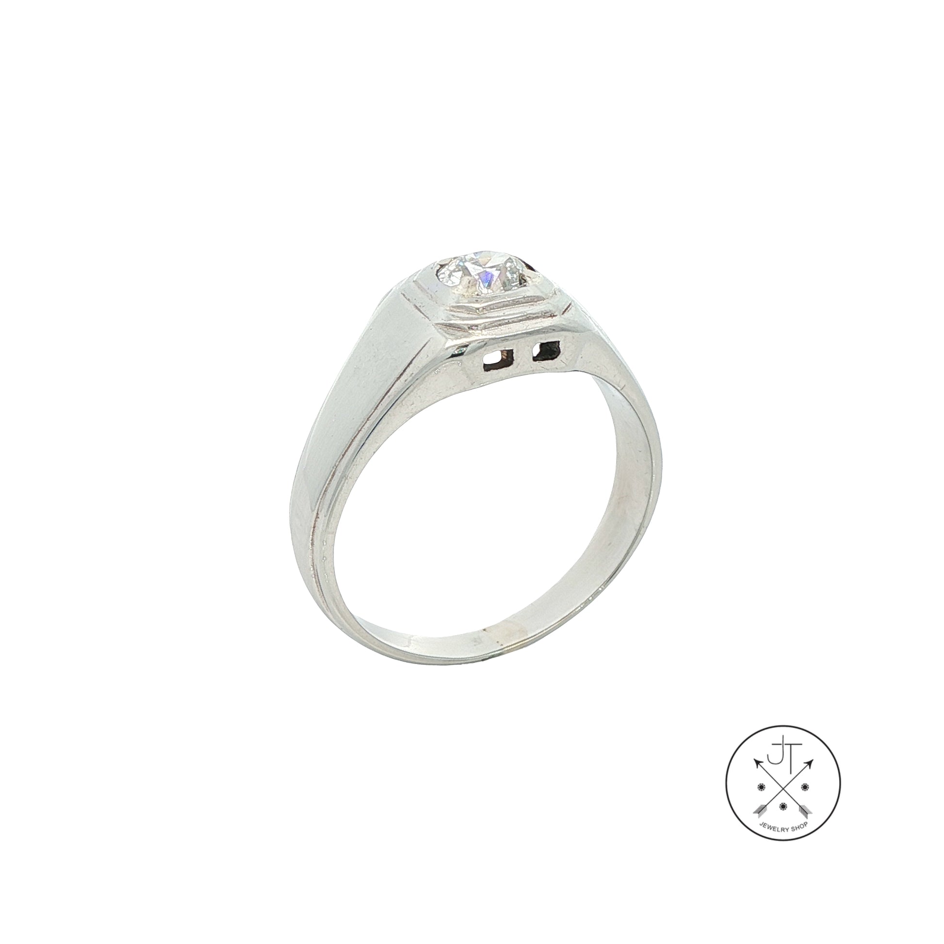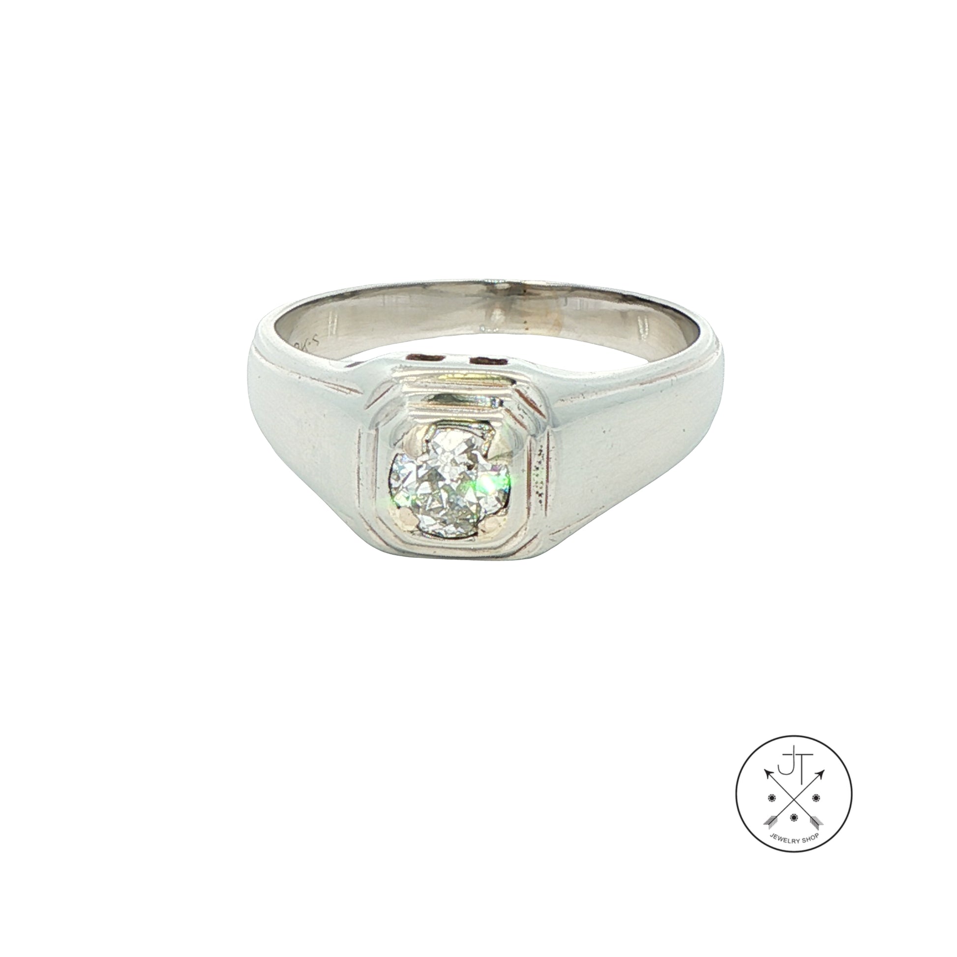 Vintage 18k White Gold Unisex Ring .50 ct Natural Diamond Old Miner Size 9 Solitaire