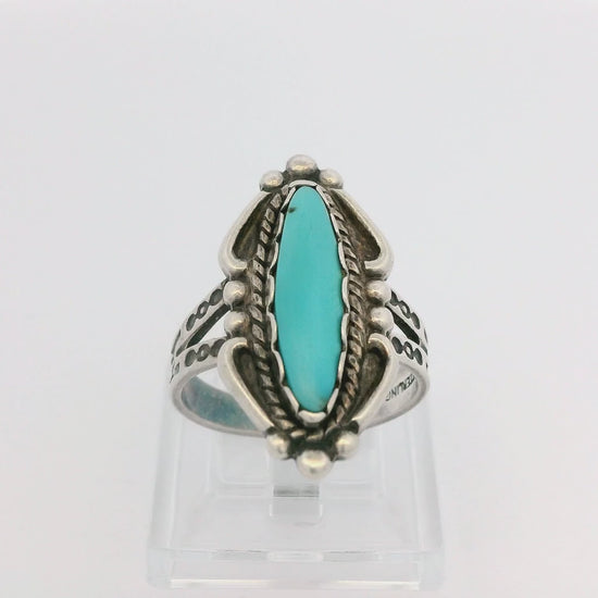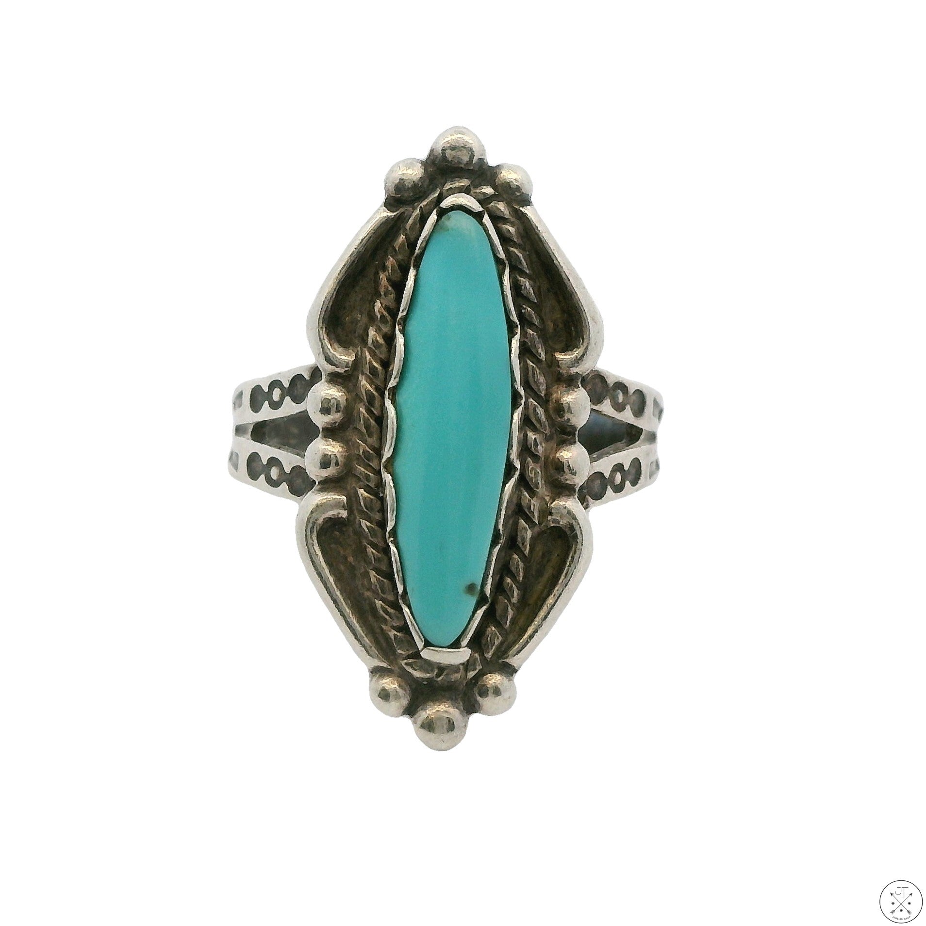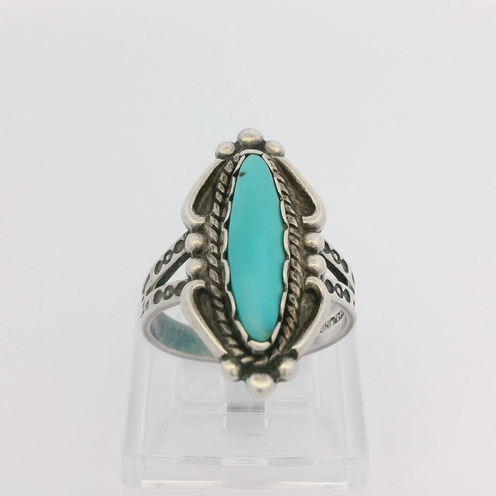 Vintage Maisel's Trading Native American Sterling Silver Ring Turquoise Size 5.5