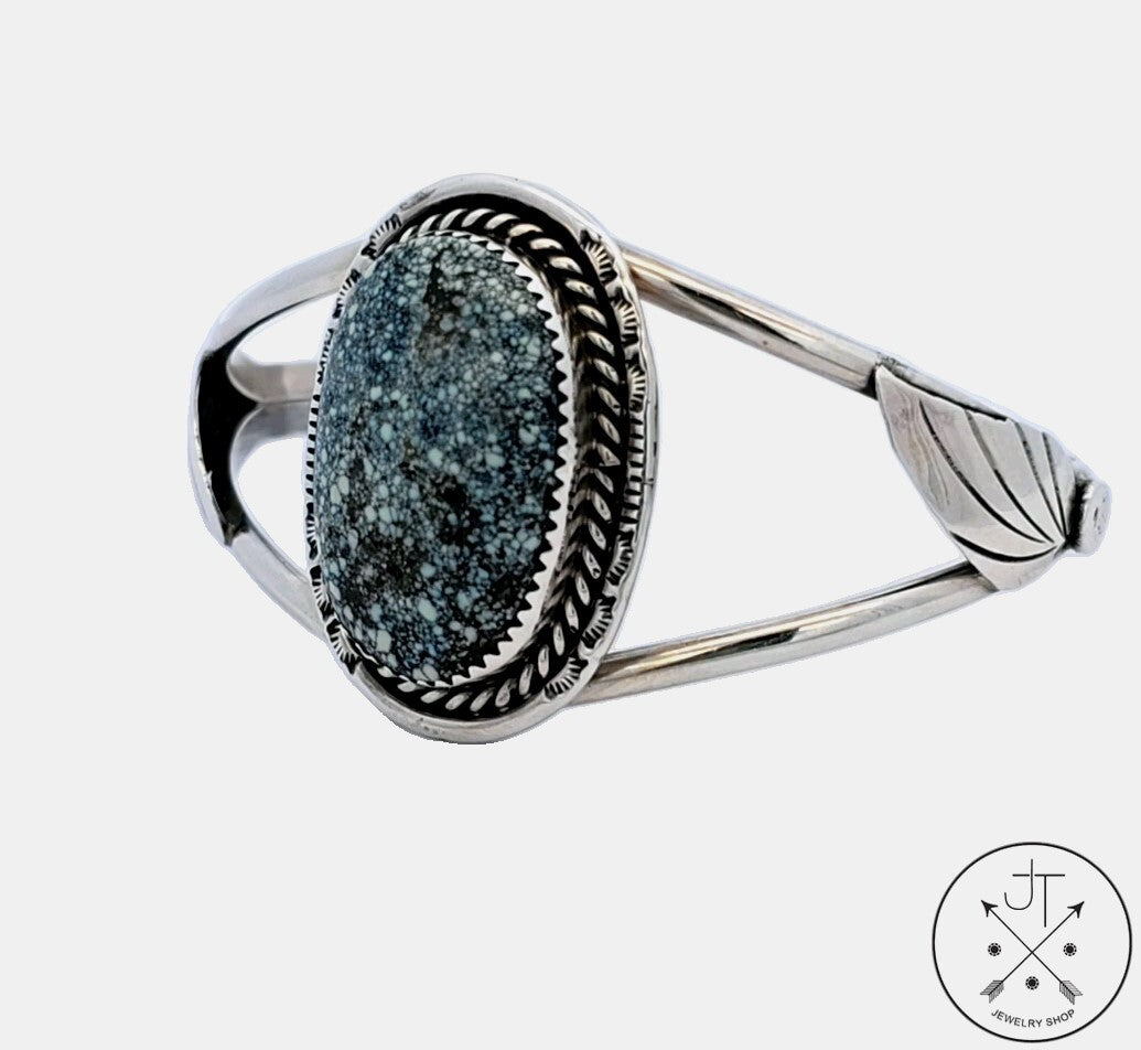 Vintage Navajo Sterling Silver Cuff Bracelet New Lander Turquoise 6.7 in Platero