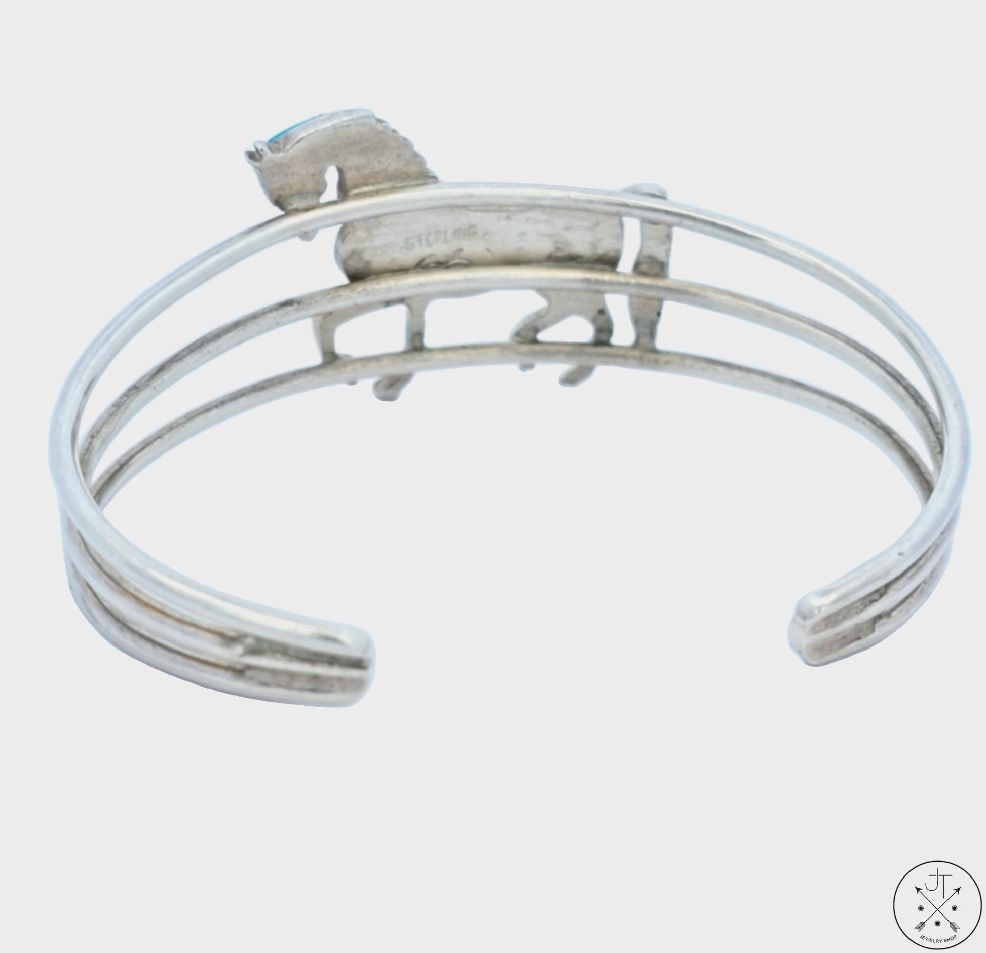 Vintage Navajo Sterling Silver Horse Mosaic Turquoise Cuff Bracelet 6.8 Inch Signed