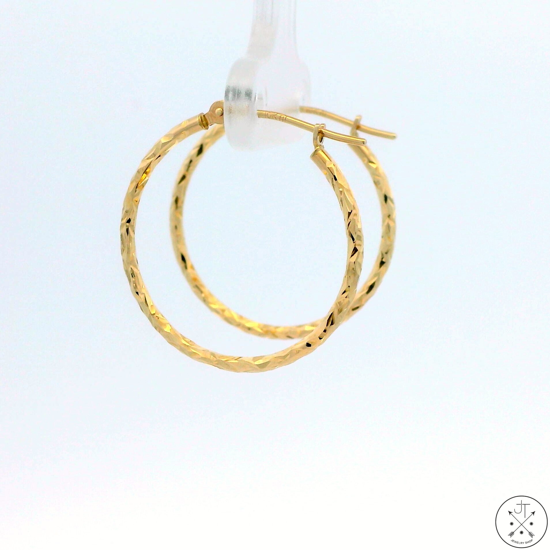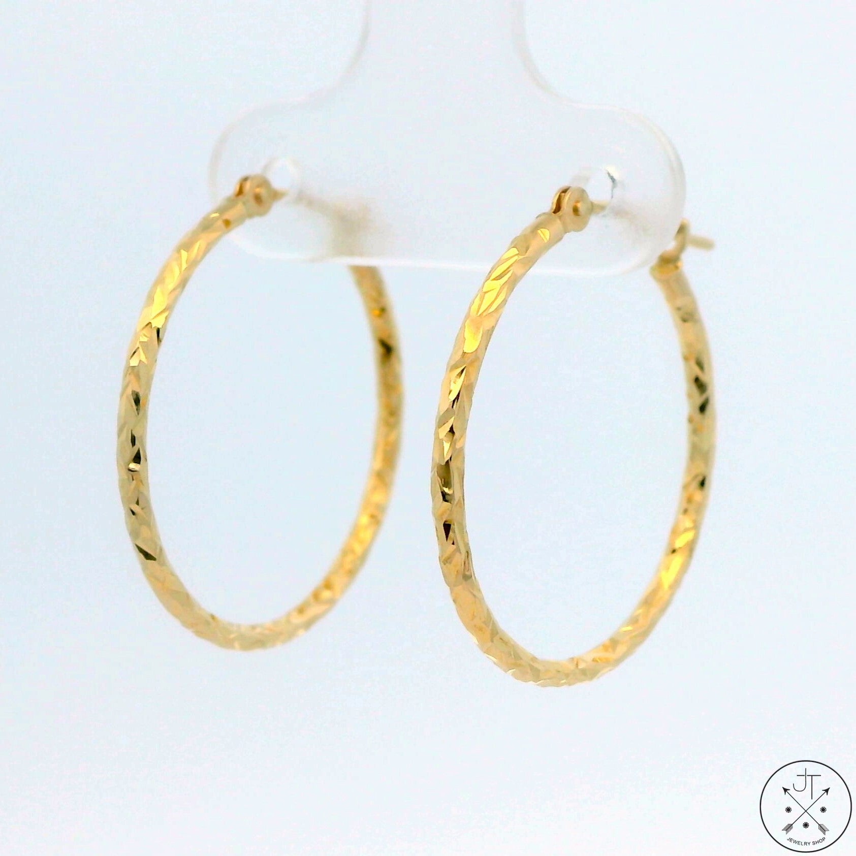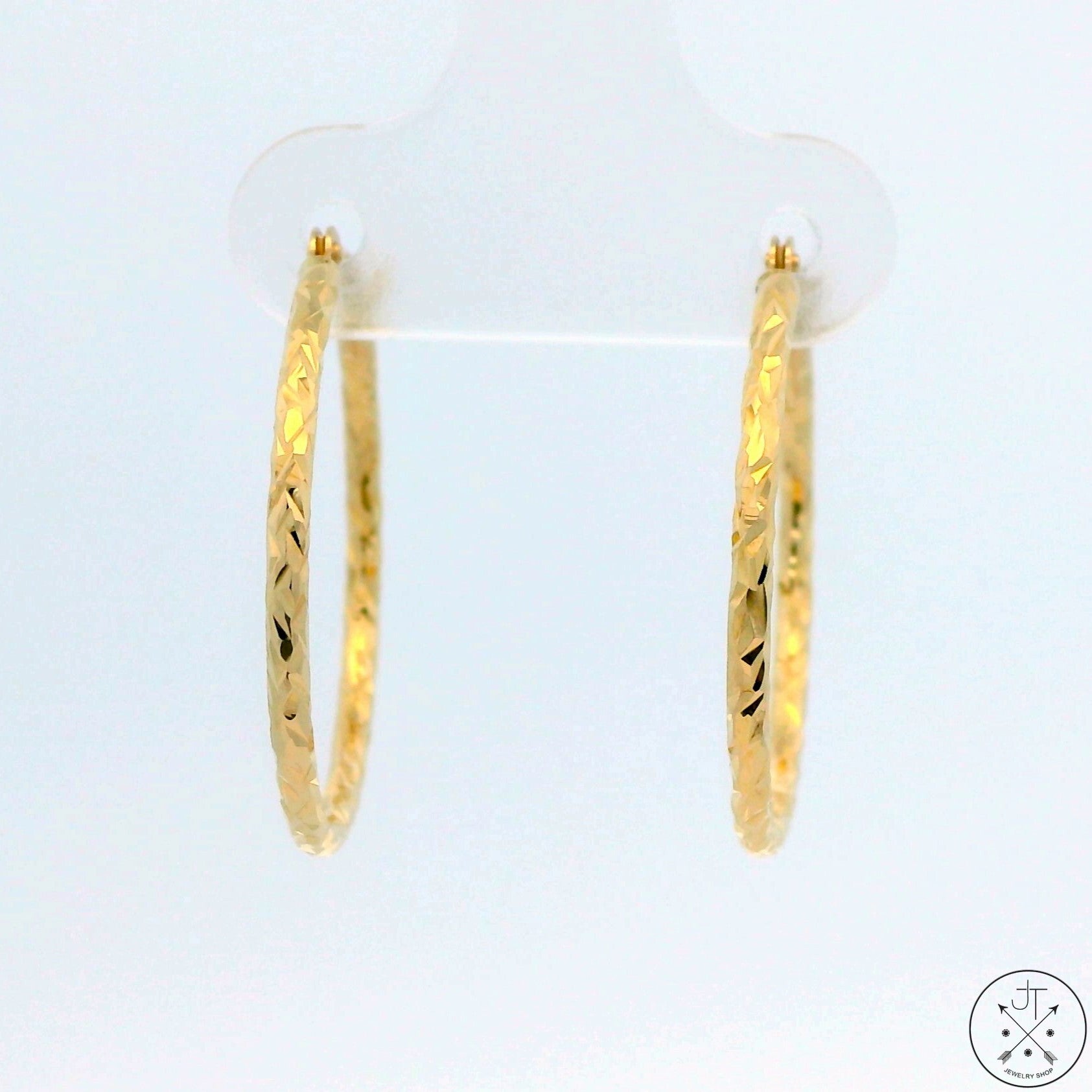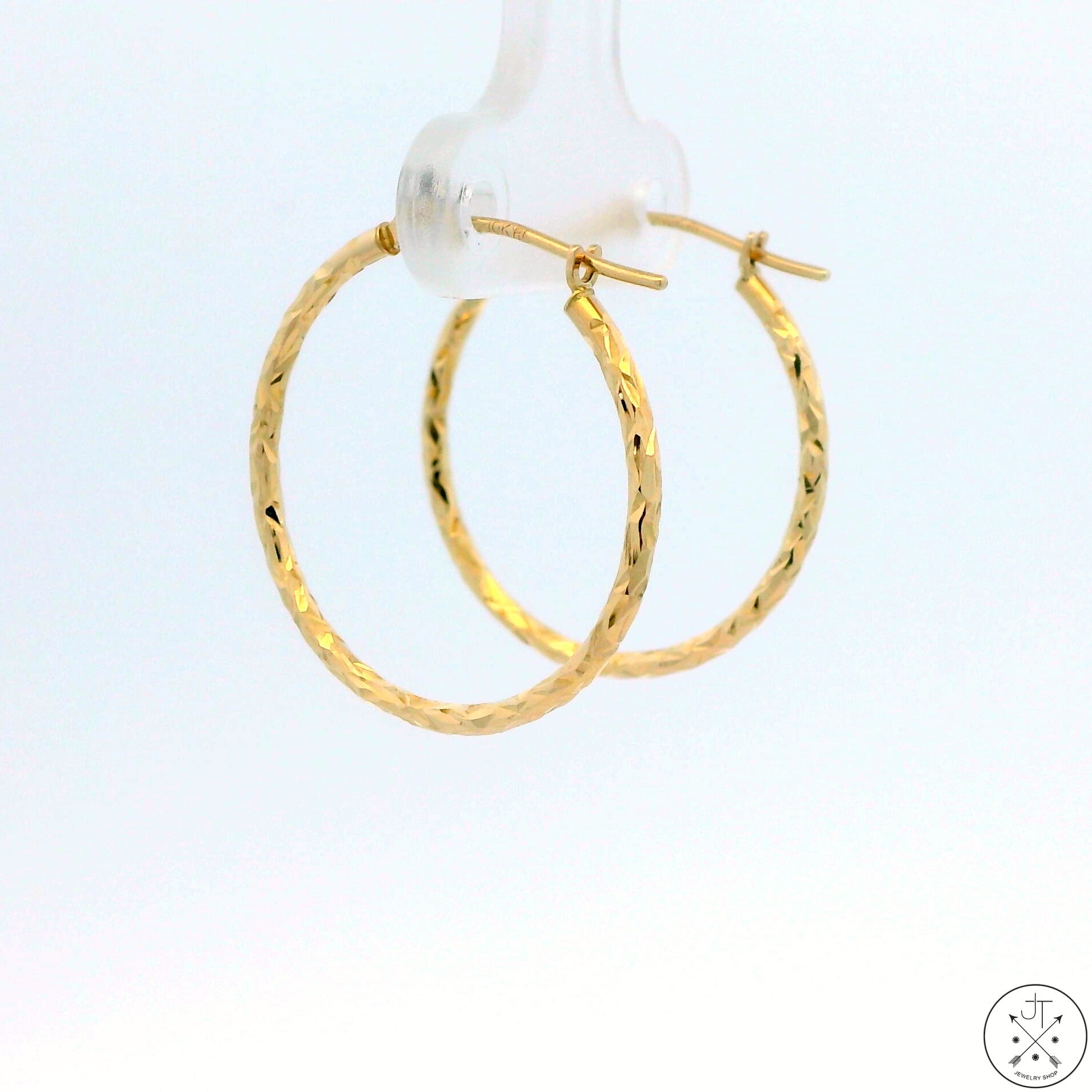 New 10k Yellow Gold 3/4 Inch Diamond Cut Hoop Earrings