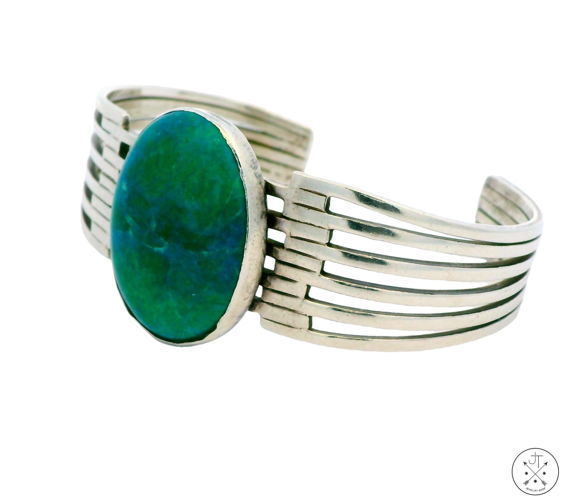 Vintage Sterling Silver Cuff Bracelet with Chrysocolla 6.9 Inch